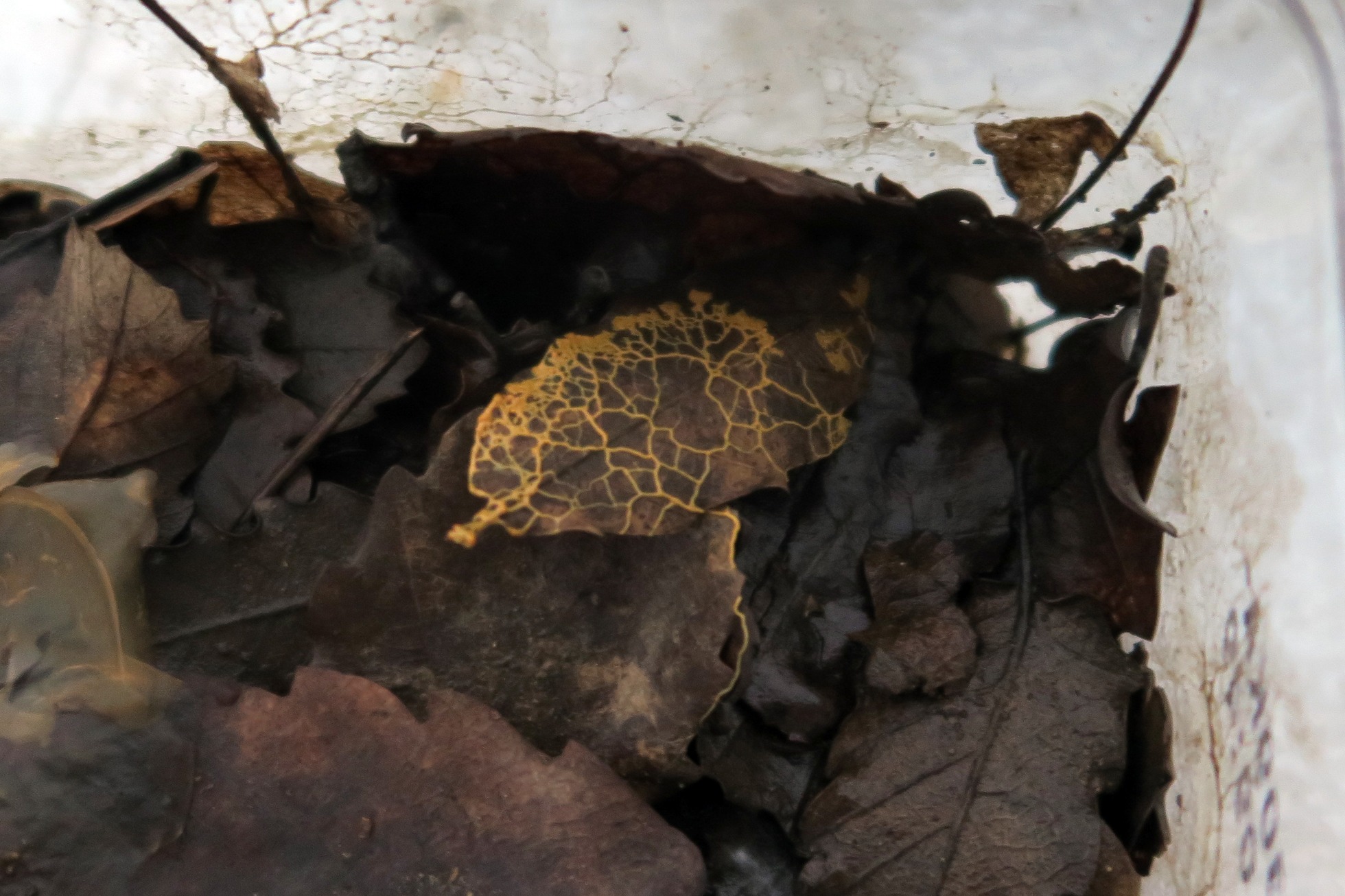 En este punto y ya a 23 de Mayo del pasado año, decidí cultivarlo en un recipiente con hojas de roble degradadas y humedecidas.