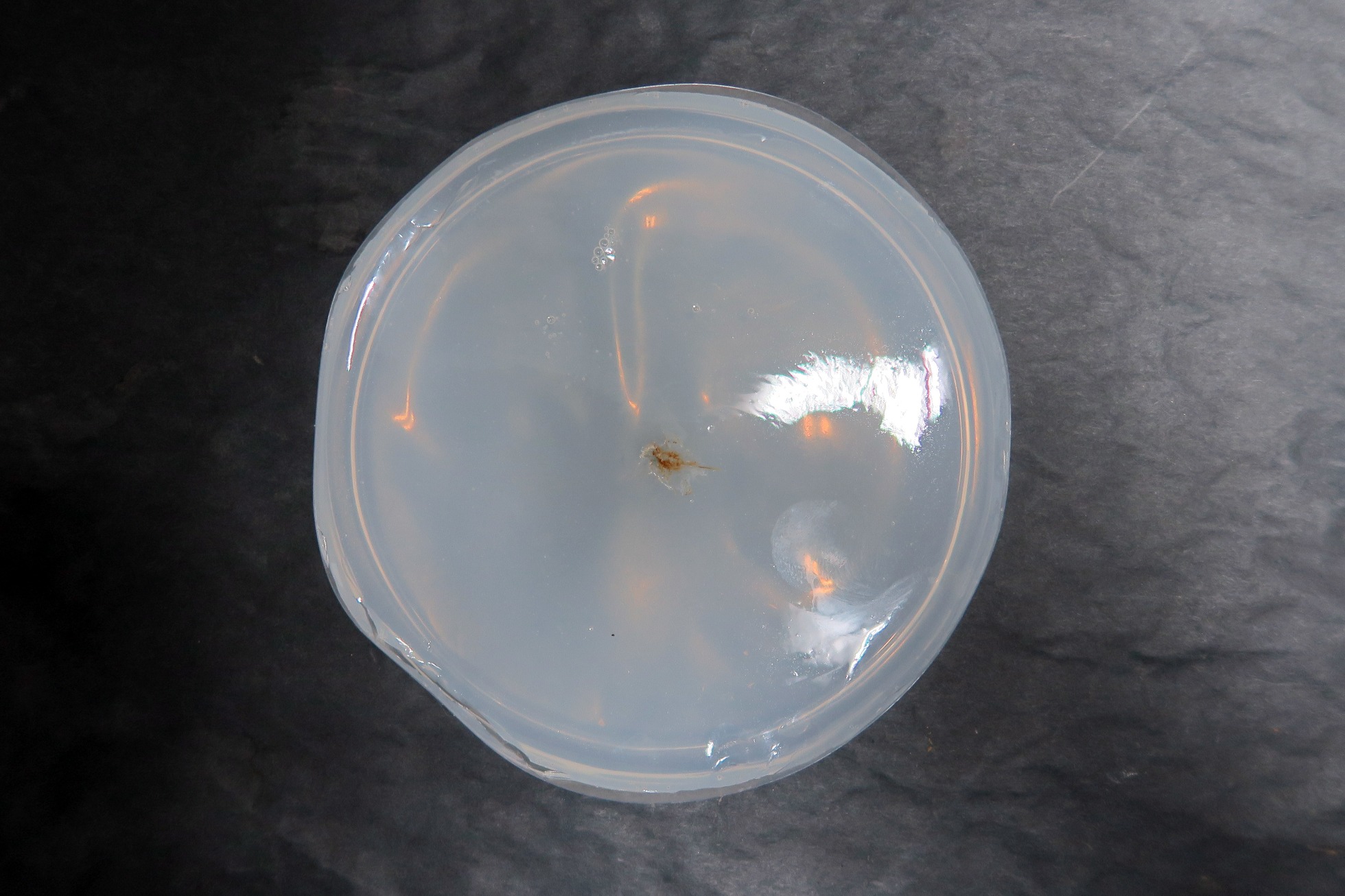 Placa con Agar agar y el mixomiceto en su centro.