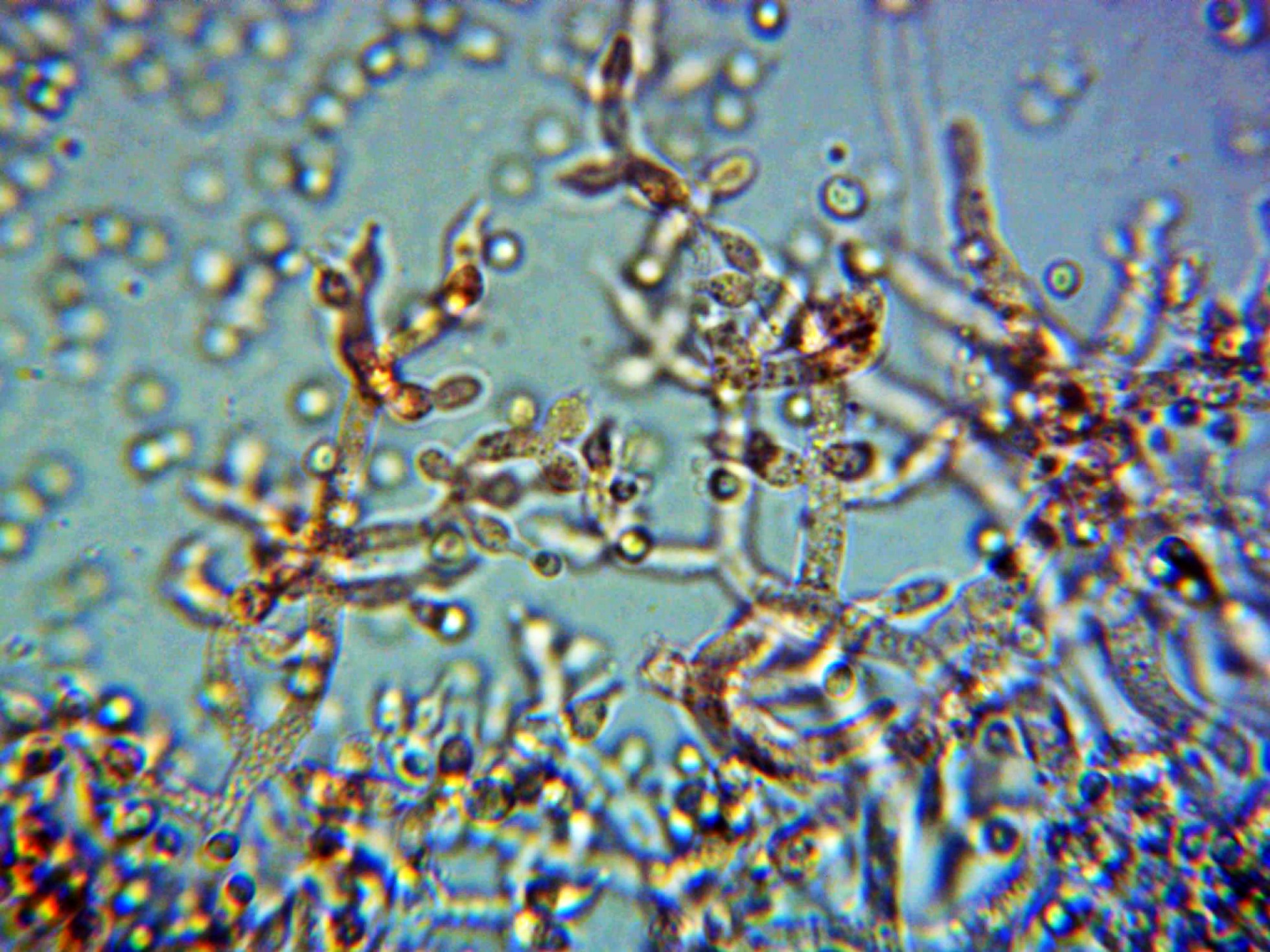 Sus típicos conidióforos a 1000 aumentos.