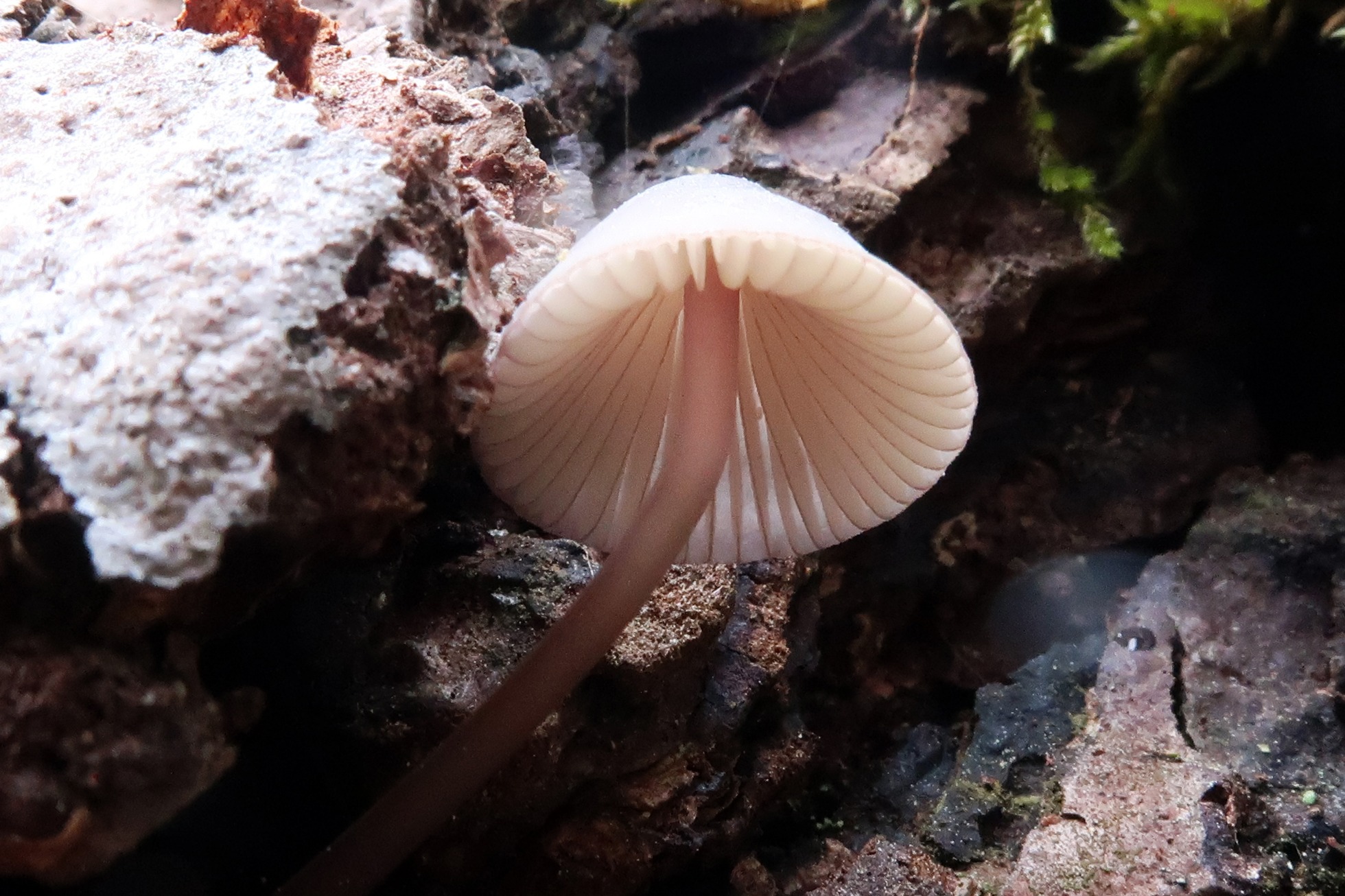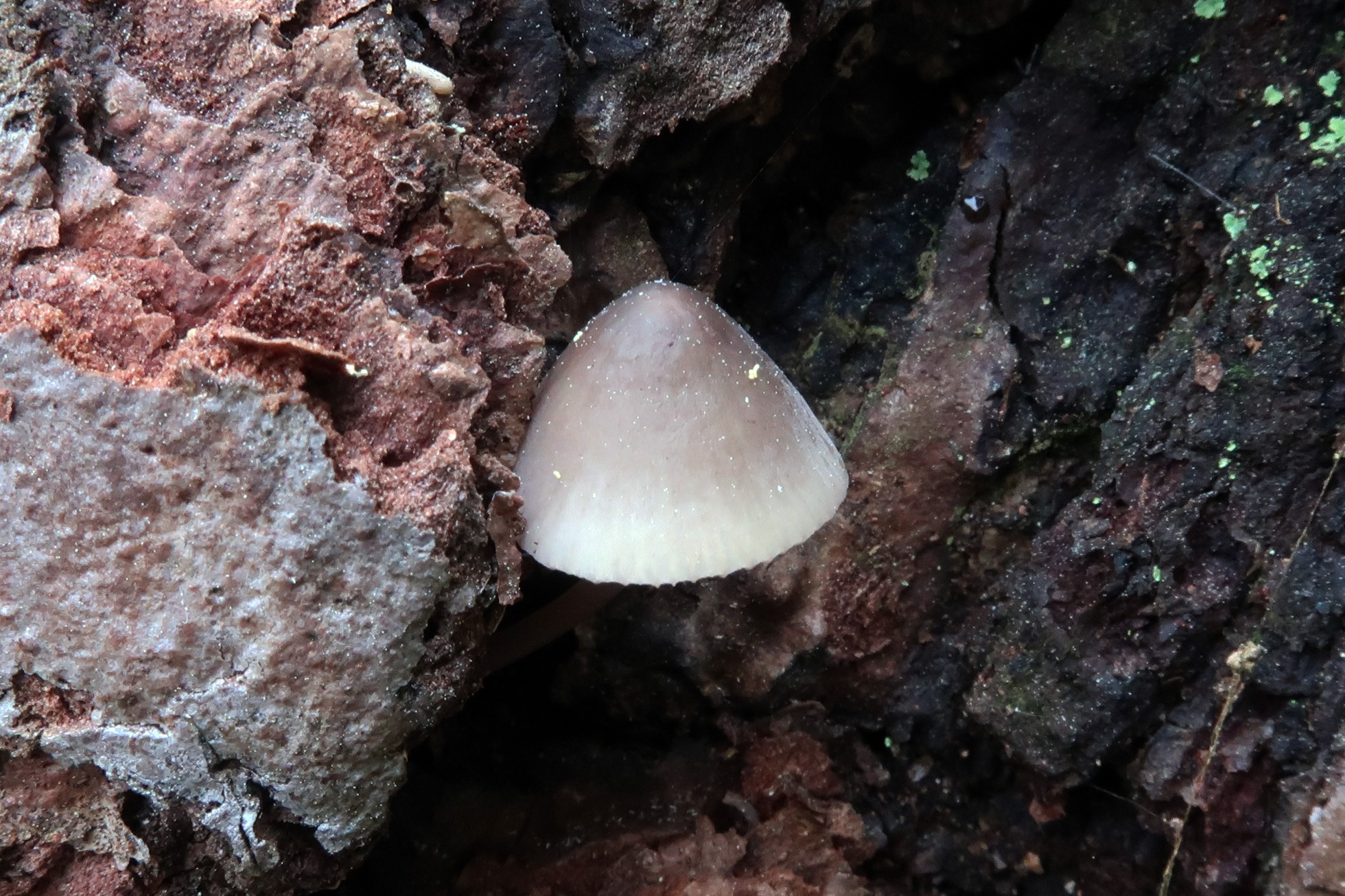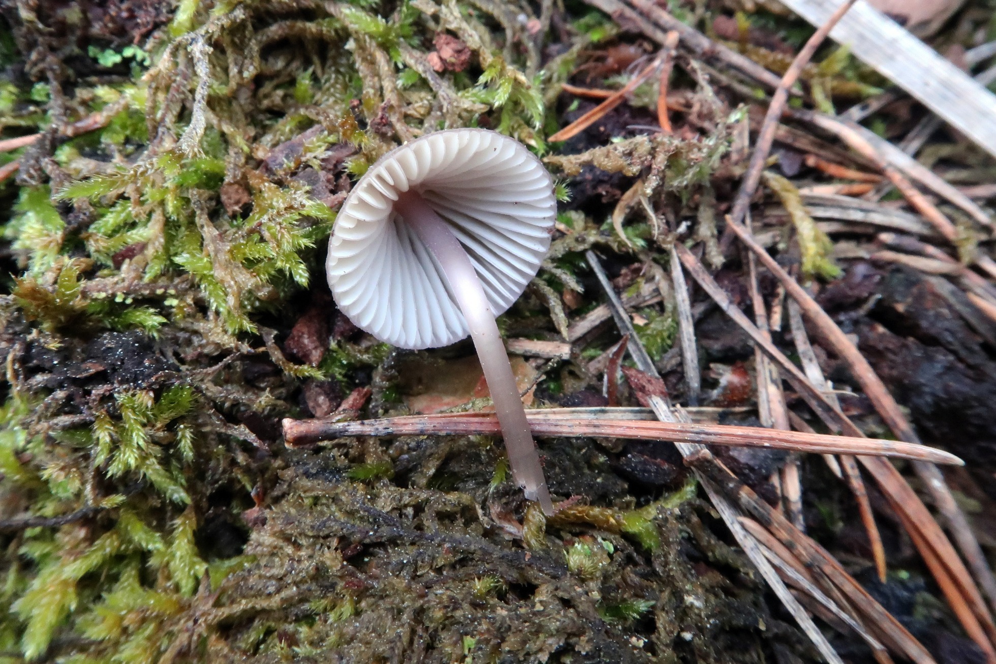 Un solo ejemplar, con sombrero entre cónico y acampanulado de poco mas de 1 cm., de color pardo violáceo, mas oscuro en el centro, estriado por transparencia y el borde del mismo blanquecino.