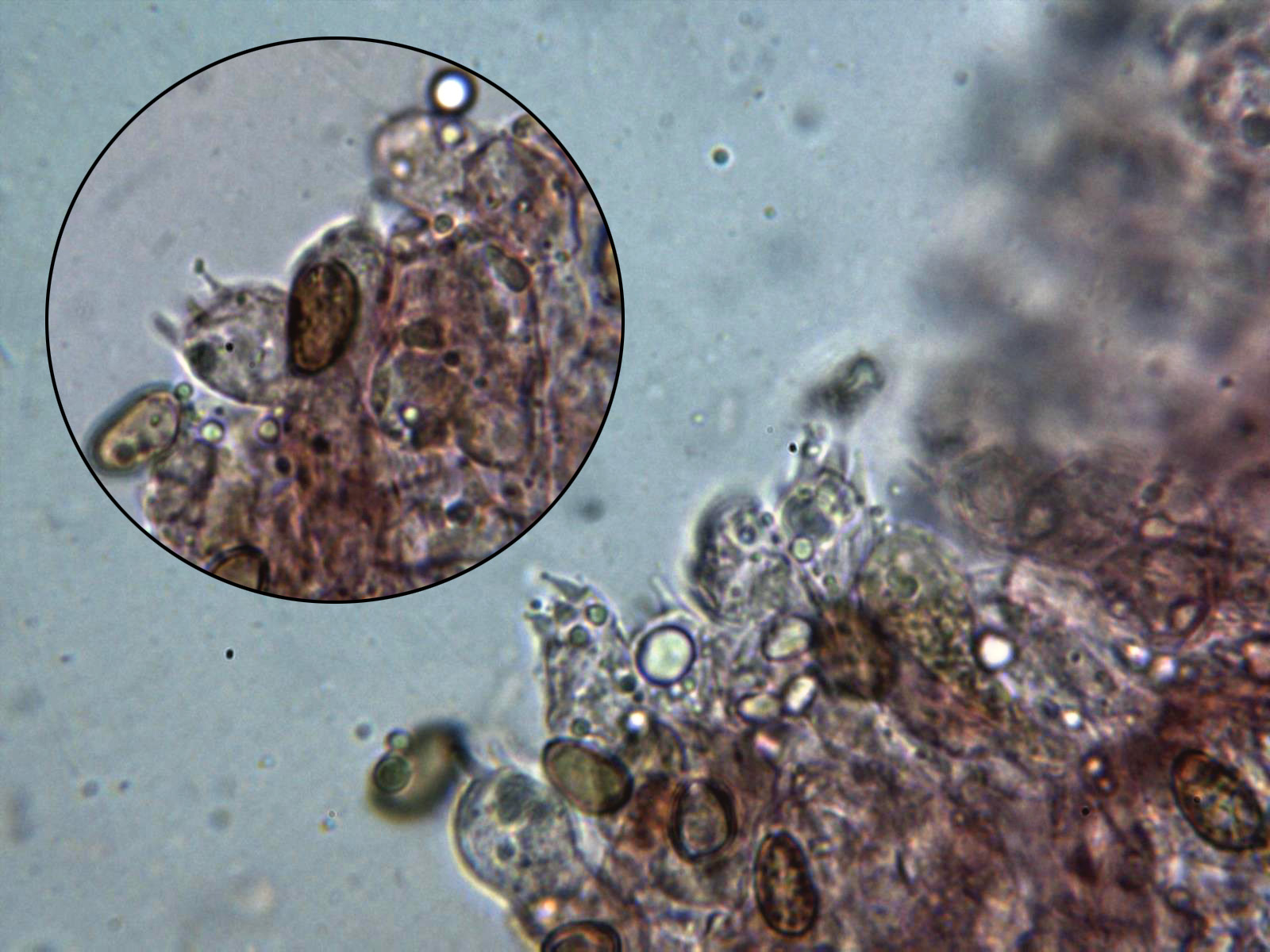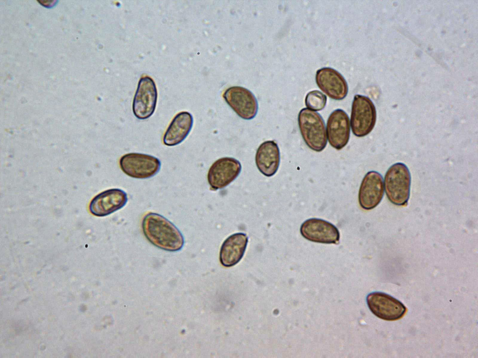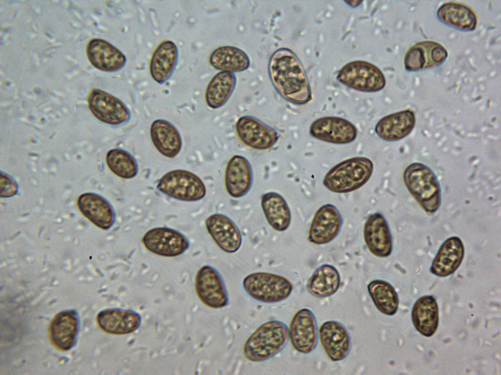 Esporas elipsoidales y de gran tamaño, en mis mediciones de 9,1;13 (14,1) X 5,8;7,2 micras.