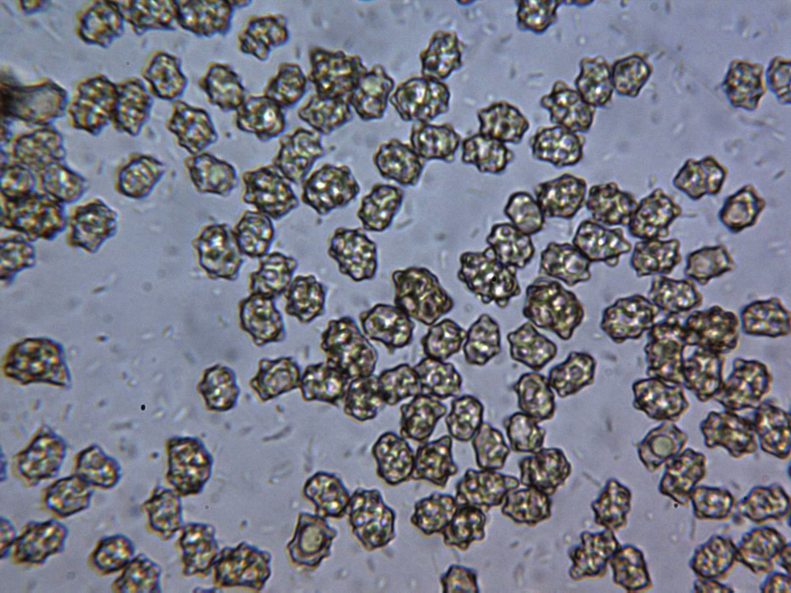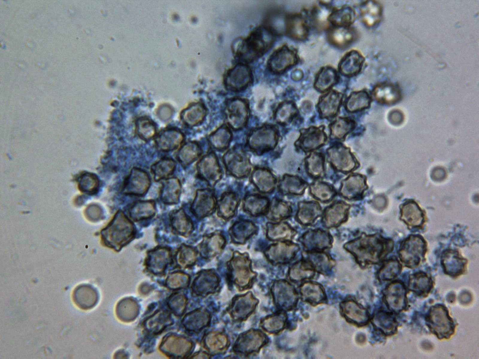 Esporas obtenidas por esporada natural, nodulosas y con unas medidas de 6.5;8,8 (9,4) X 4,6;5,6 (6,3) micras.