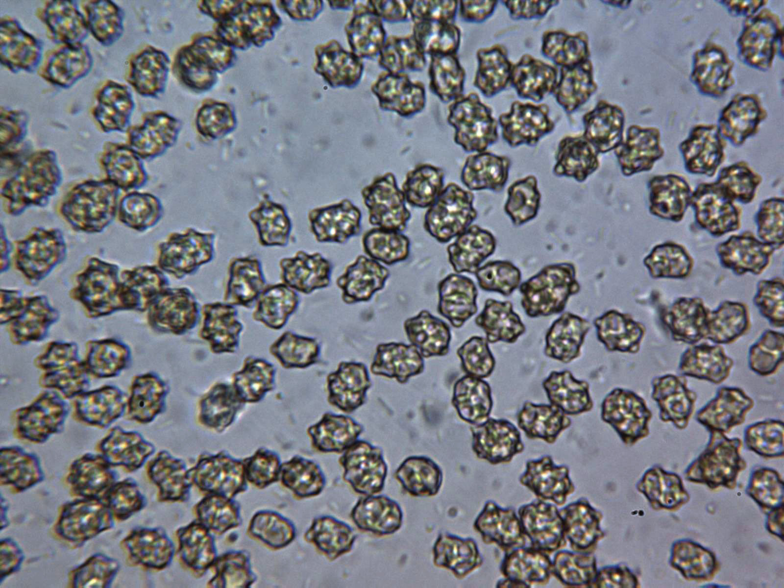 Esporas obtenidas por esporada natural en solución de agua destilada.