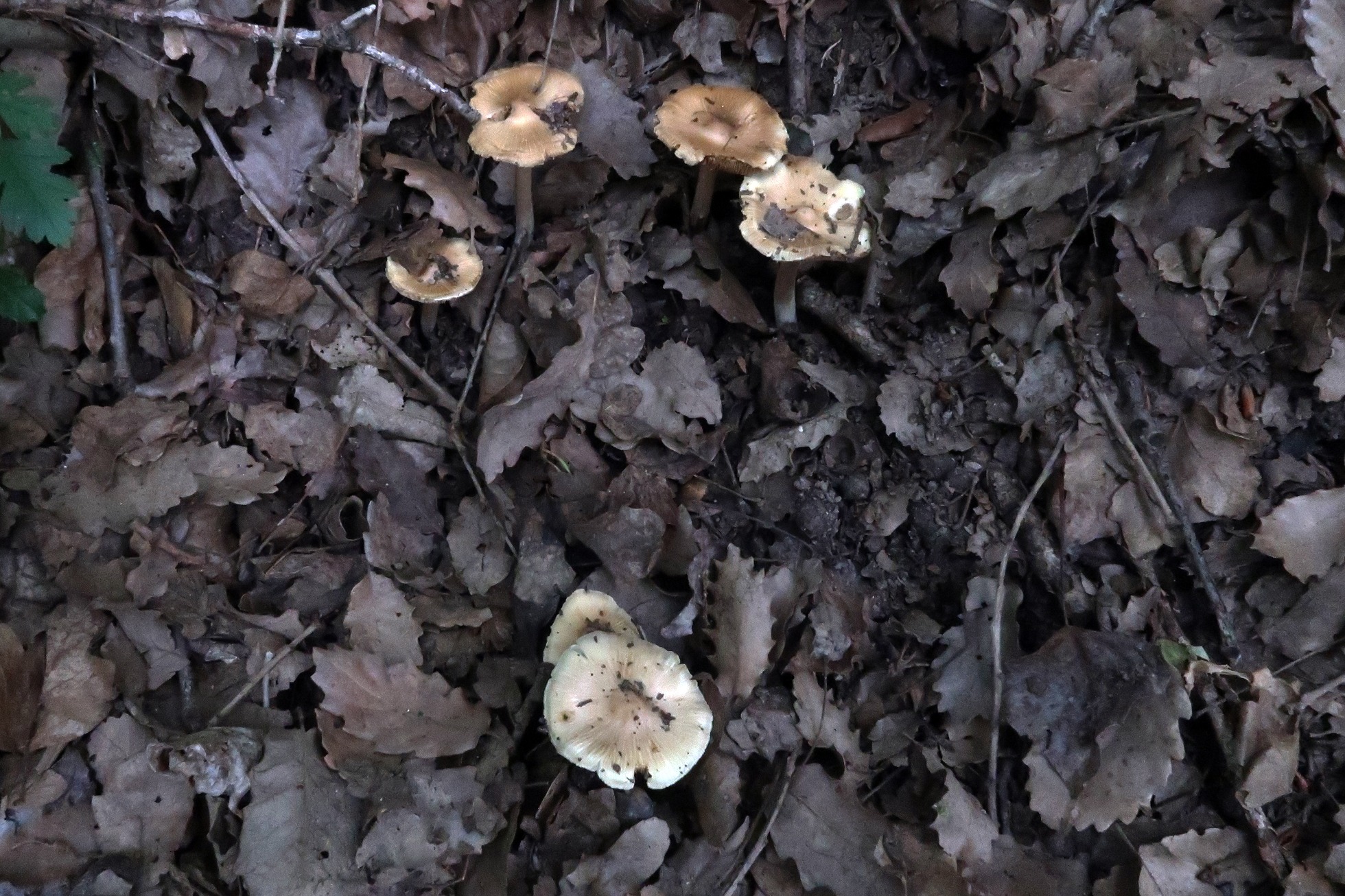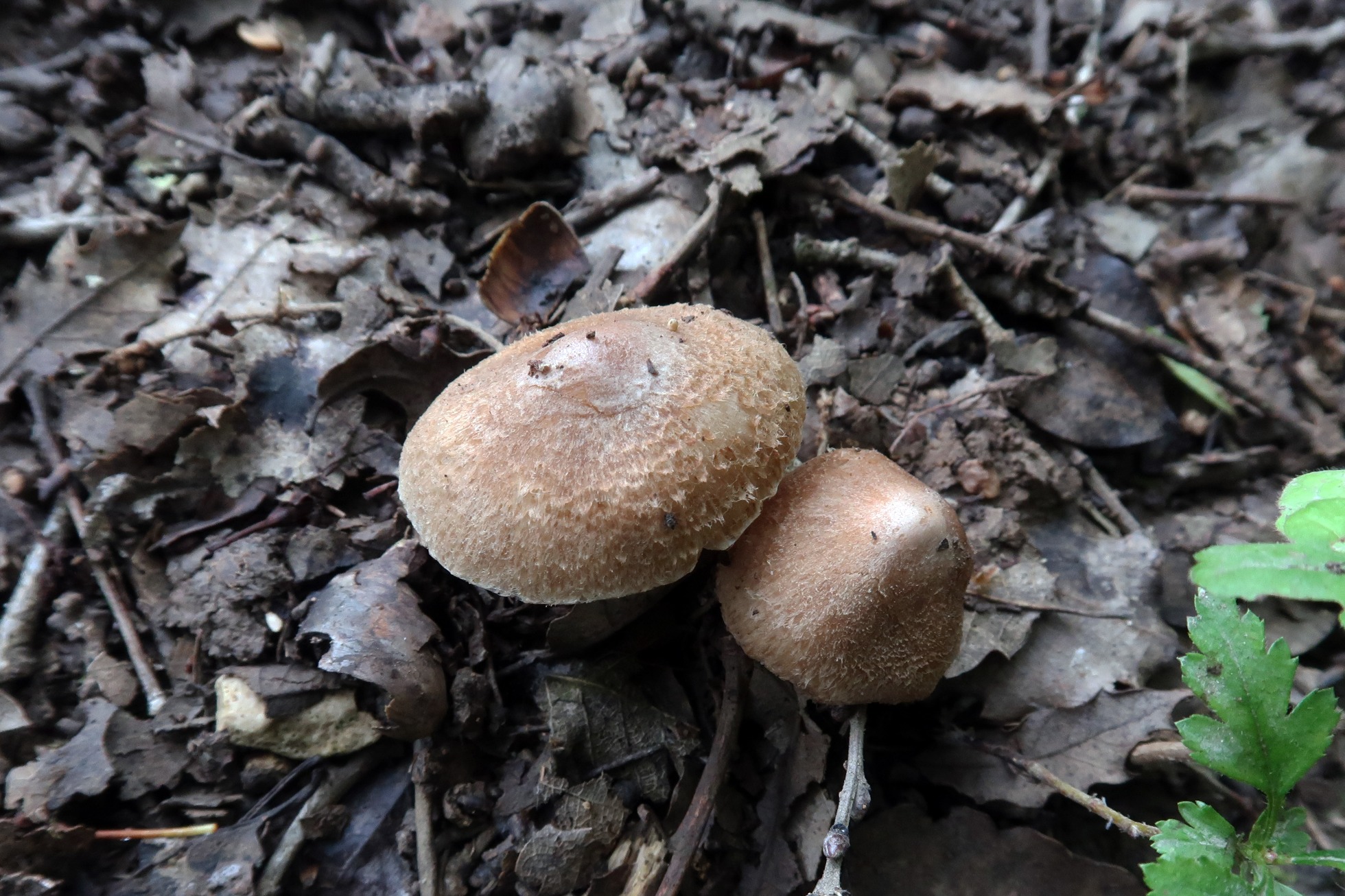 Un par de ejemplares con sombrero de color pardo ocráceo, lleno de fibrillas a modo de pequeñas lanosidades, el mayor de unos 3 cms.