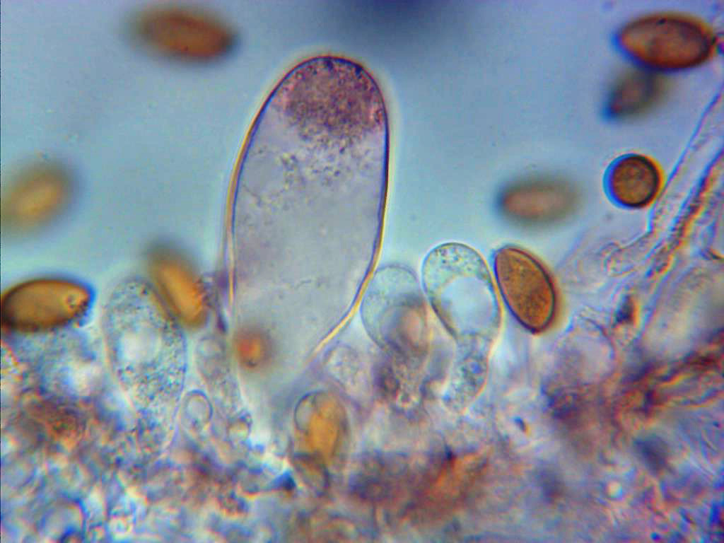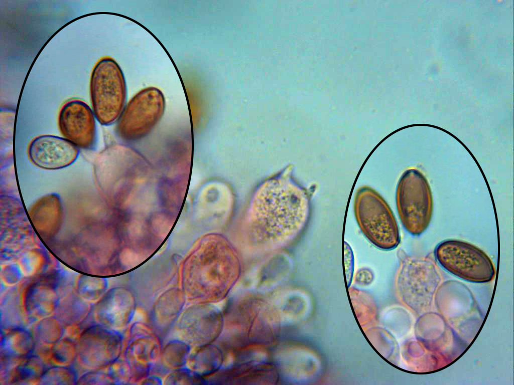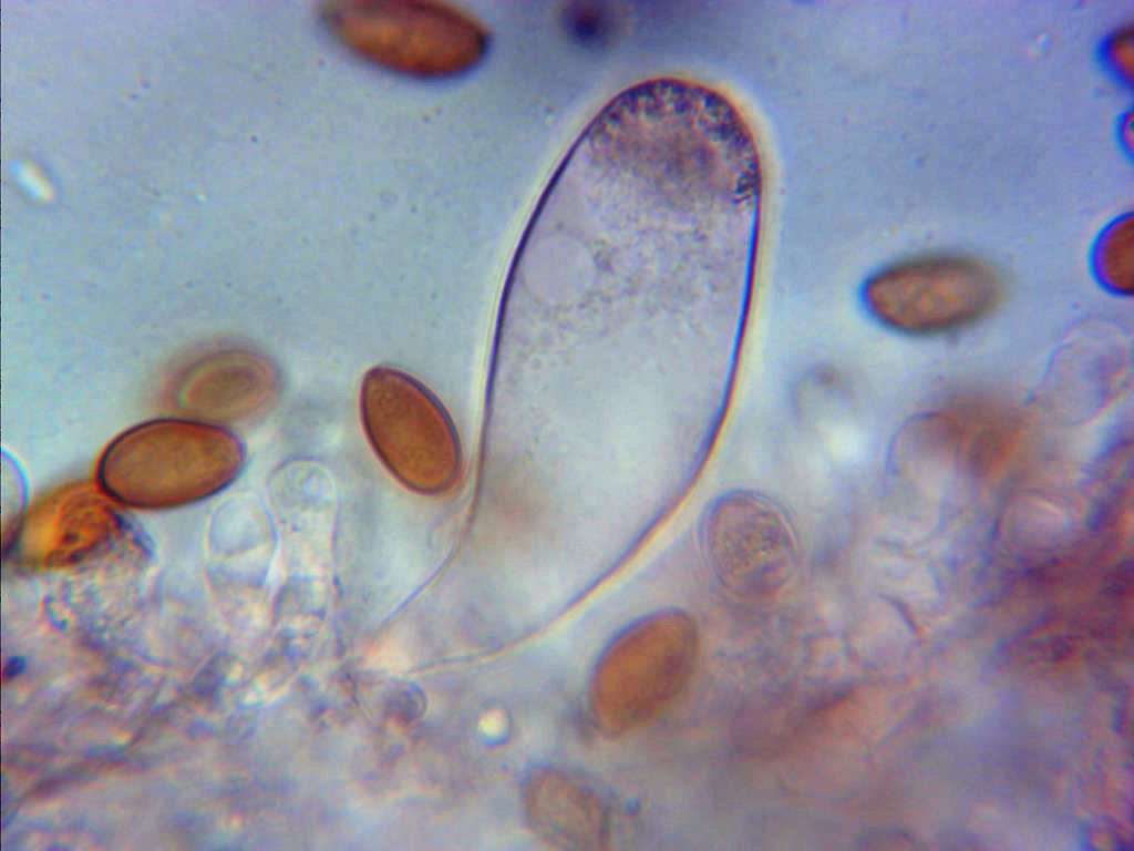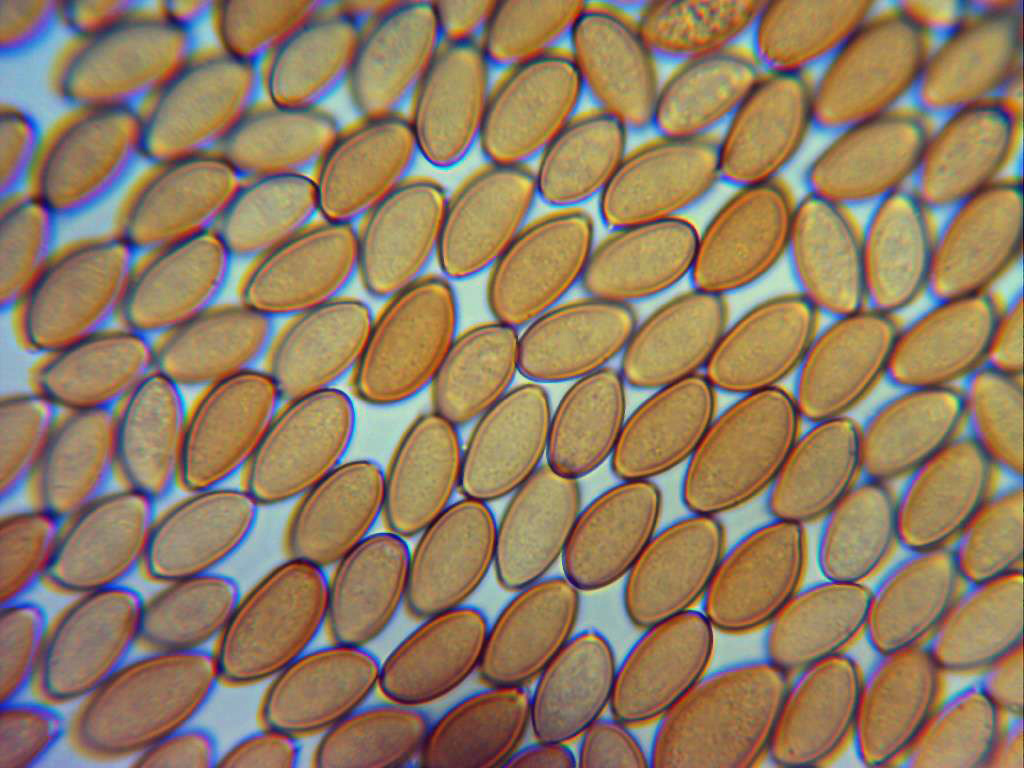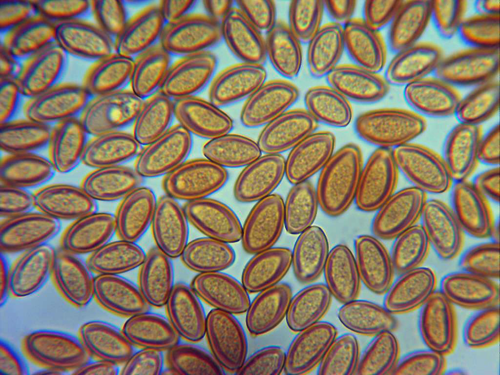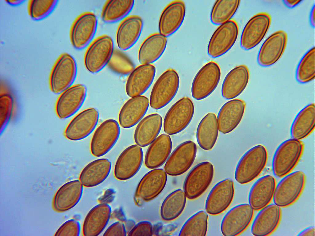 Esporas entre elipsoidales y almendradas, de pared gruesa y poro apical bien visible.