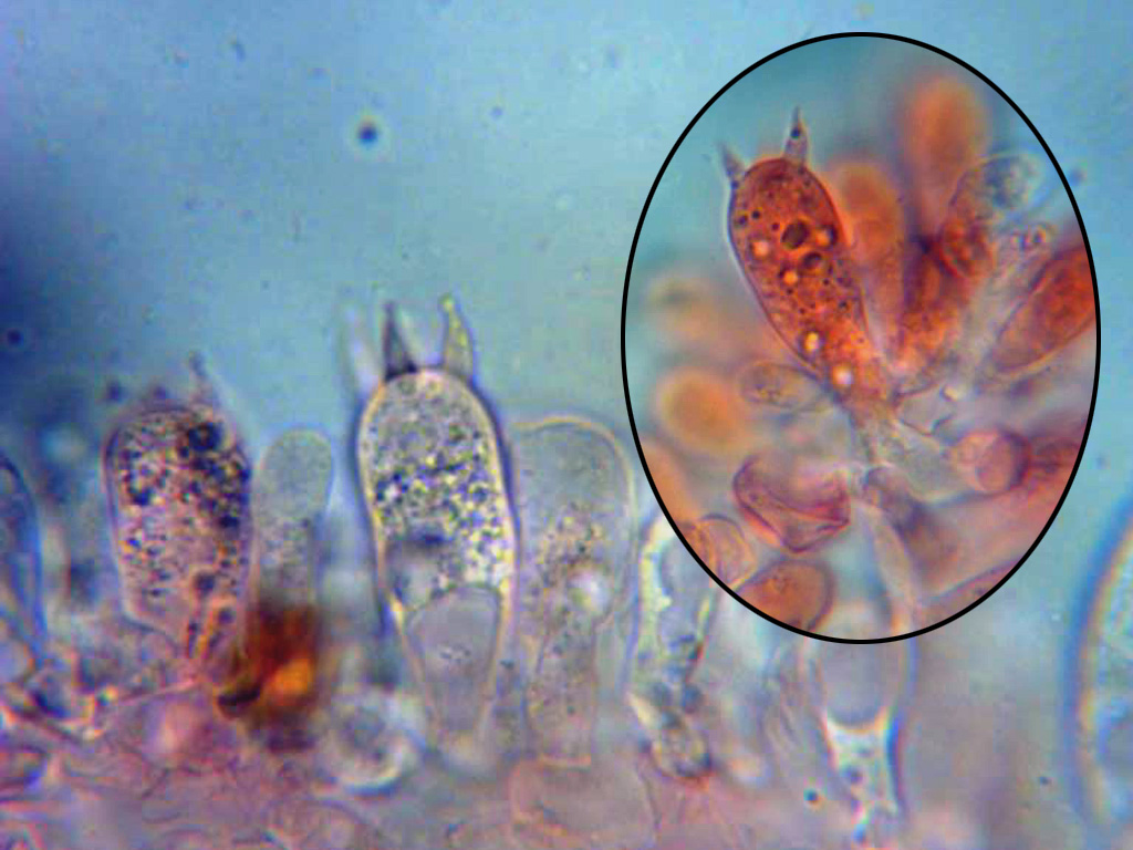 Unas imágenes de sus queilocistidios de muy diversa morfología: