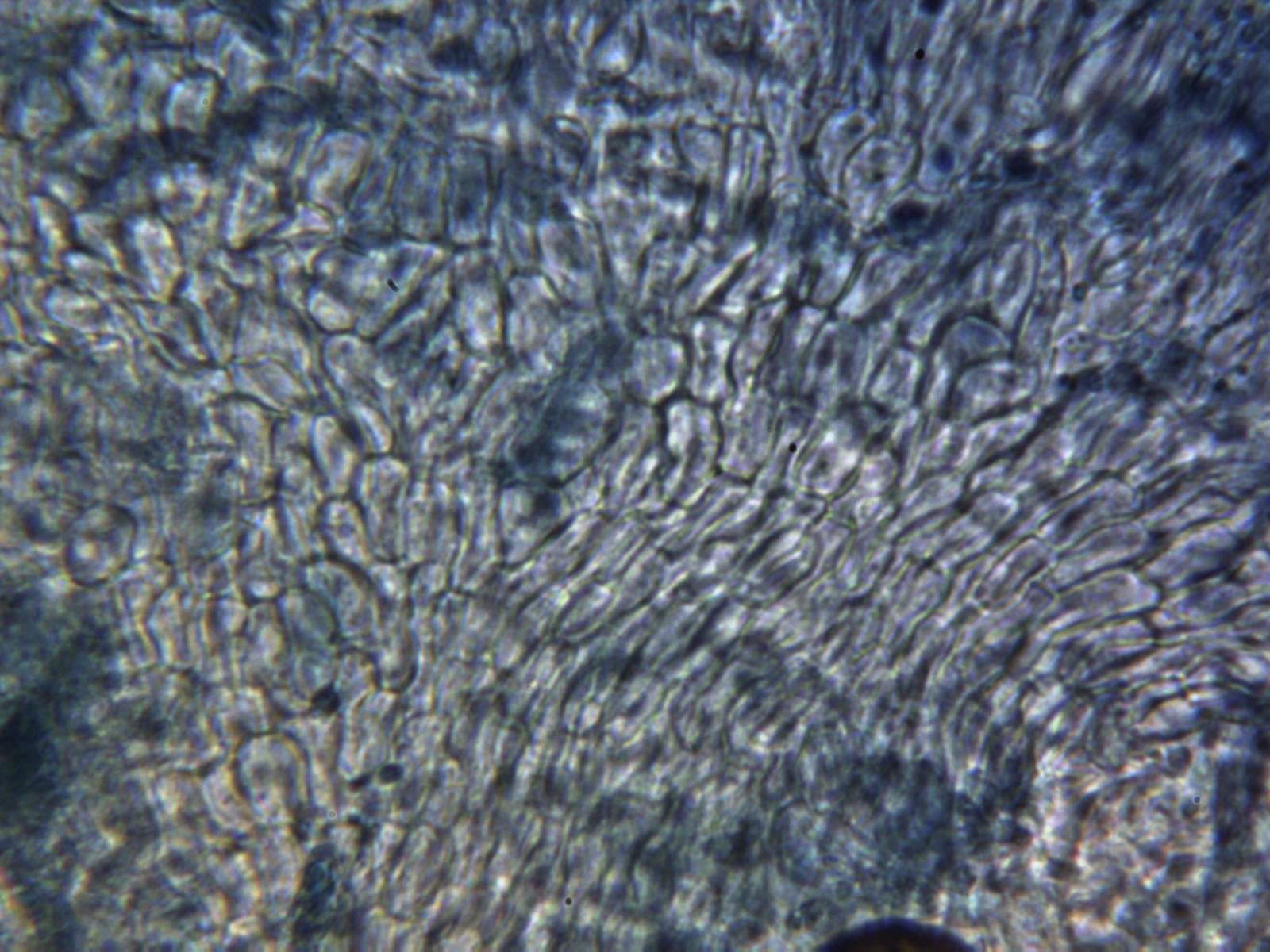 Ascas en solución de reactivo de Melzer con reacción timidamnete amiloide en el ápice.