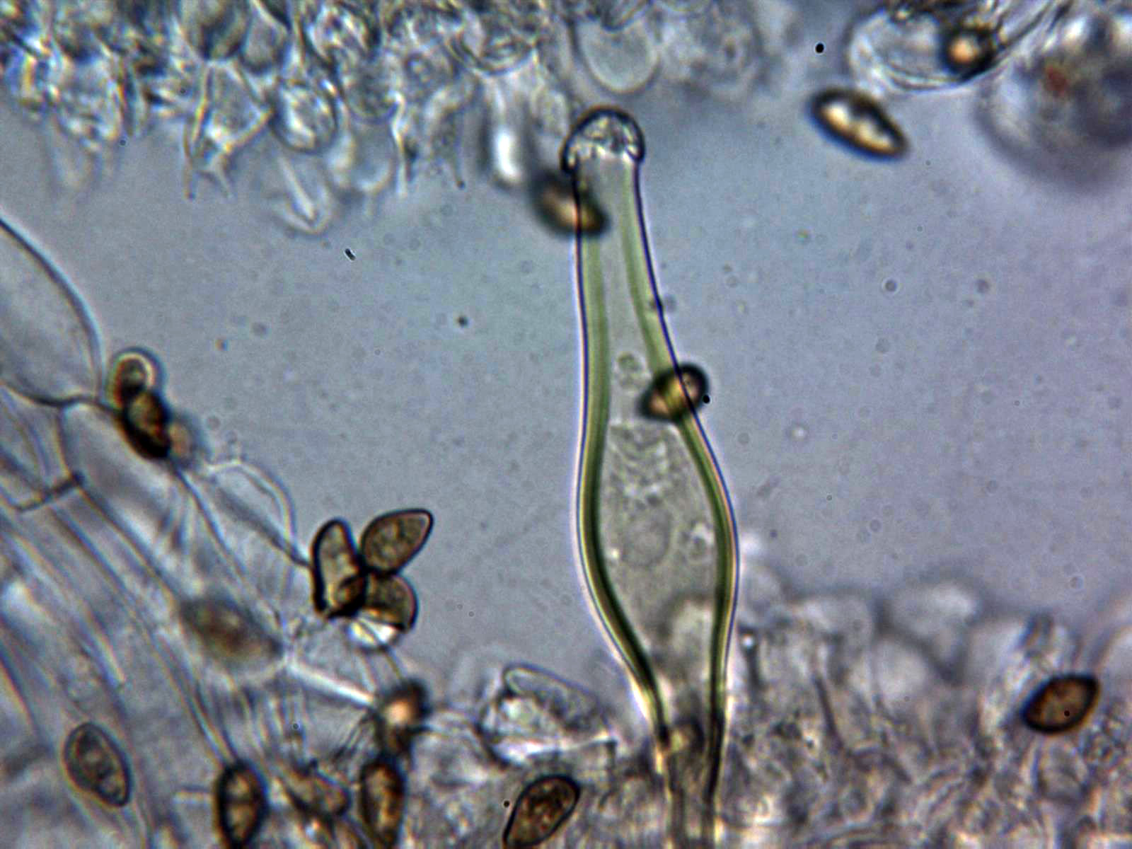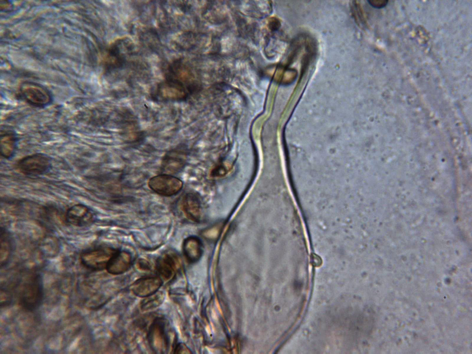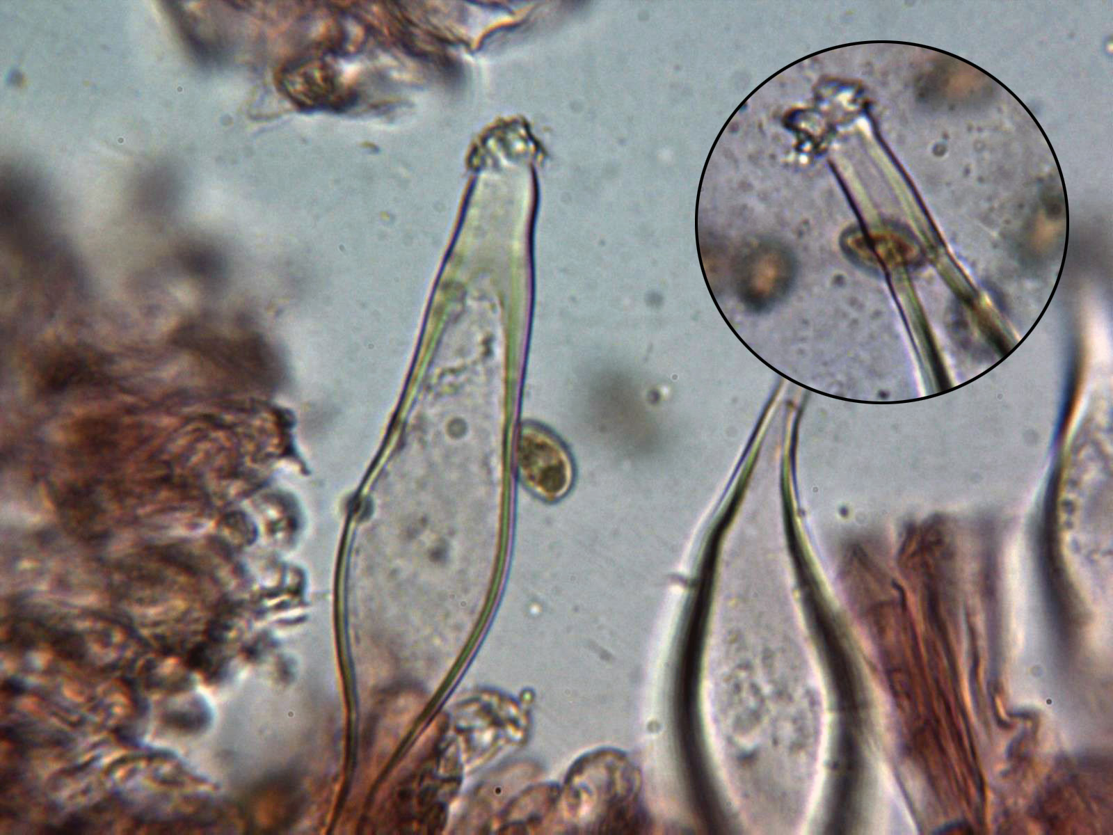 Un Pleurocistidio de gran tamaño con un largo cuello.