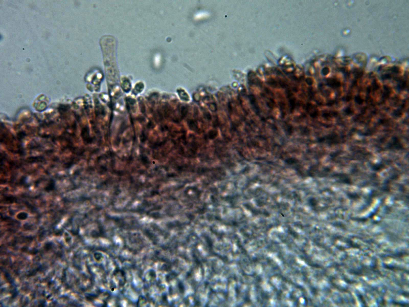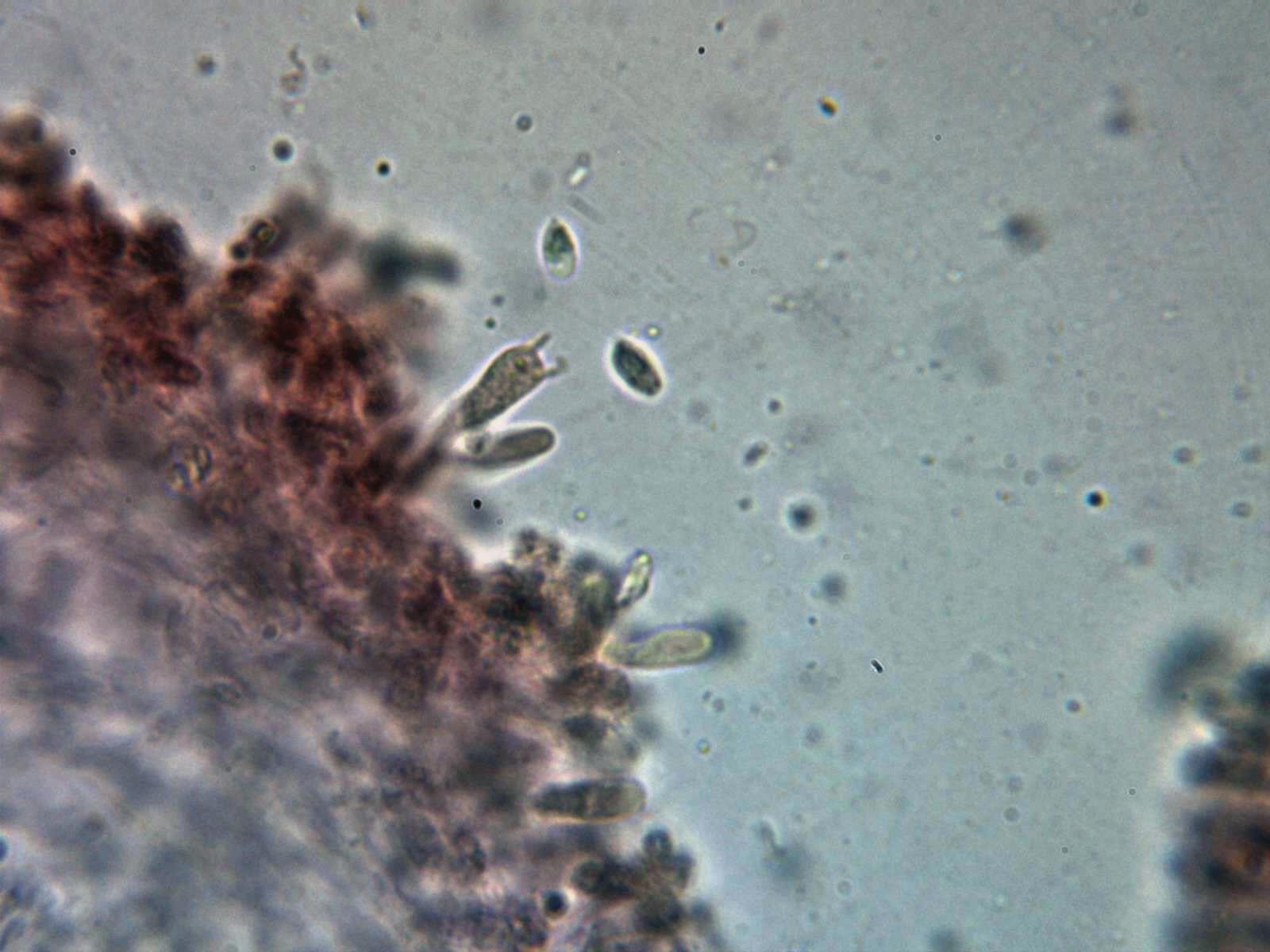 Basidios de pequeño tamaño, mayoritariamente tetraspóricos, aunque también pude observar alguno de bispórico.