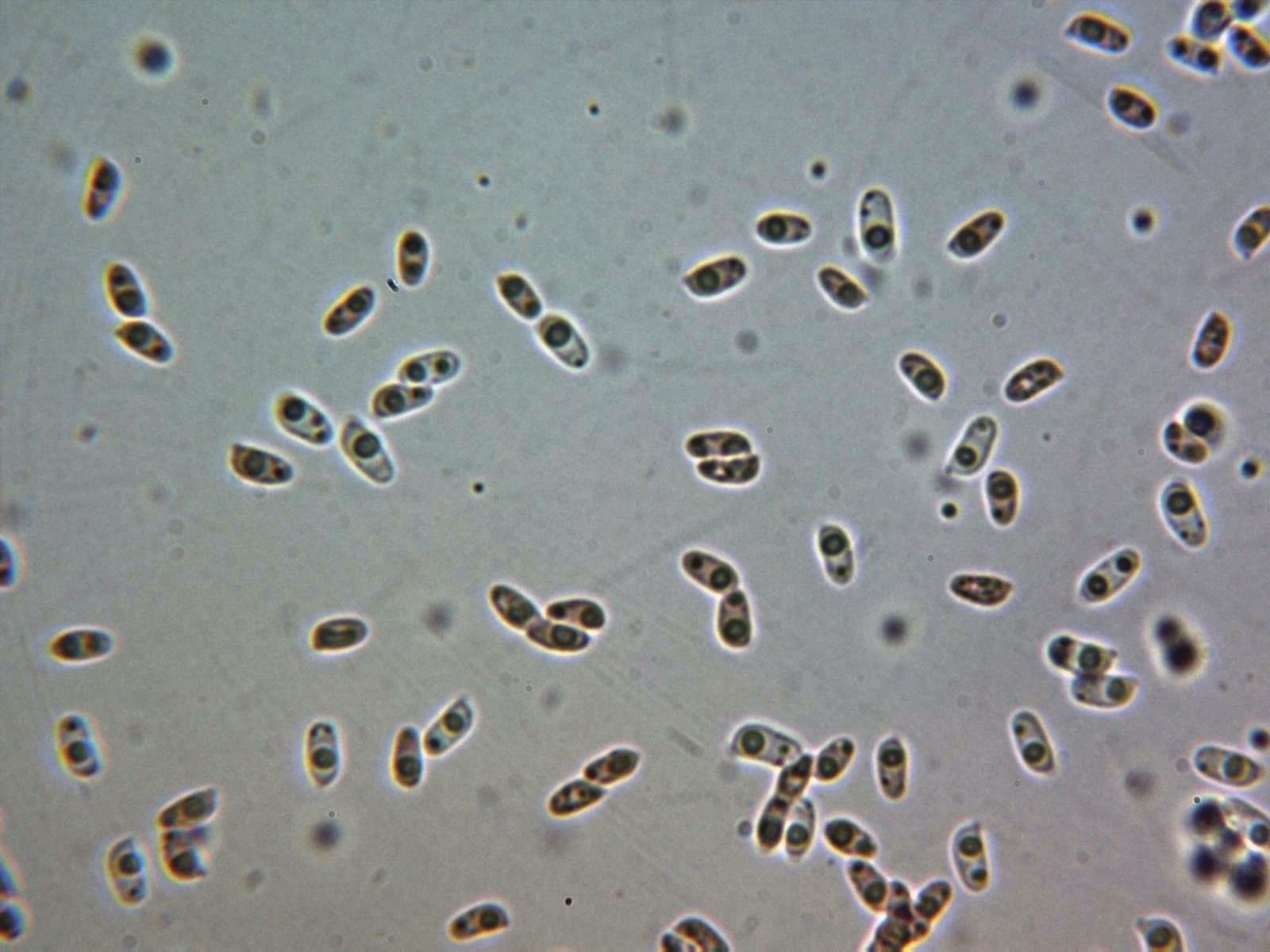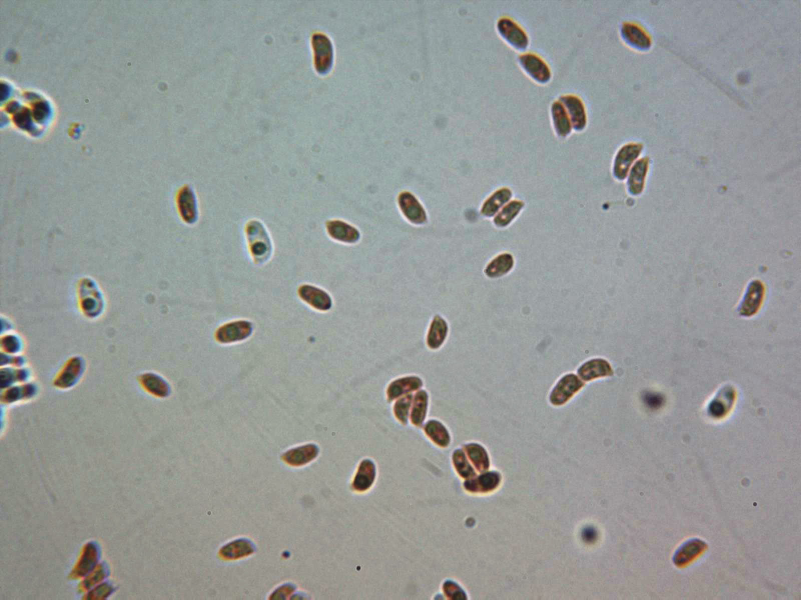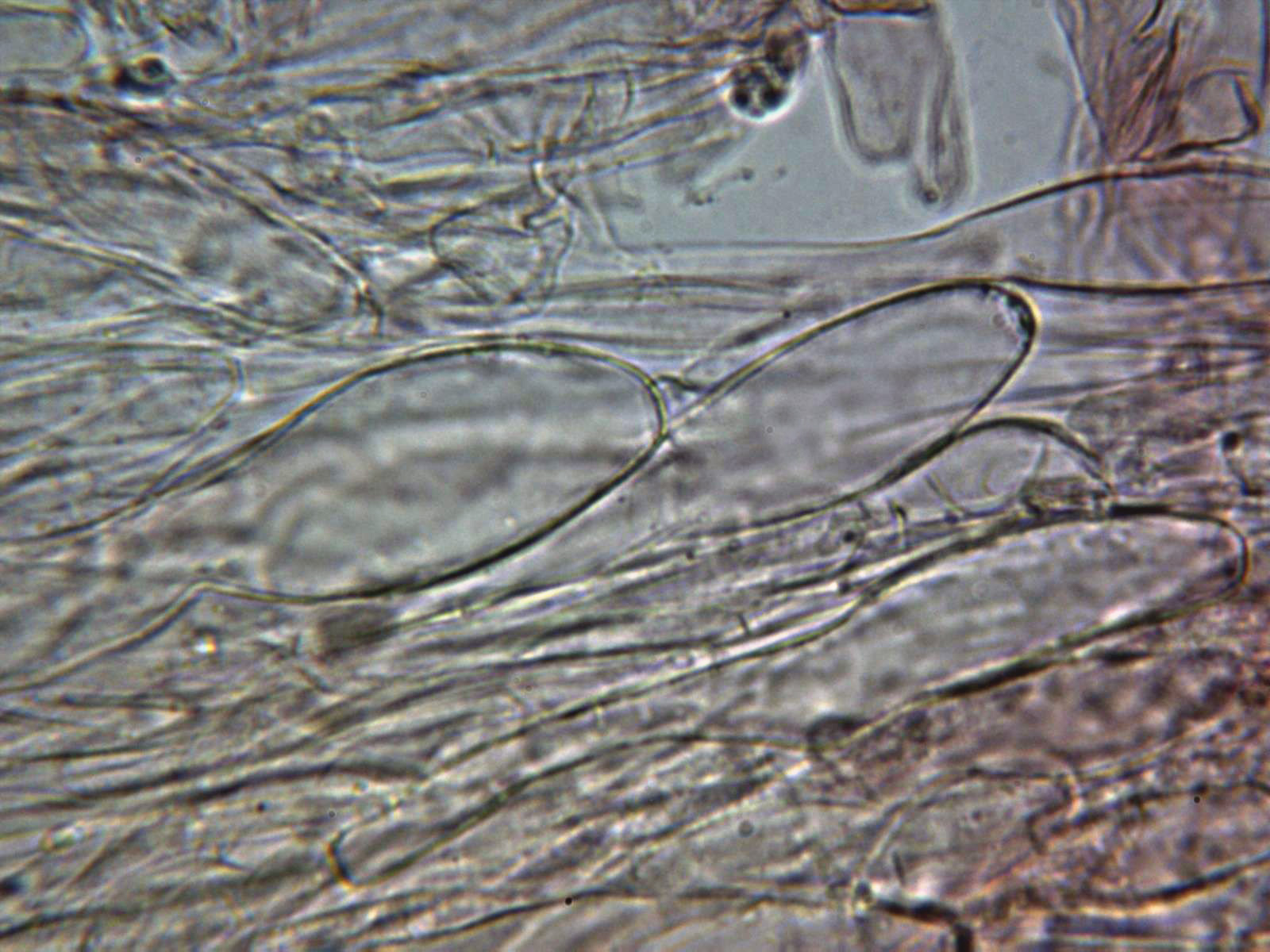 Hifas de la parte media del pié a 400 aumentos, aquí ya sin caulocistidios.
