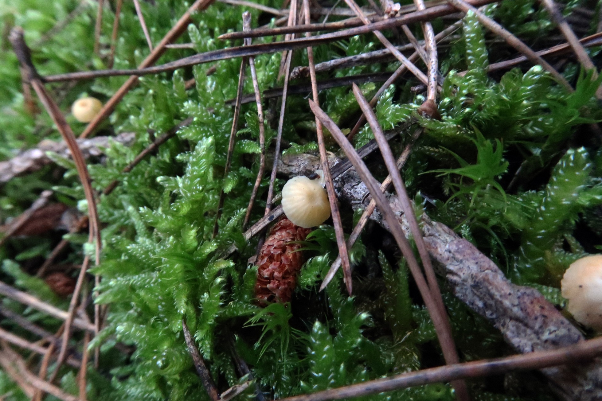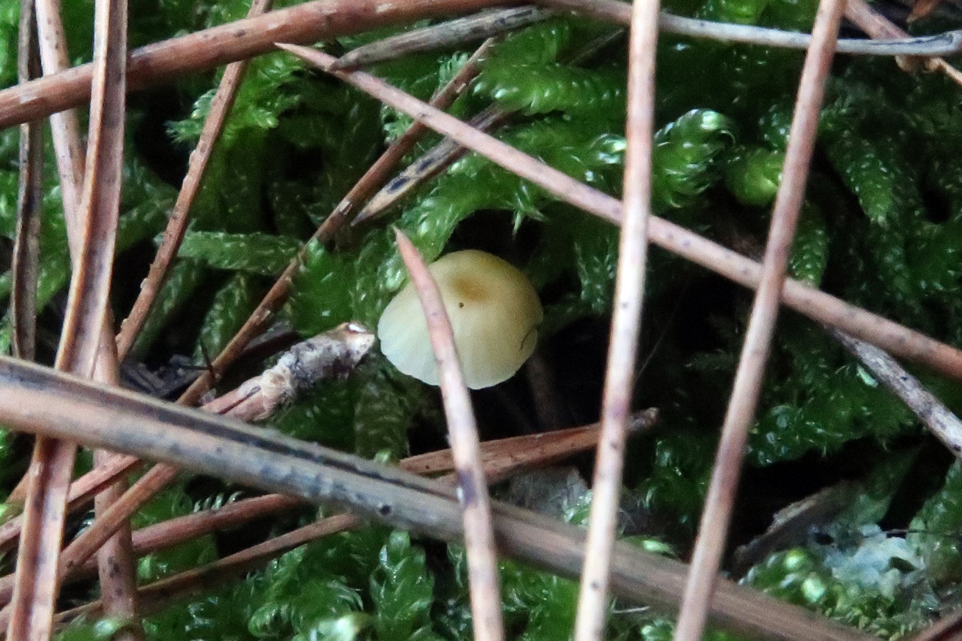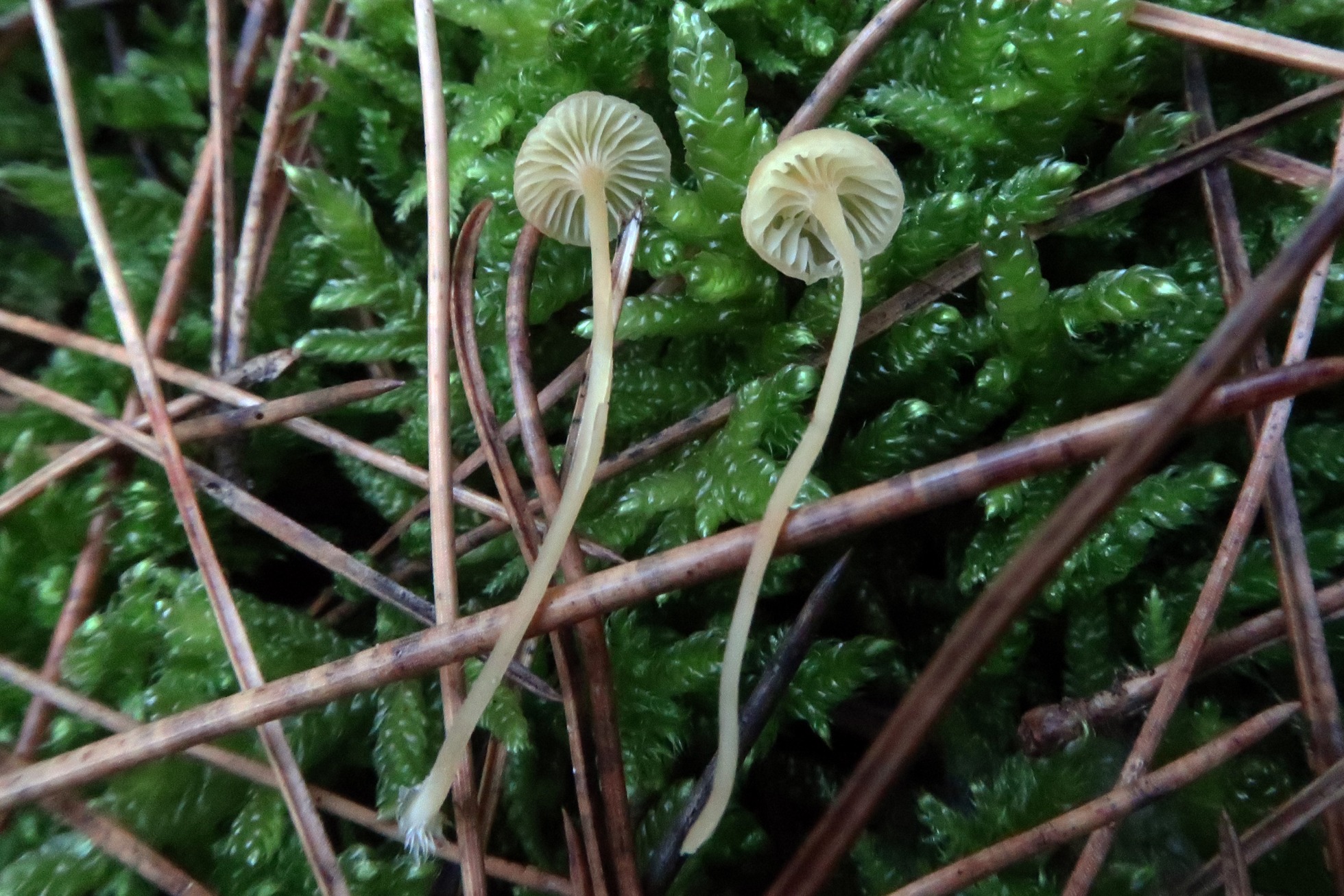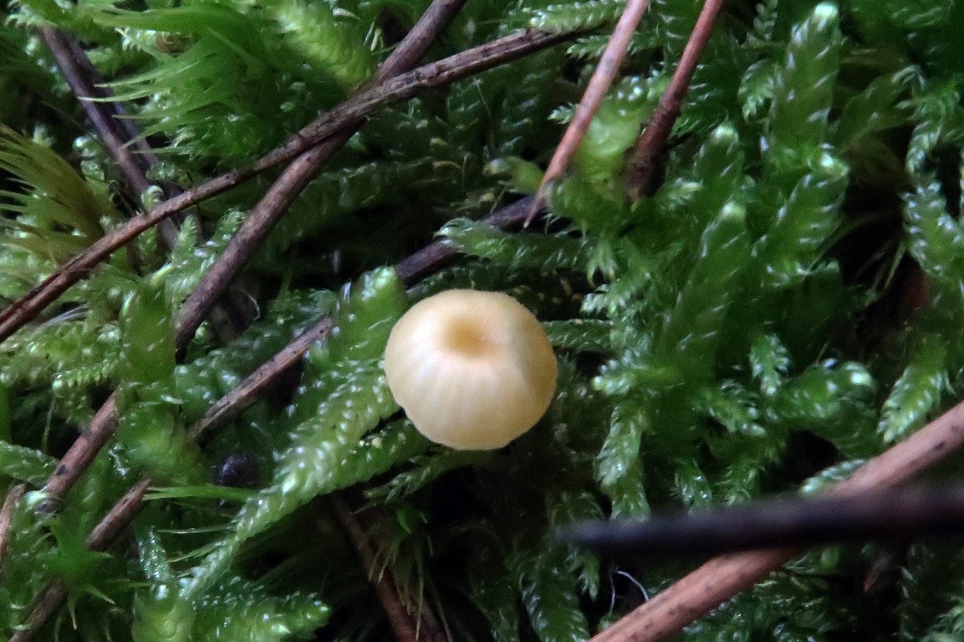 De muy pequeño tamaño, ninguna llegaba a 1 cm. el sombrero, brotando de manera dispersa sobre el musgo de una zona húmeda. Sombrero de color pardo amarillento, umbilicado y con transparencia radial.