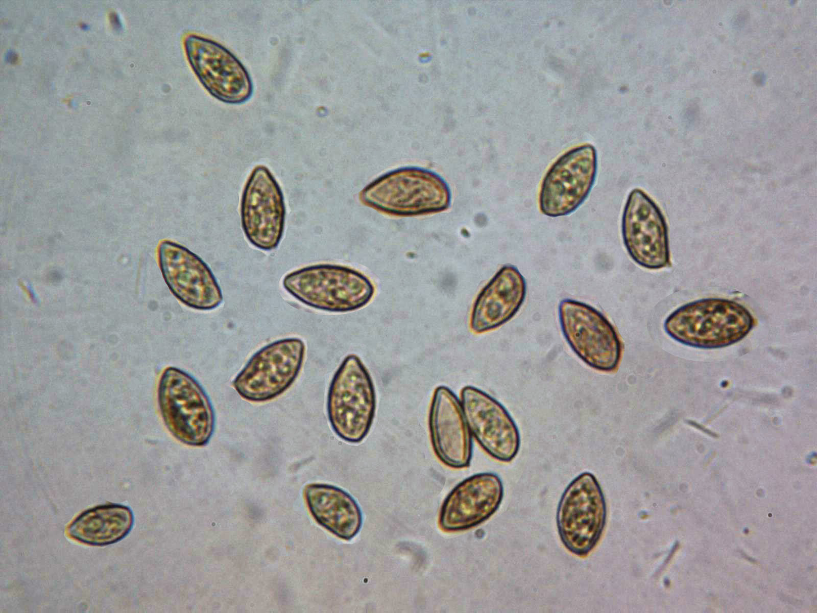 Y sus esporas. En agua destilada y de esporada natural, las medidas de estas de 9,7;13 X 5,7;7,4 micras.