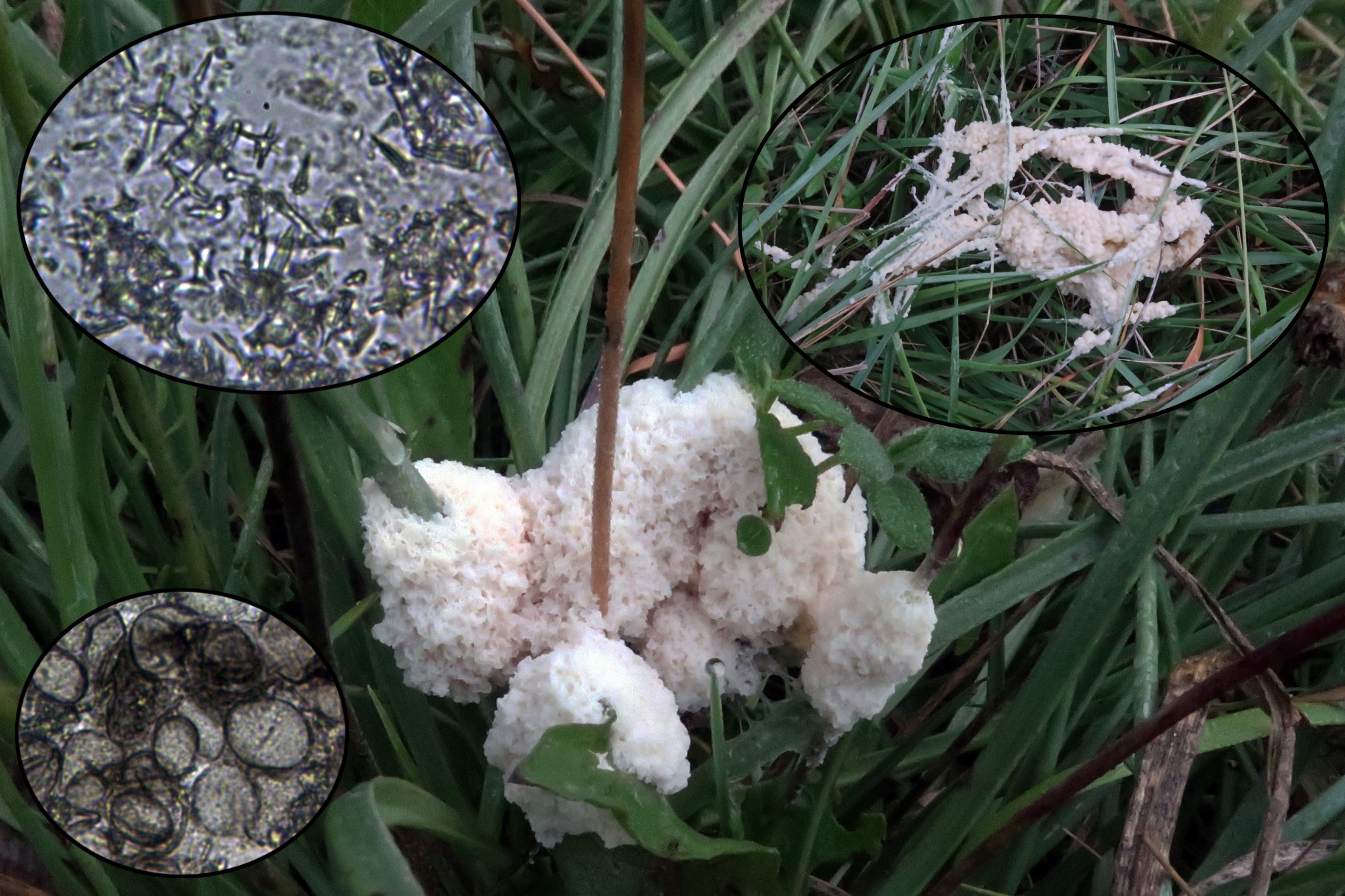 Y por último un Mixo en fase plasmodial, por la presencia de cristales y las células madre (aún no se habían formado las esporas) parece claro que se trata de Mucilago crustacea