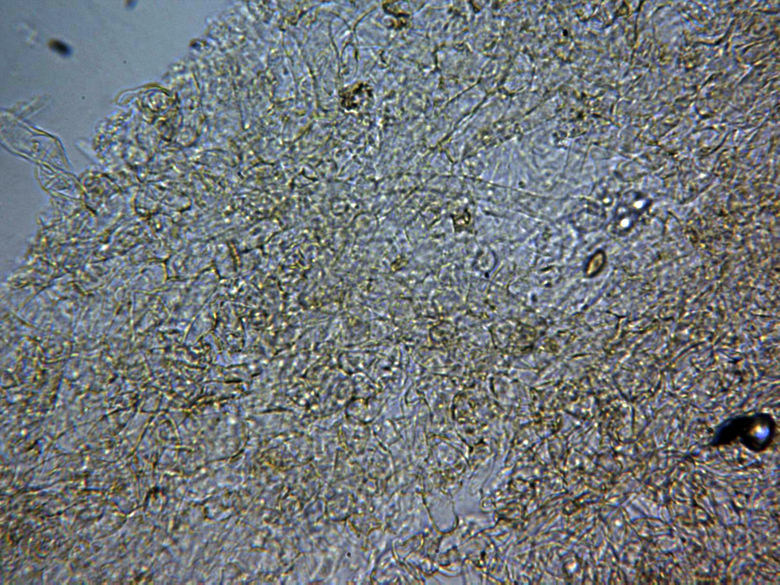 Arista laminar estéril, repleta de queilocistidios ventrudos con un largo cuello, los de las imágenes en solución de Rojo Congo diluido.