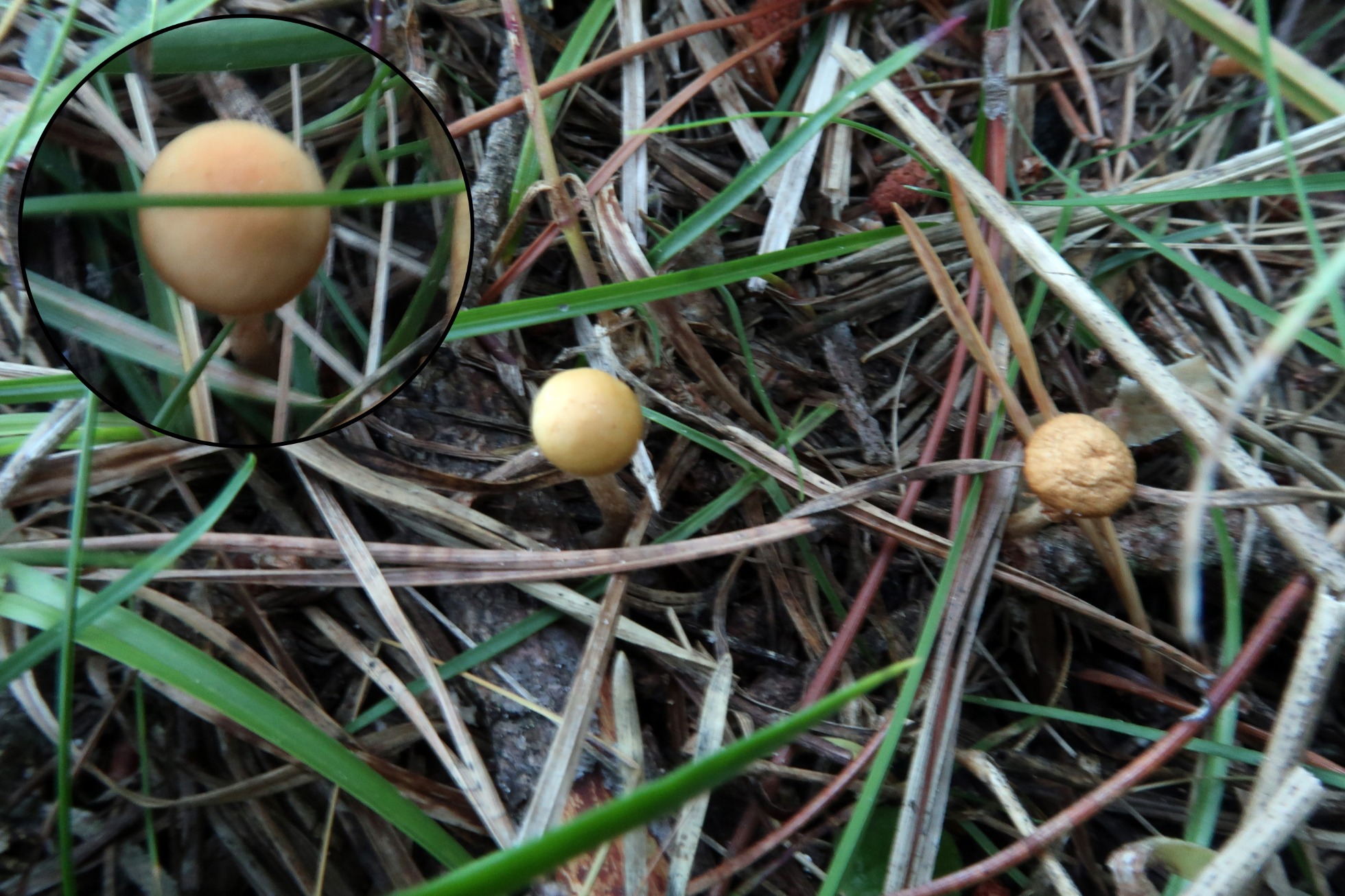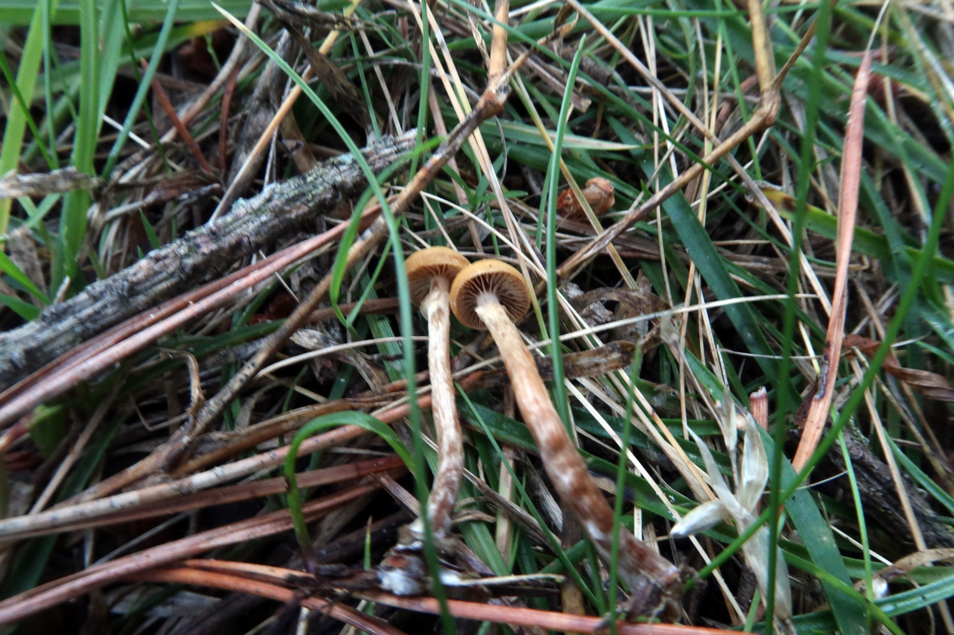 Brotando sobre pequeños restos leñosos del suelo, de muy pequeño tamaño, ninguna llegaba ni tan siquiera a 1 cm., de color ocráceo, con pié concoloro en la parte superior para oscurecerse a marrón rojizo en la parte baja del mismo, presenta en este caso un anillo neto en la parte superior. Láminas medianamente espaciadas, adnatas y algo decurrentes, con lamélulas.