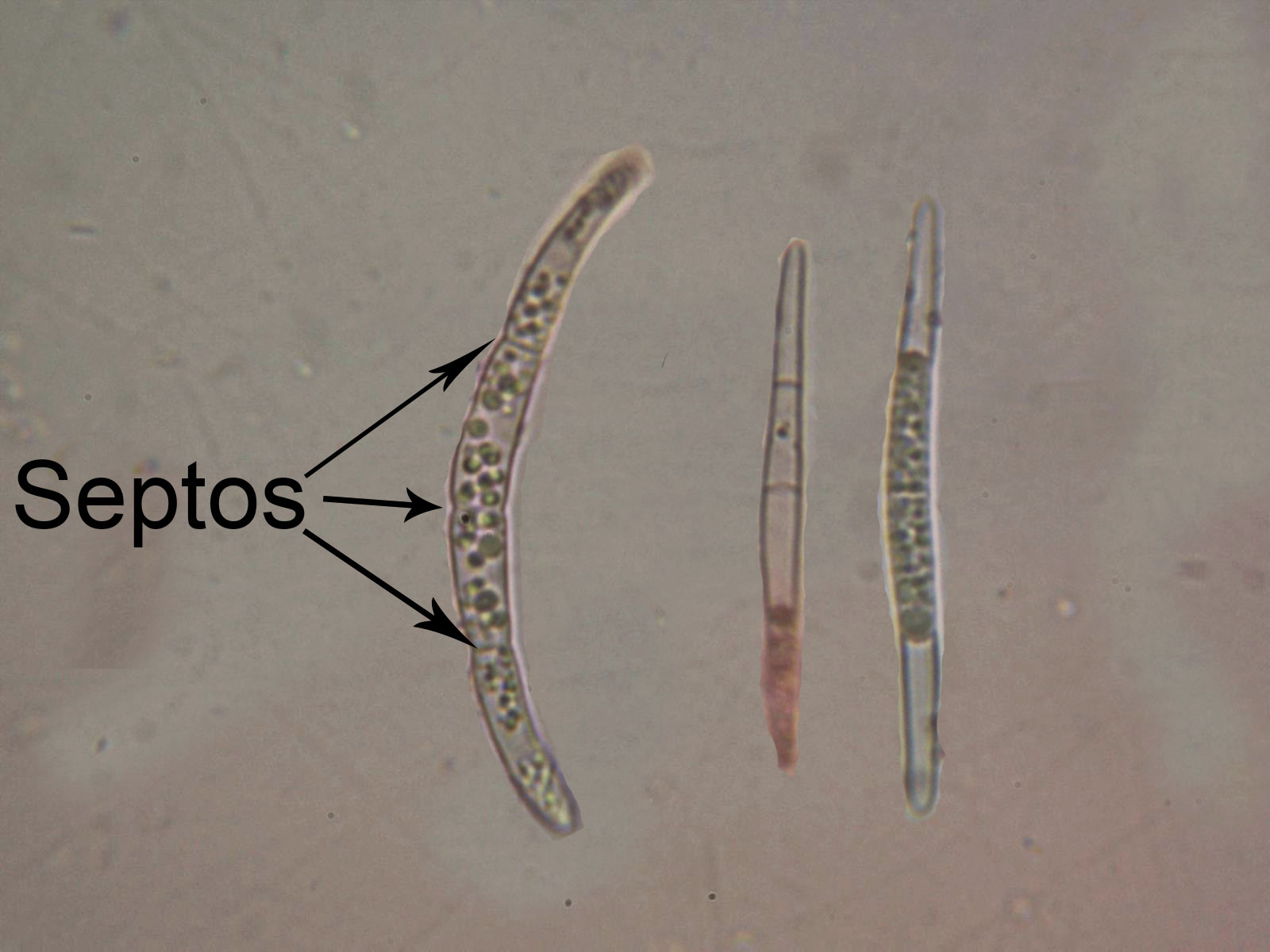 Los septos si bien son difícilmente visibles en agua y también en Rojo Congo, sí que son visibles en Reactivo de Melzer, una imágen de los mismos:
