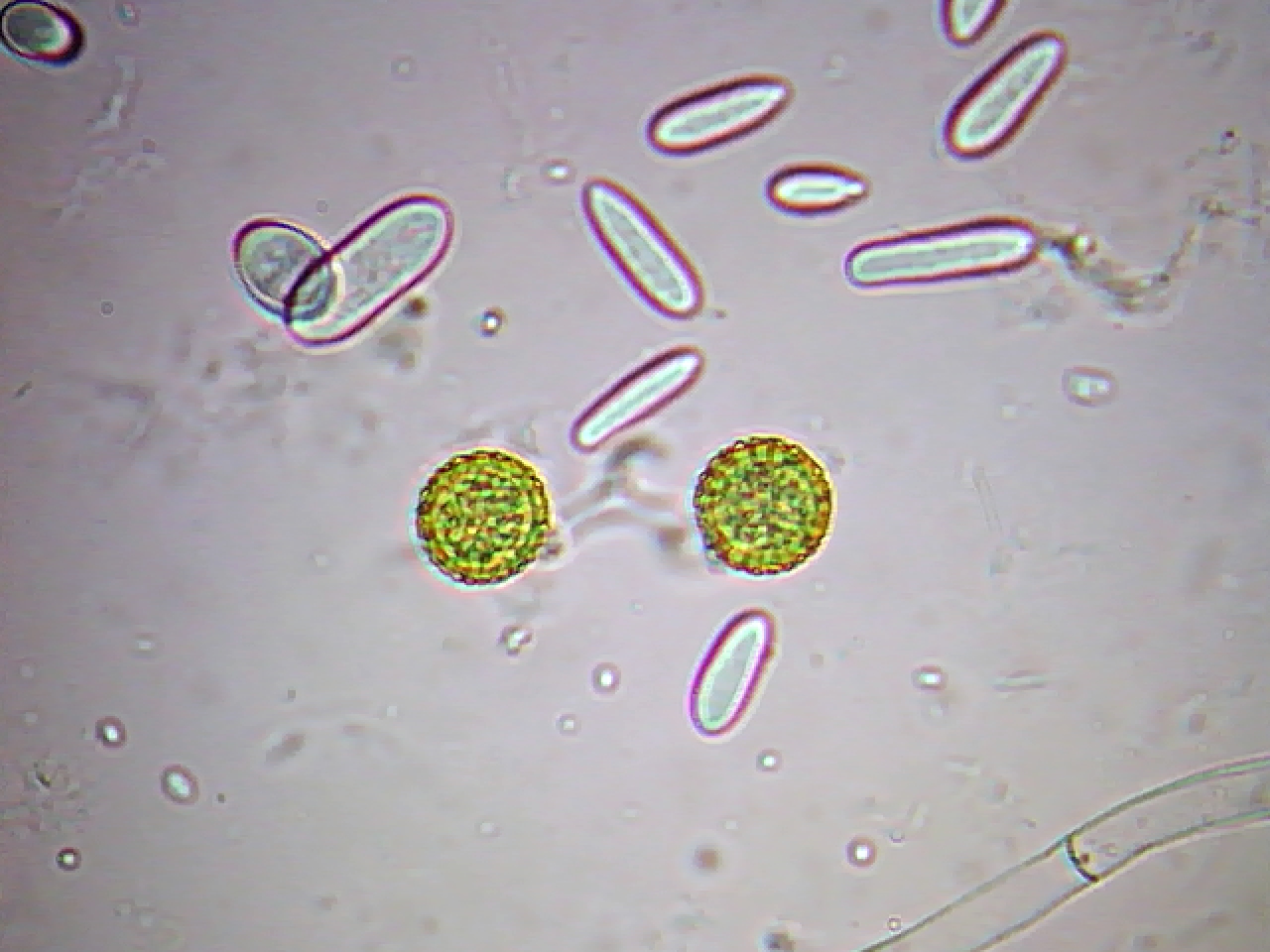 Gracias Javier, desde luego una especie pero que muy agradecida al micro, añadir que no es exclusiva de los Boletus ya que también me la he encontrado encima de Paxillus rubicundulus, dejo un par de imágenes mías de sus conidios (los mismos en diferentes planos) y una imágen del mismo sobre Paxillus.