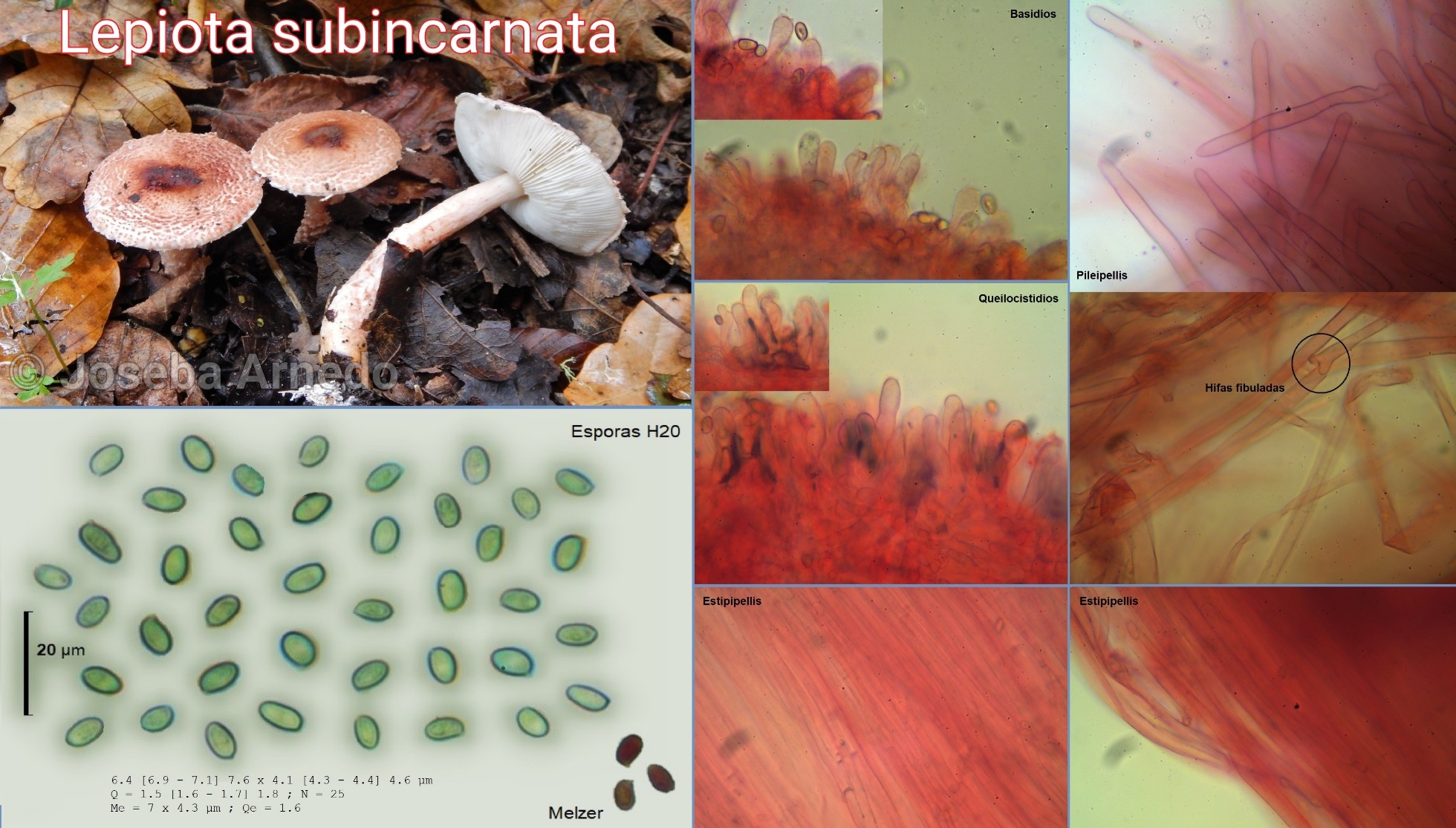 Sinonimizada recientemente con Lepiota josserandii, subincarnata es una especie que guarda muchas similitudes con otras Lepiotas como brunneoincarnta o helveola. Se separa de ellas por pequeños detalles macro y microscópicos, como su tamaño esporal o el de hifas de la pileipellis que en subincarnata son de un tamaño mucho mayor.
