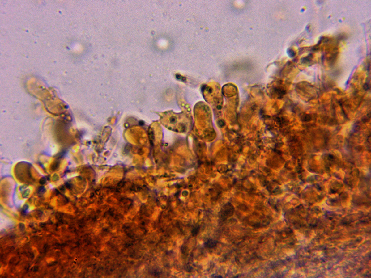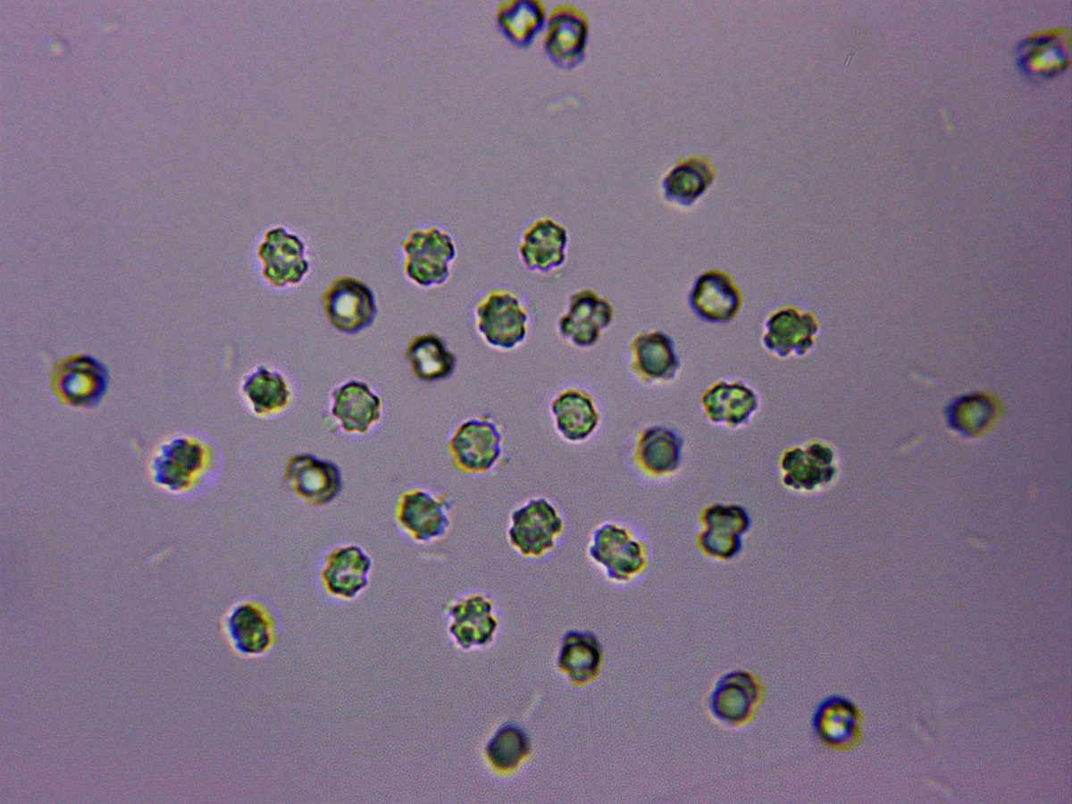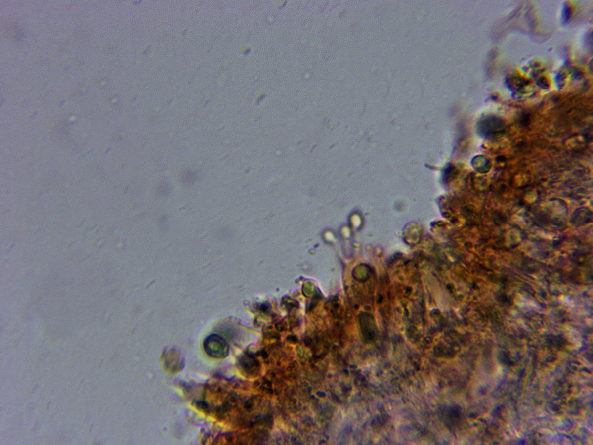 Esporas entre esféricas y ovoides, nodulosas e hialinas, las medidas de estas de: