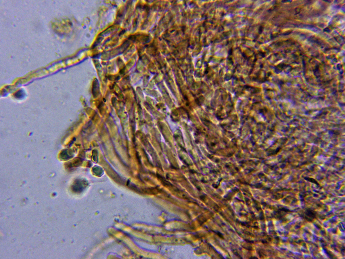 Fibrillas de la superficie del sombrero a 20 aumentos.