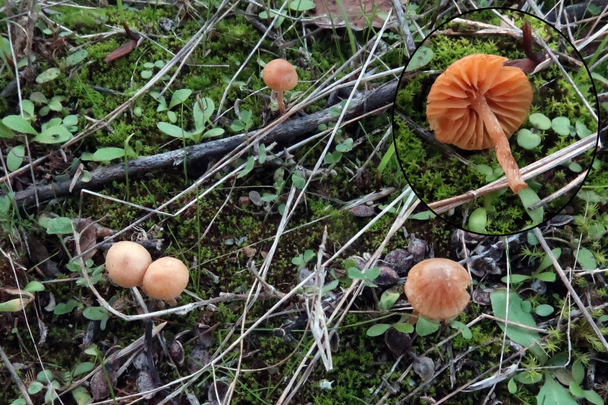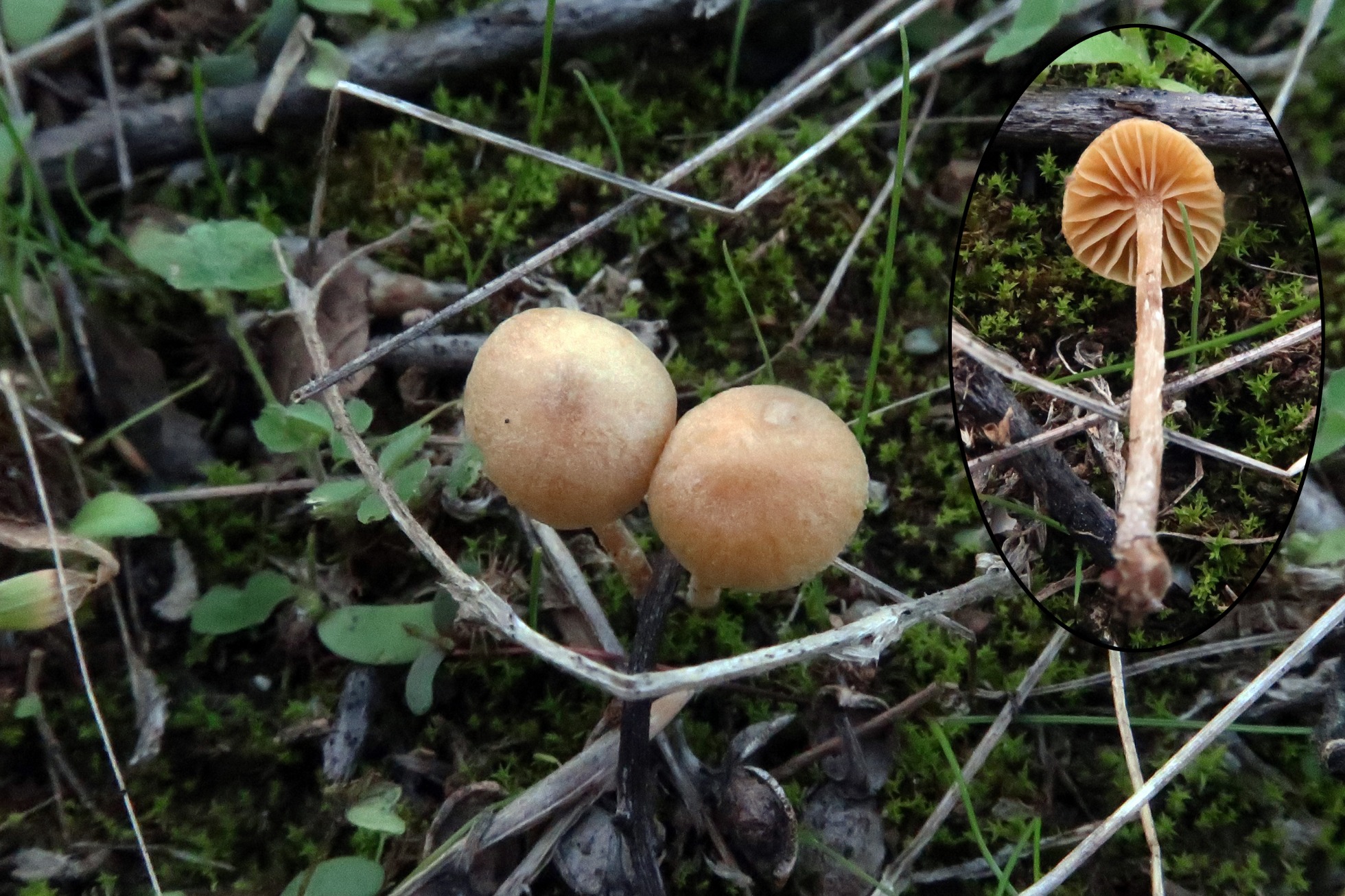 Una Galerina fotografiada el pasado 7 de Noviembre, brotando directamente del musgo del suelo.