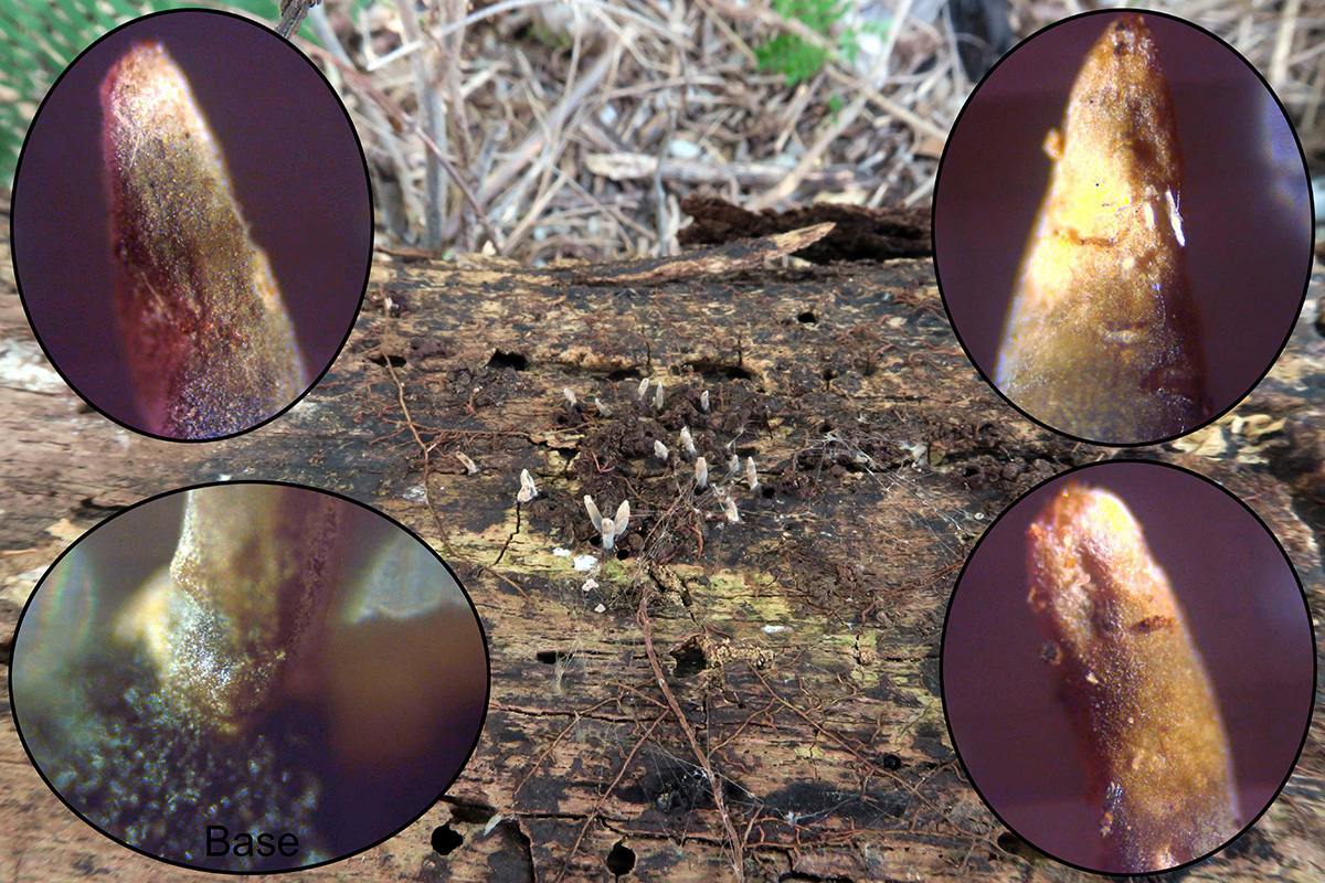 De no haberle realizado la microscopía en su momento habría pensado en que se trataba sin ninguna duda de la fase conidial de la Xylaria longiana. Este aspecto denominado "dedos de muerto" encajaría perfectamente con la fase asexual (anamorfo) de las Xylariaceae.