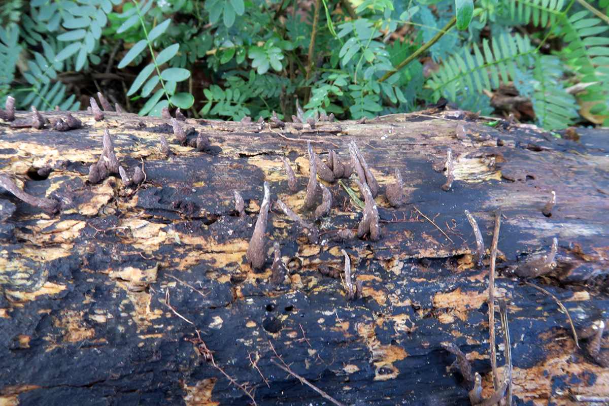 Tengo bastante claro que lo que fotografié en Julio del pasado año se trata de un basidiomiceto, que por supuesto no tendría nada que ver con la Xylaria longiana descrita ahora y fotografiada la semana pasada en el mismo tronco.