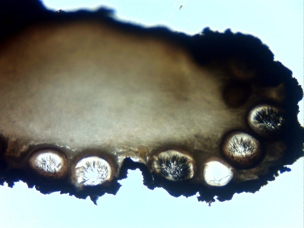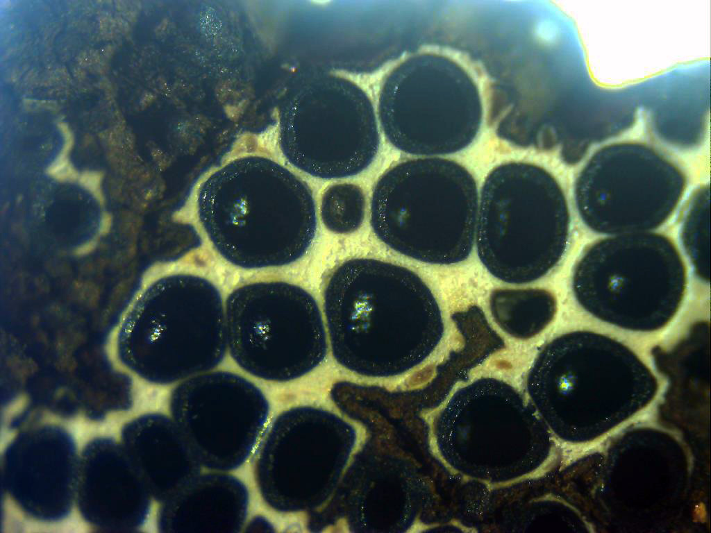 El mismo que el anterior pero ya con luz, en el interior de los peritecios ya se pueden vislumbrar las ascas.
