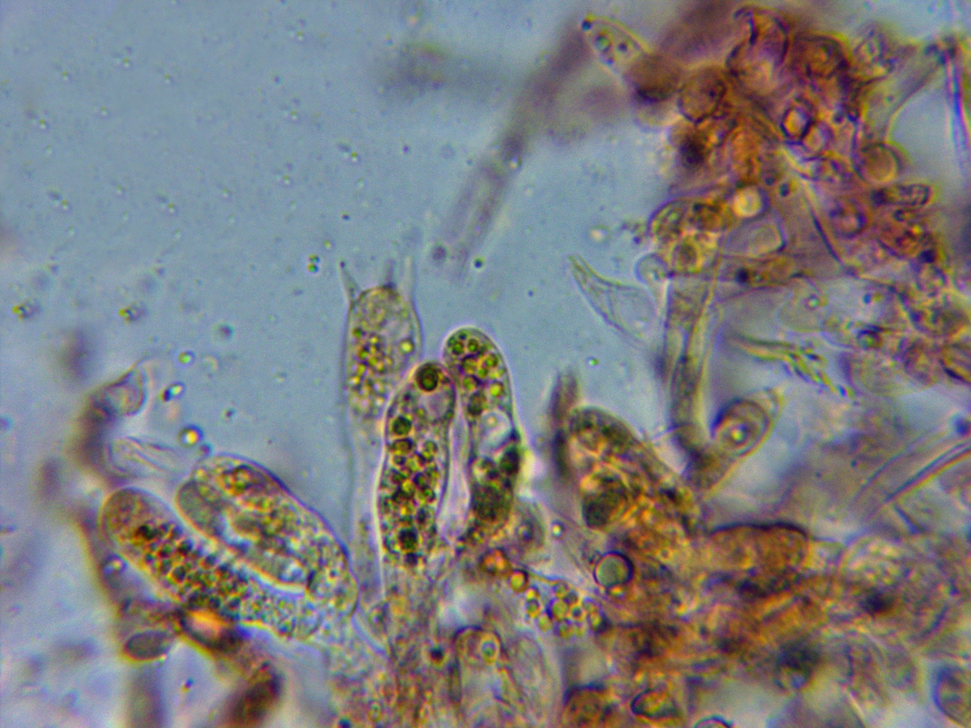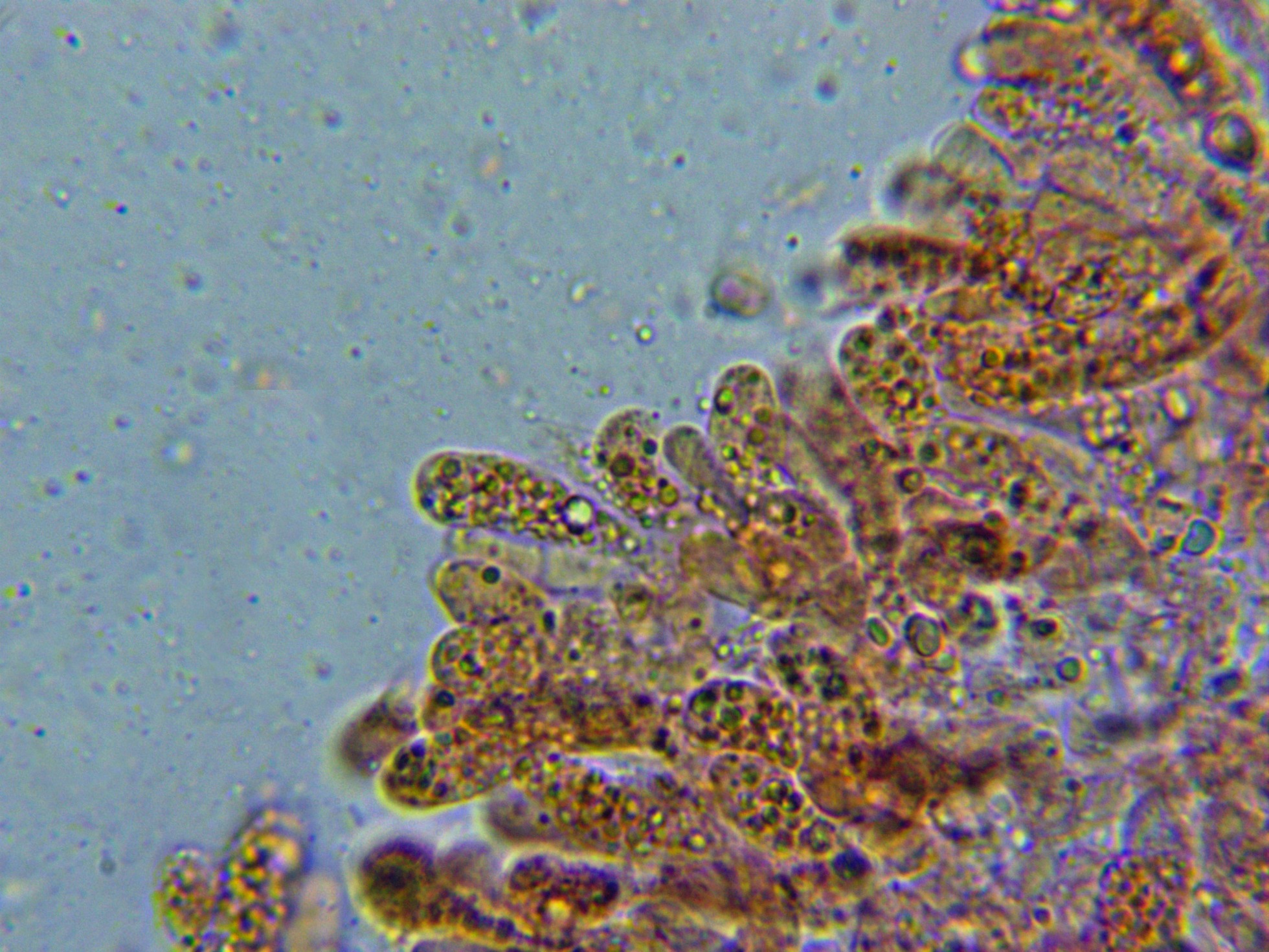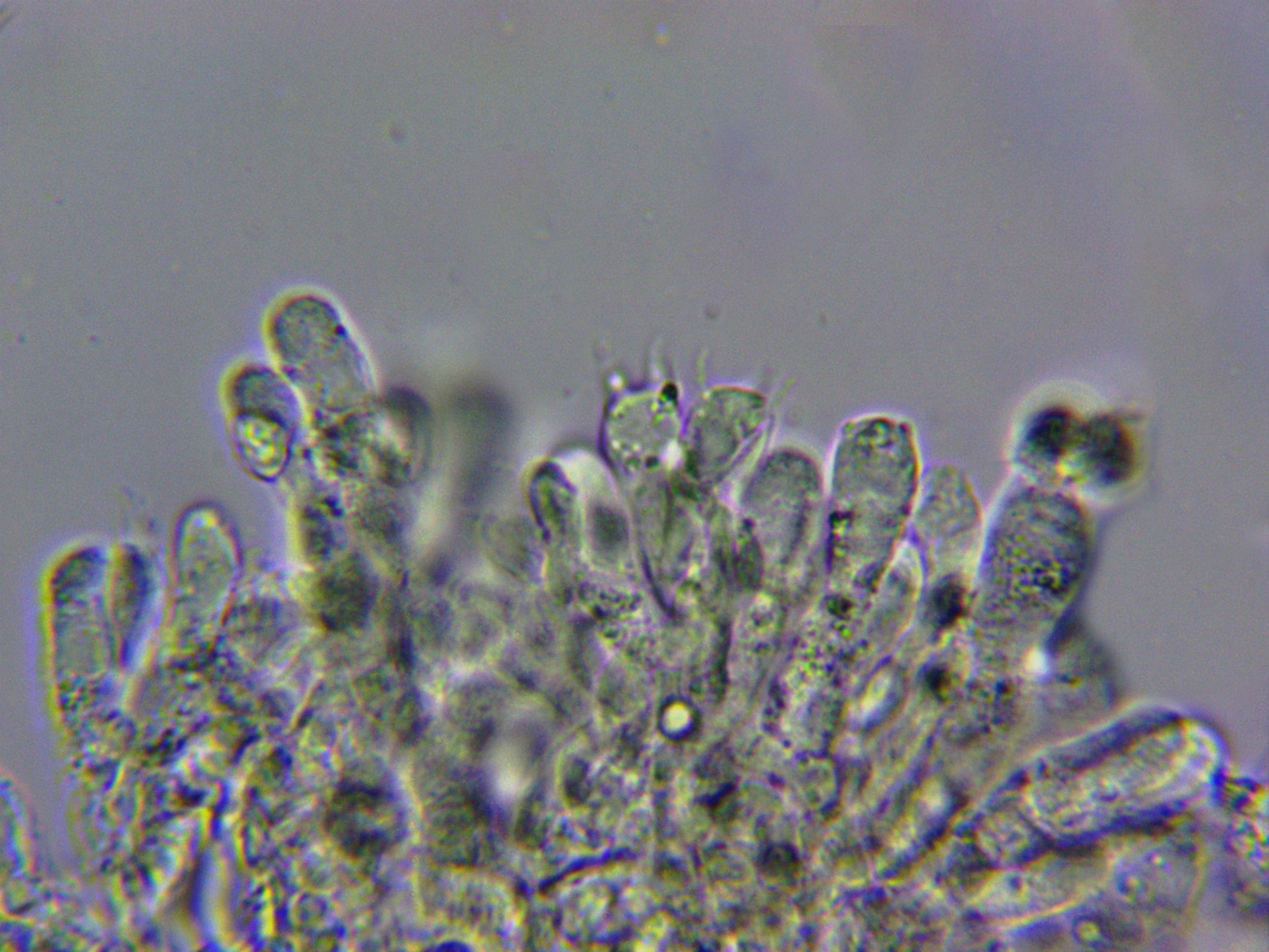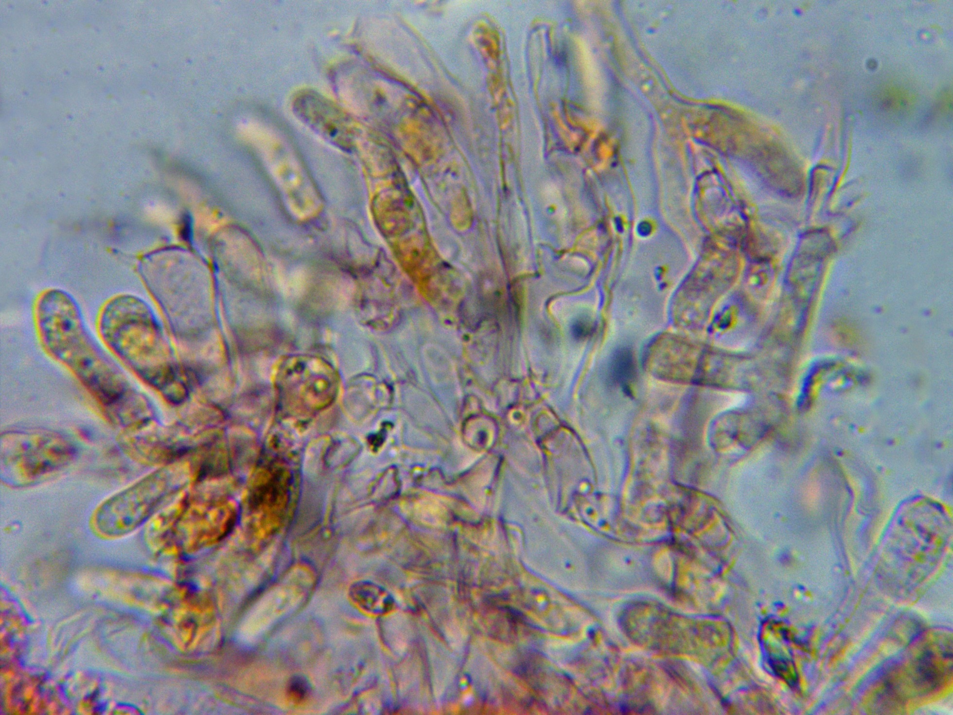 Himenio a 1000 aumentos, sin cistidios diferenciados.
