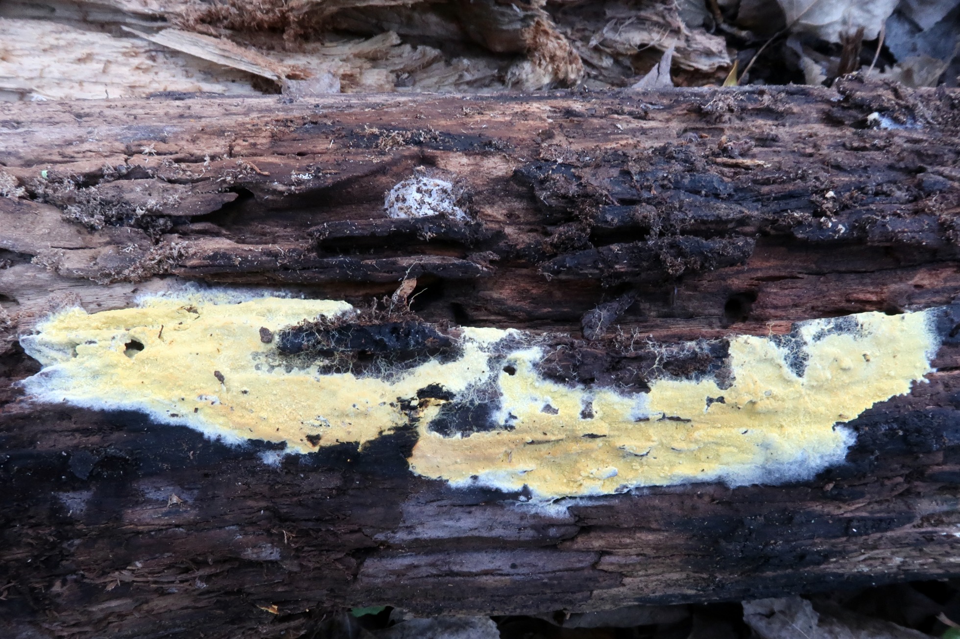 Un hongo fotografiado el 16 de Marzo del pasado año, sobre la superficie de un tronco ya muy degradado en cauce fluvial y muy cerca de mi ciudad.