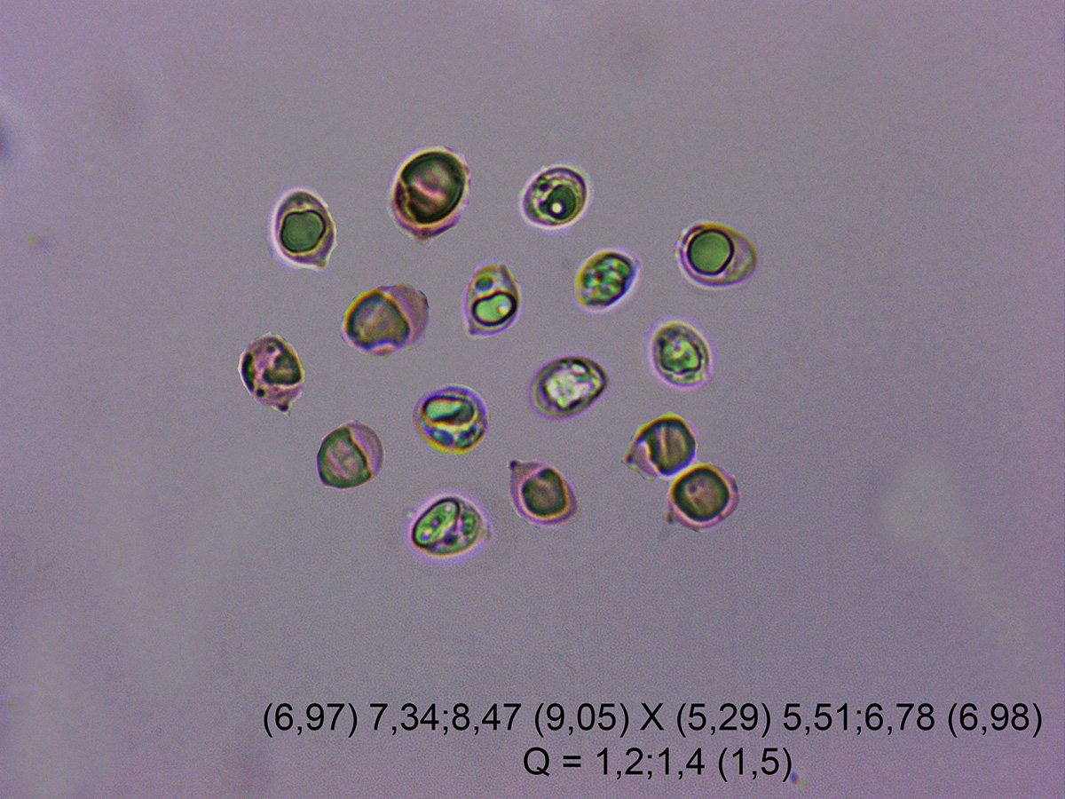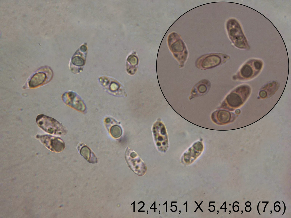 Medidas según "Les Champignons de Suisse": 9-12 x 6,3-8,6 µm