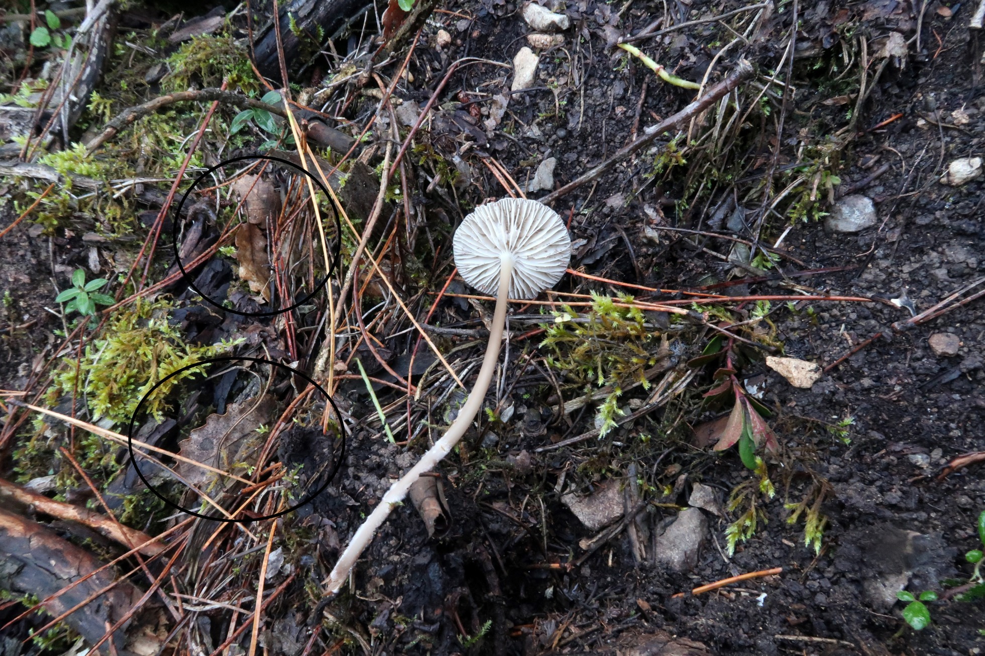 A pesar de que parece brotar del suelo, lo mas probable es que lo hiciera sobre restos leñosos.