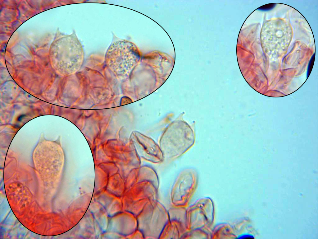 Las medidas de los queilocistidios, (27.9) 29.5 - 40.3 (42.1) × (9.4) 10.2 - 12.8 (13.8) µm
