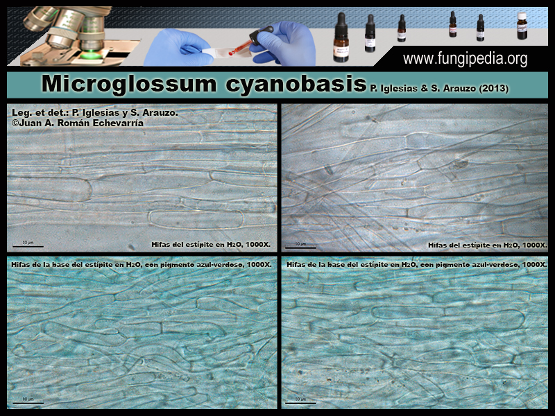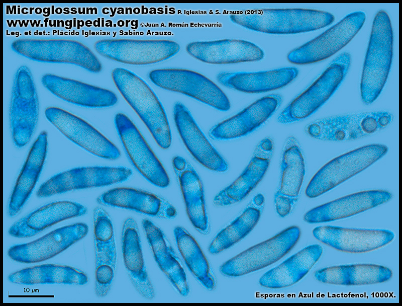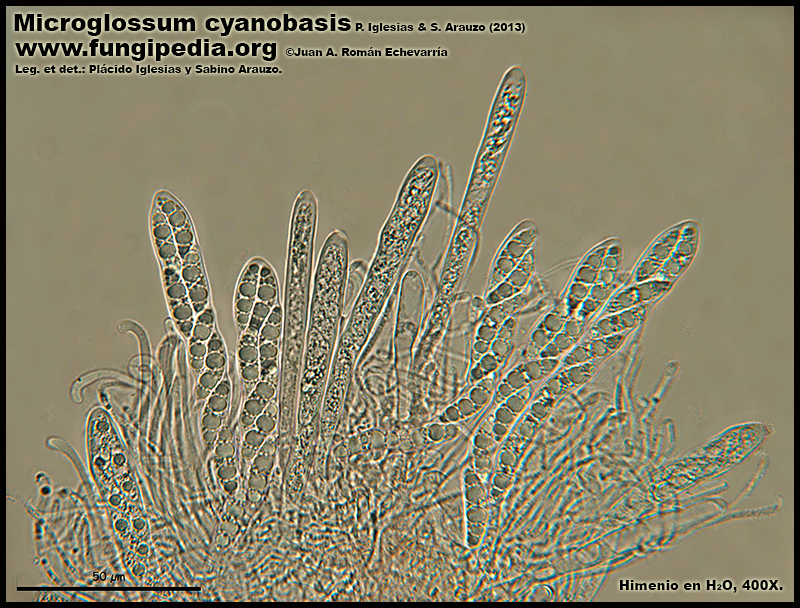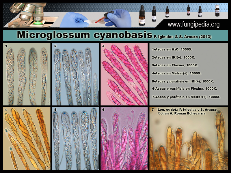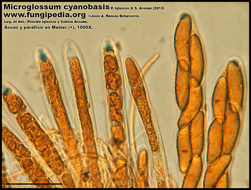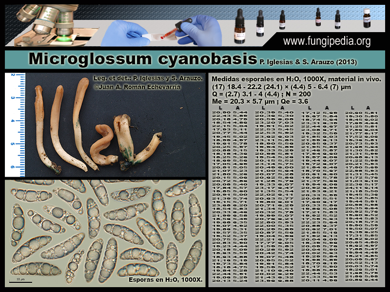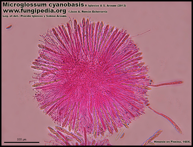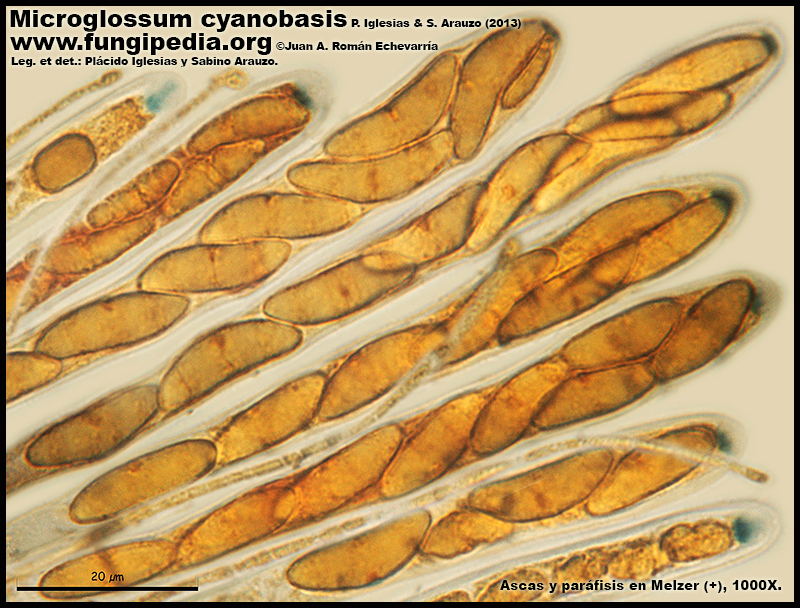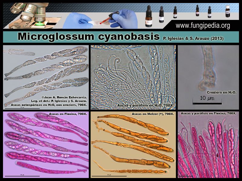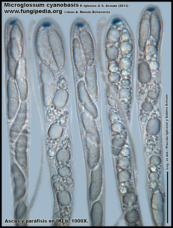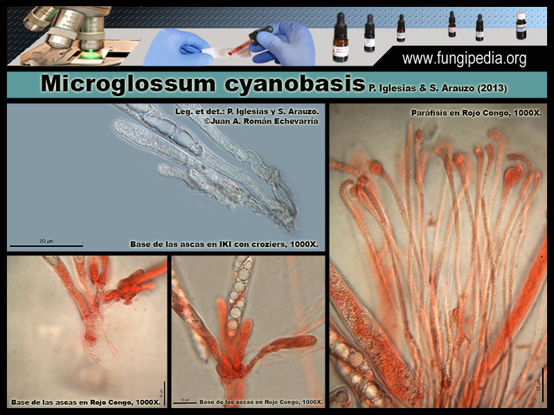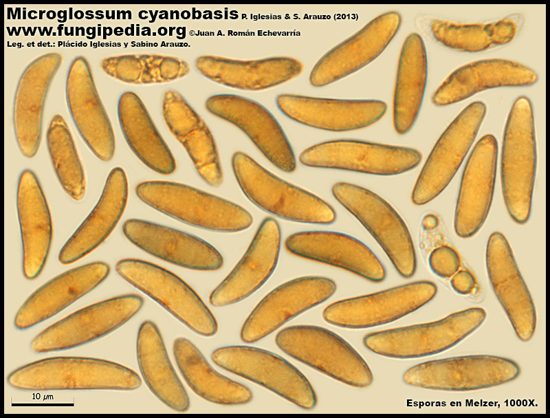 - Microglossum cyanobasis P. Iglesias & S. Arauzo (2013). Microscopy.