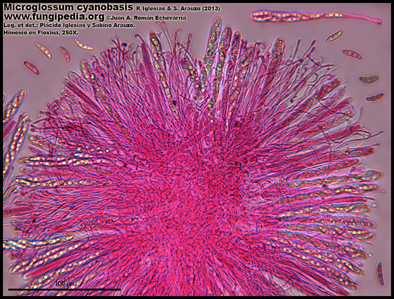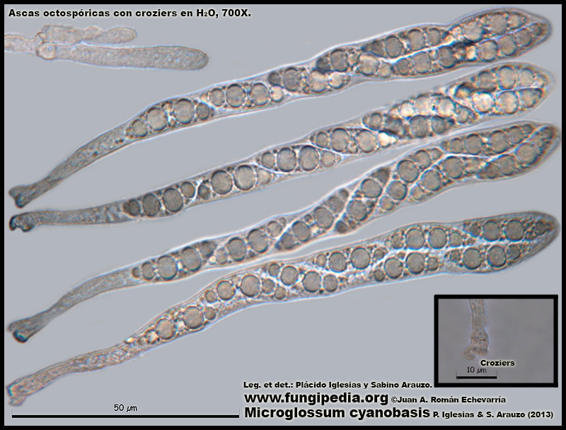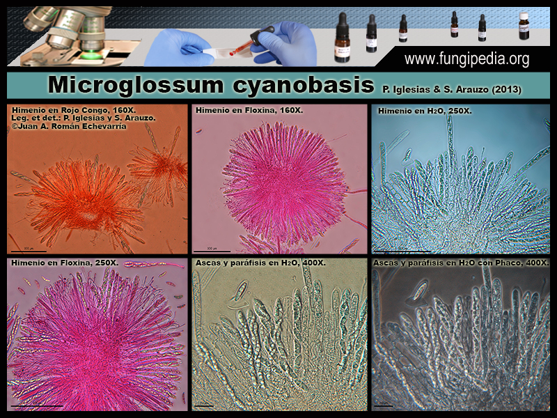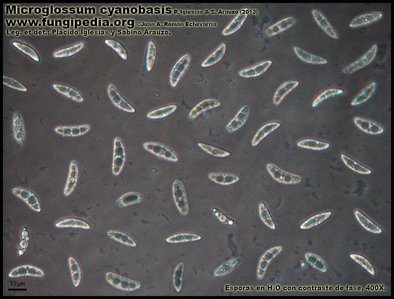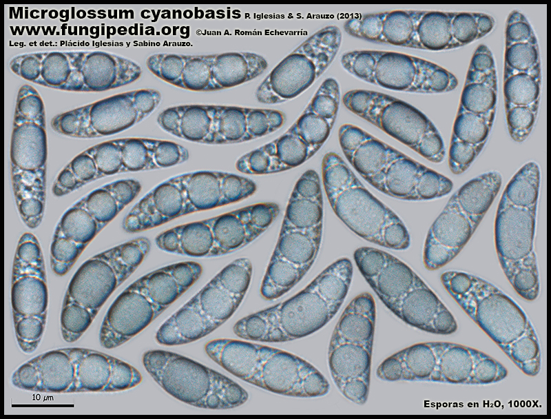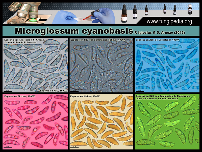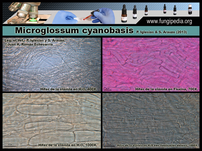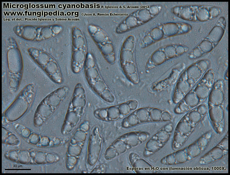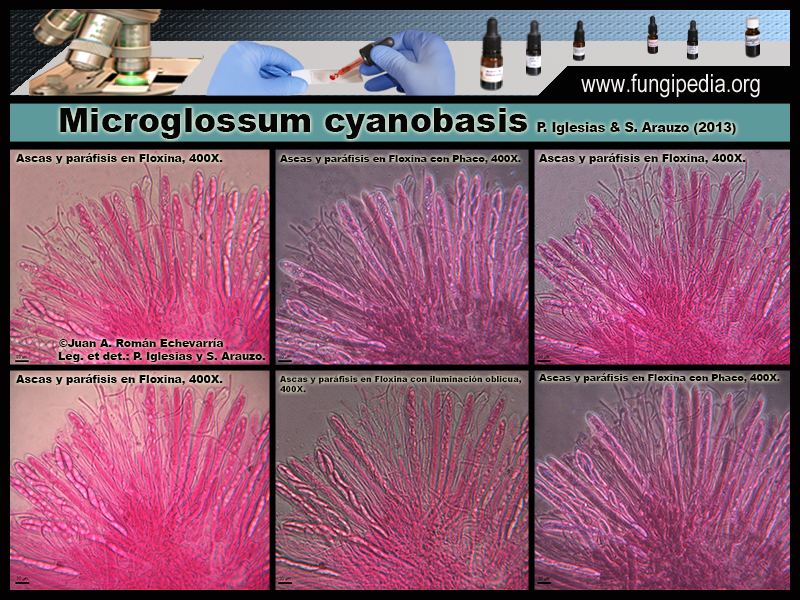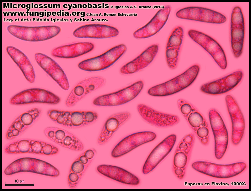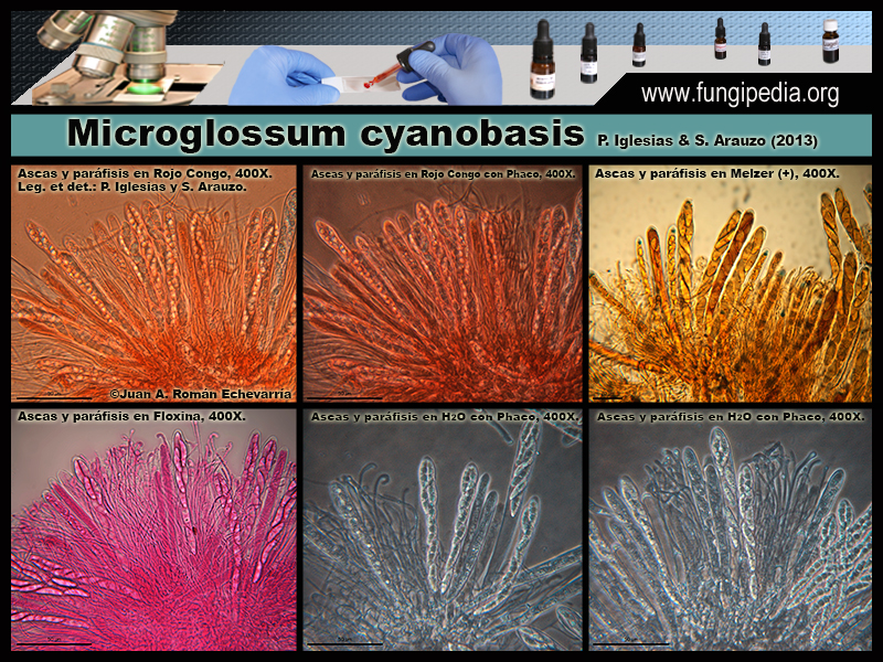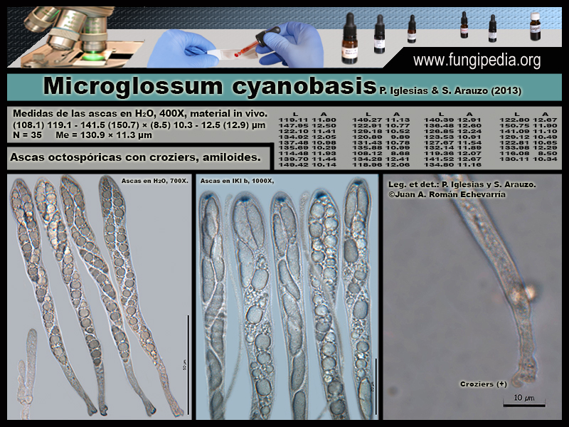 - Microglossum cyanobasis P. Iglesias & S. Arauzo (2013). Microscopy.