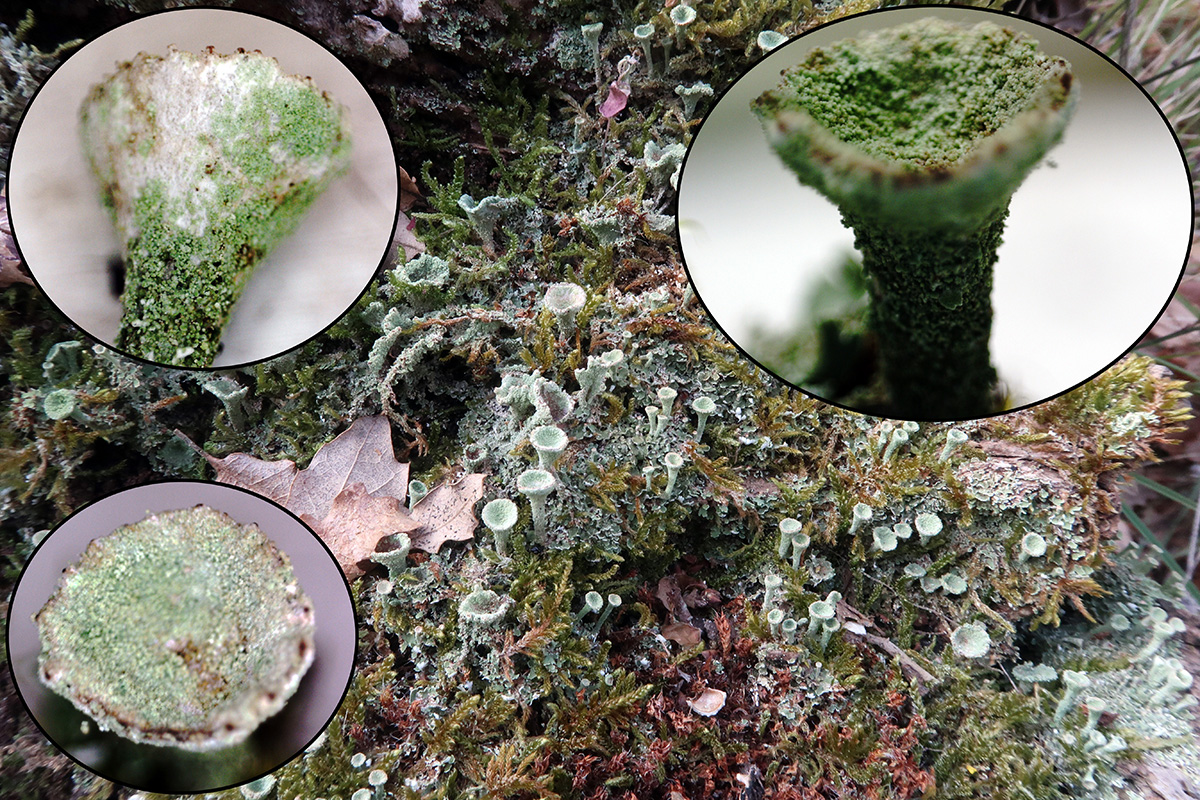 Como no estoy acostumbrado a estudiar líquenes, no dispongo de reactivos para su estudio y no puedo afinar mas a la hora de su identificación ya que existen otras Cladonias muy parecidas como la Cladonia cryptochlorophaea, la Cladonia merochlorophaea var. merochlorophaea, la Cladonia merochlorophaea var. novochlorophaea y la Cladonia grayi, estas ya no tan comunes como la Cladonia Chlorophaea y solo separables de esta con reactivos, es por eso que lo he dejado como Cladonia aff. chlorophaea.