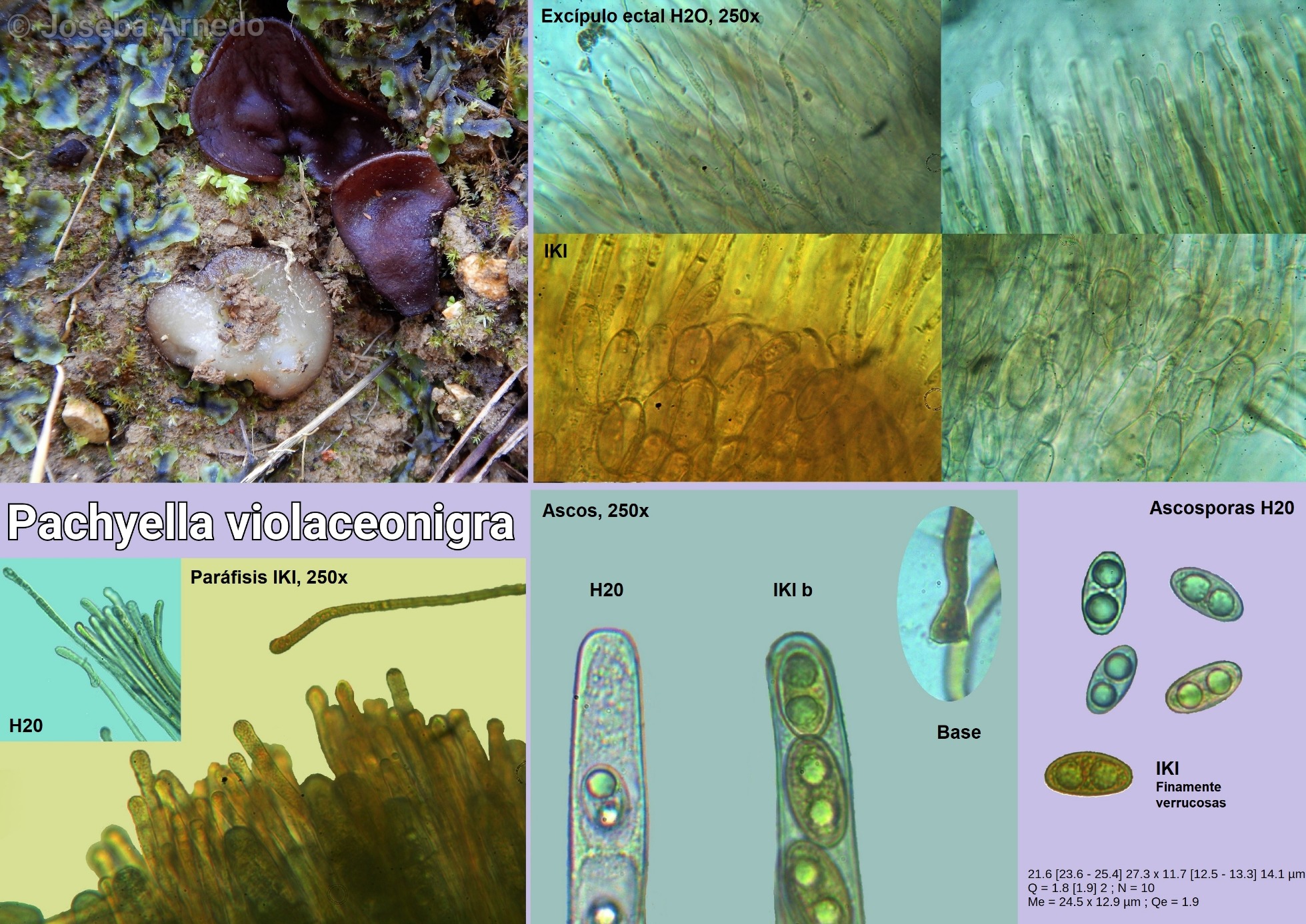 En esta ocasión os dejo con la microscopía de un ascomyceto al que tenía muchas ganas y que en una reciente salida al fin conseguí cazarlo, se trata de Pachyella violaceonigra.