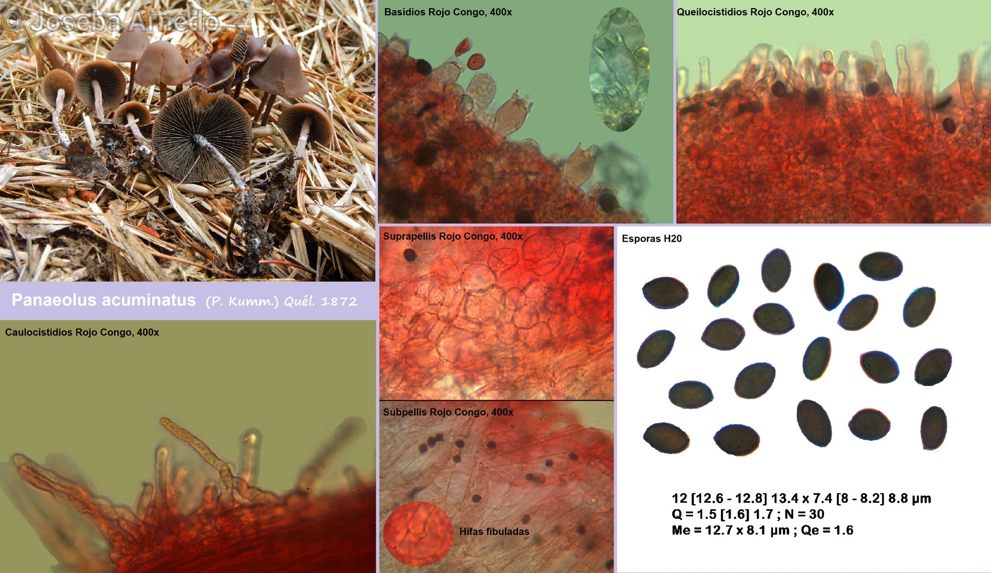 En esta ocasión os dejo con la ficha microscópica que he preparado del Panaeolus acuminatus.