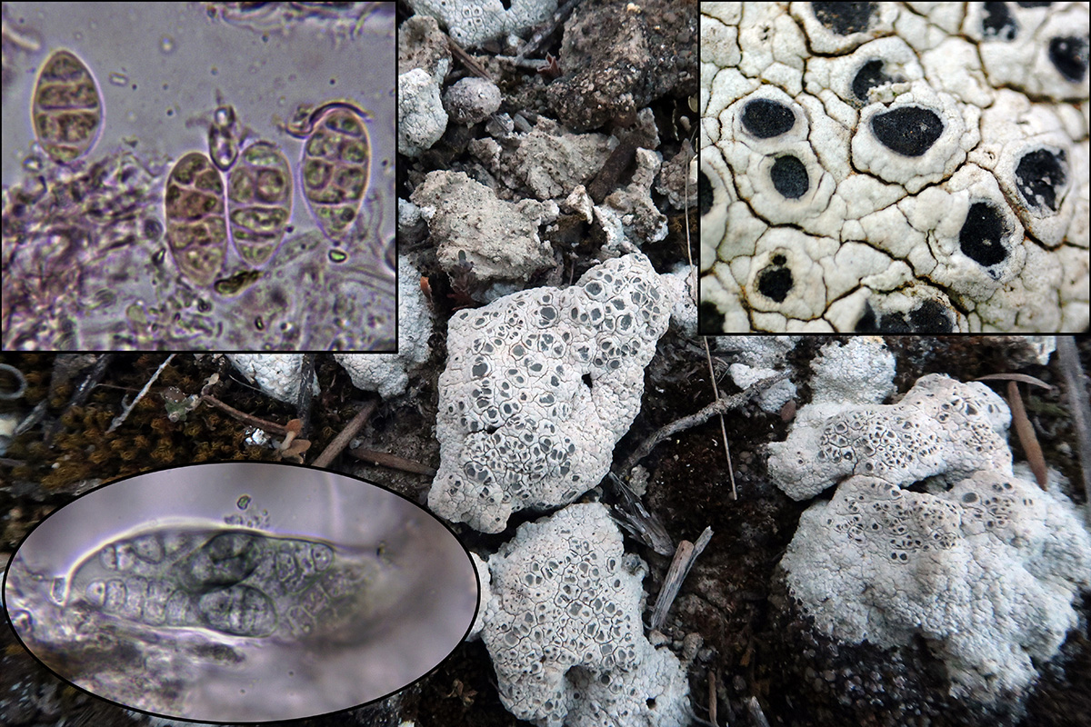 Sobre suelo calizo, con ascas mayoritariamente con 4 esporas, todo apunta a Diploschistes muscorum