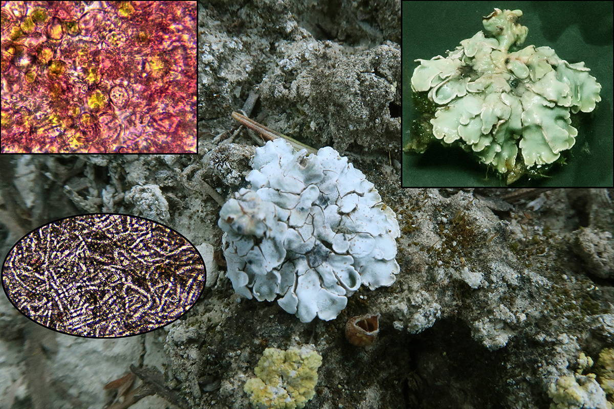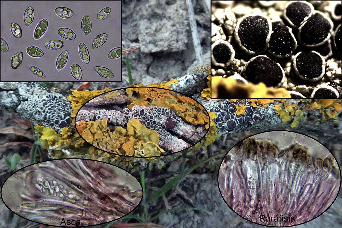 Compartiendo espacio con la Xanthoria parietina, tenemos la lignícola Lecanora horiza