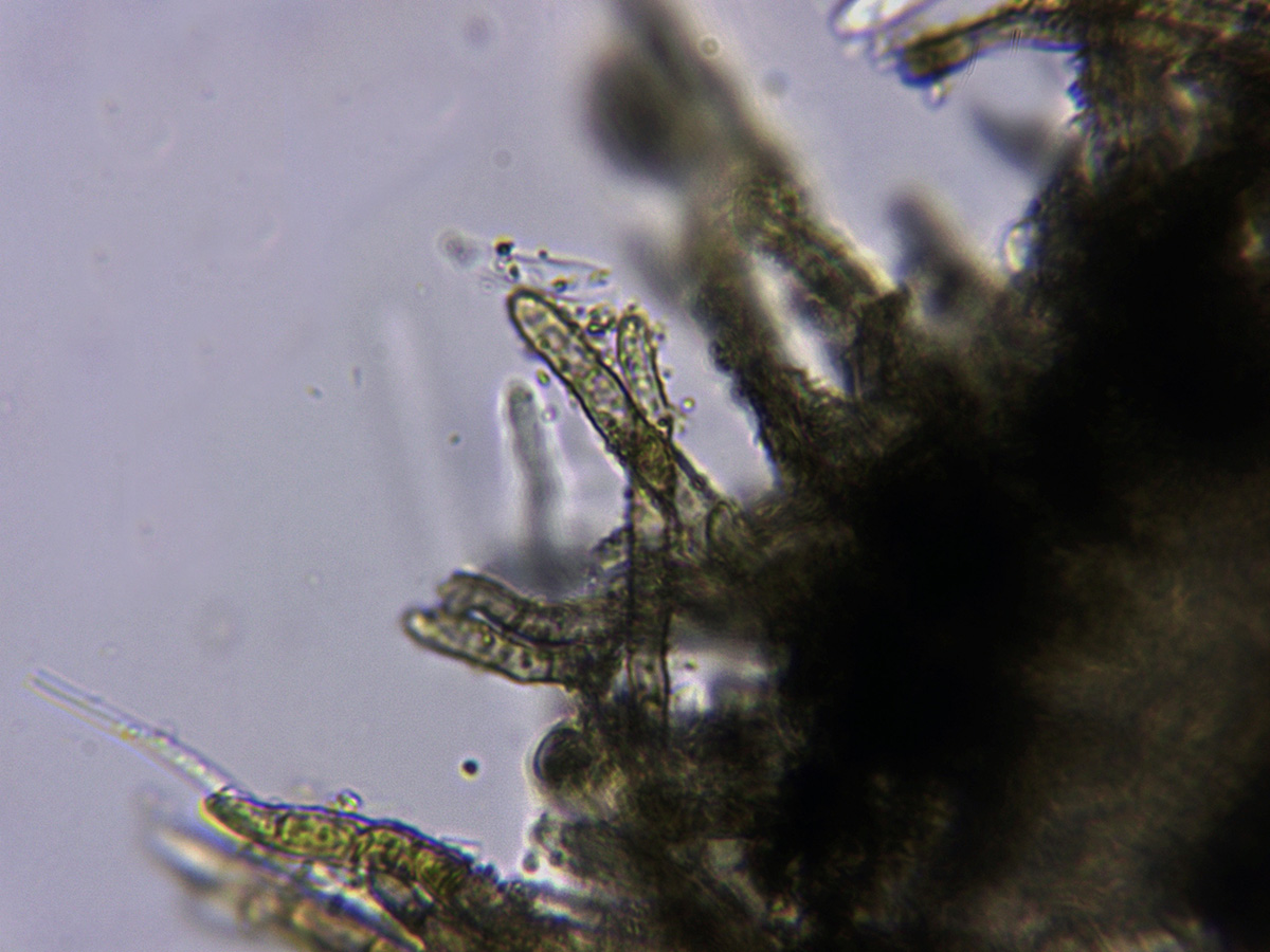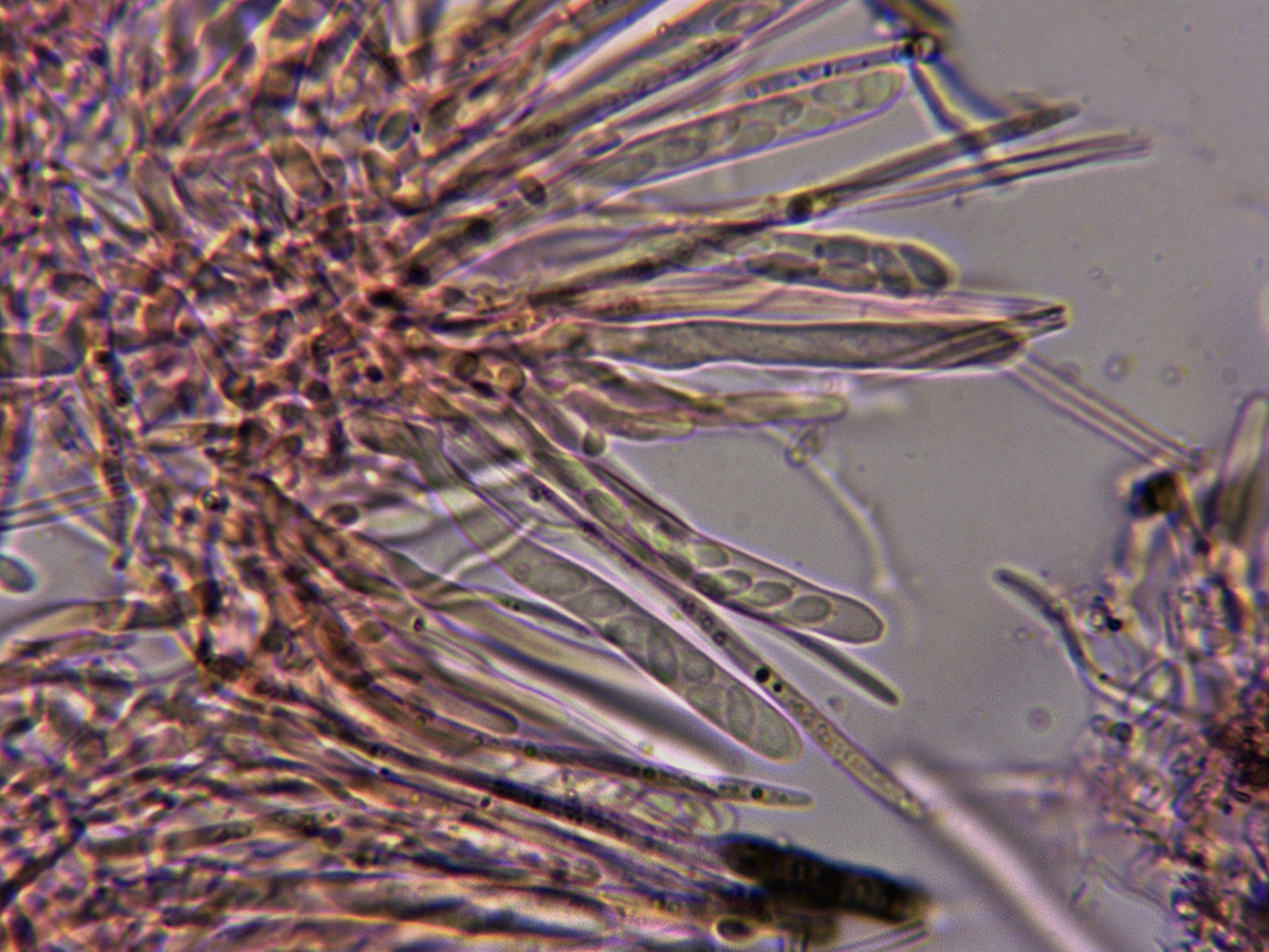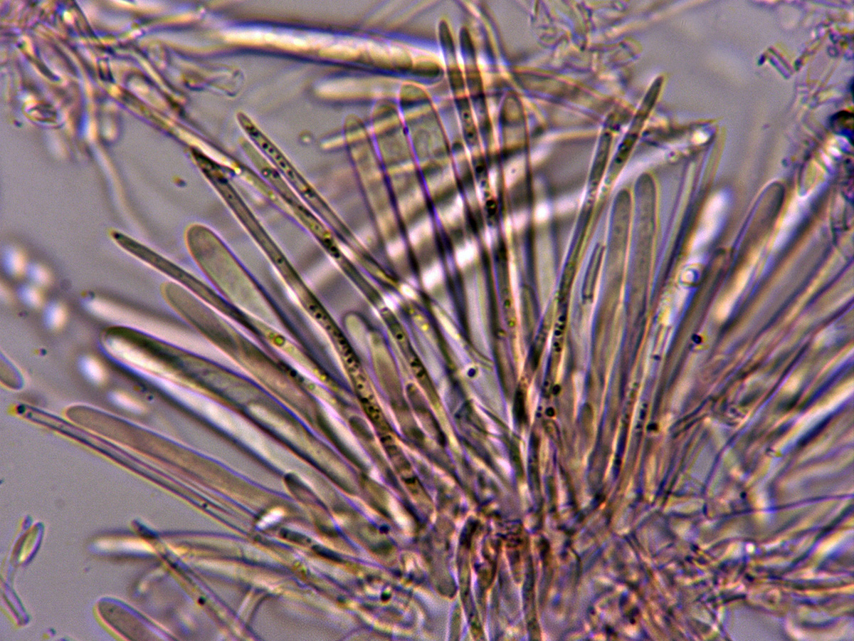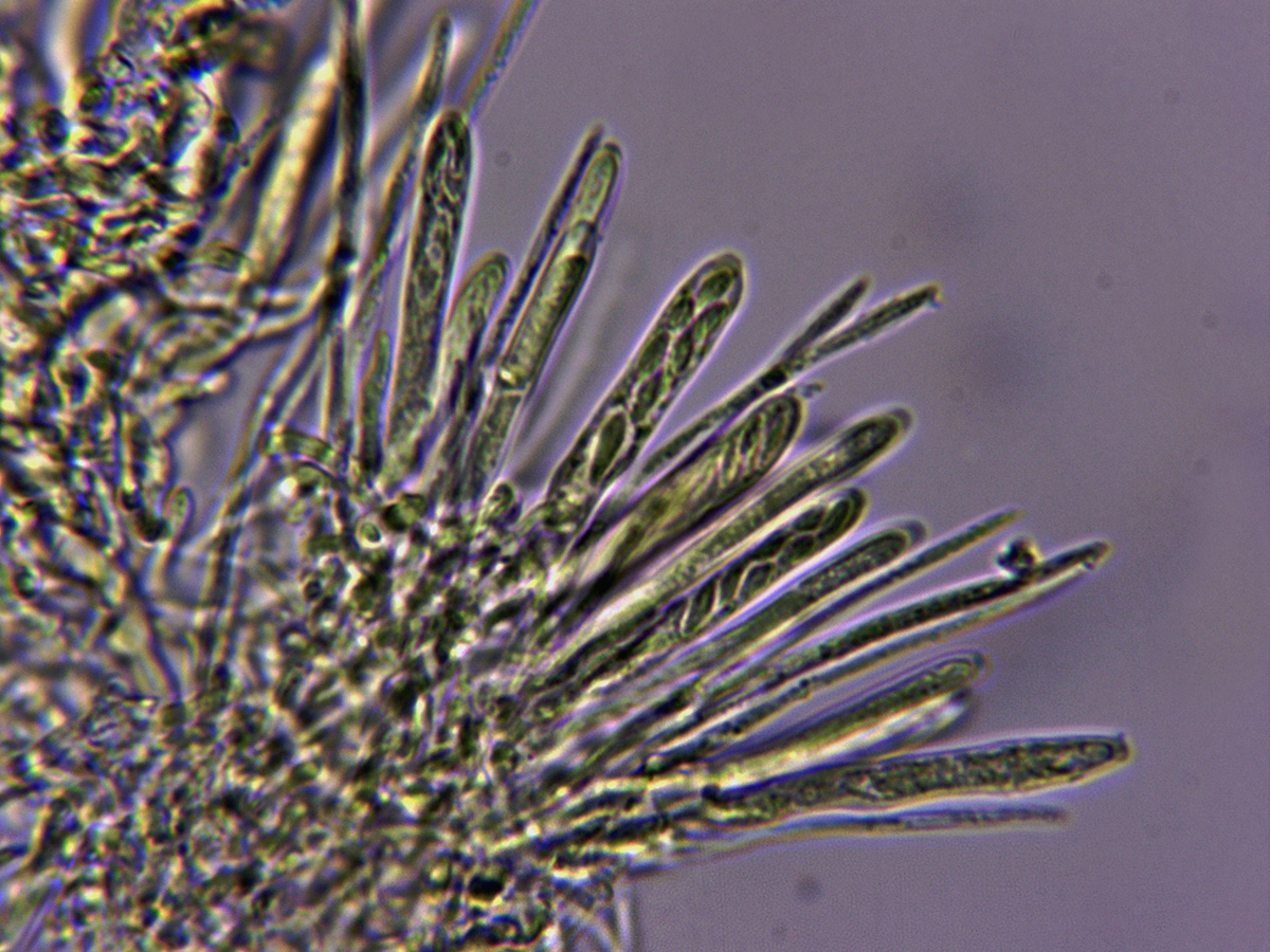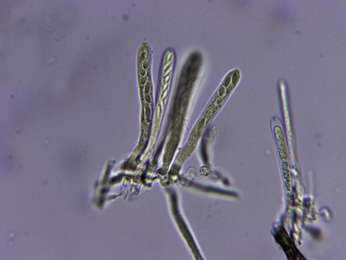 Ascas en Reactivo de Melzer, con una tímida reacción amiloide en el ápice de las mismas.