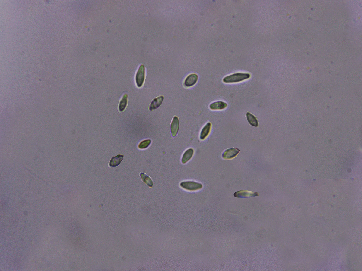 Muy pocas esporas encontradas libres, mayoritariamente dentro del asca, las de la imágen son una composición de las pocas esporas observadas.