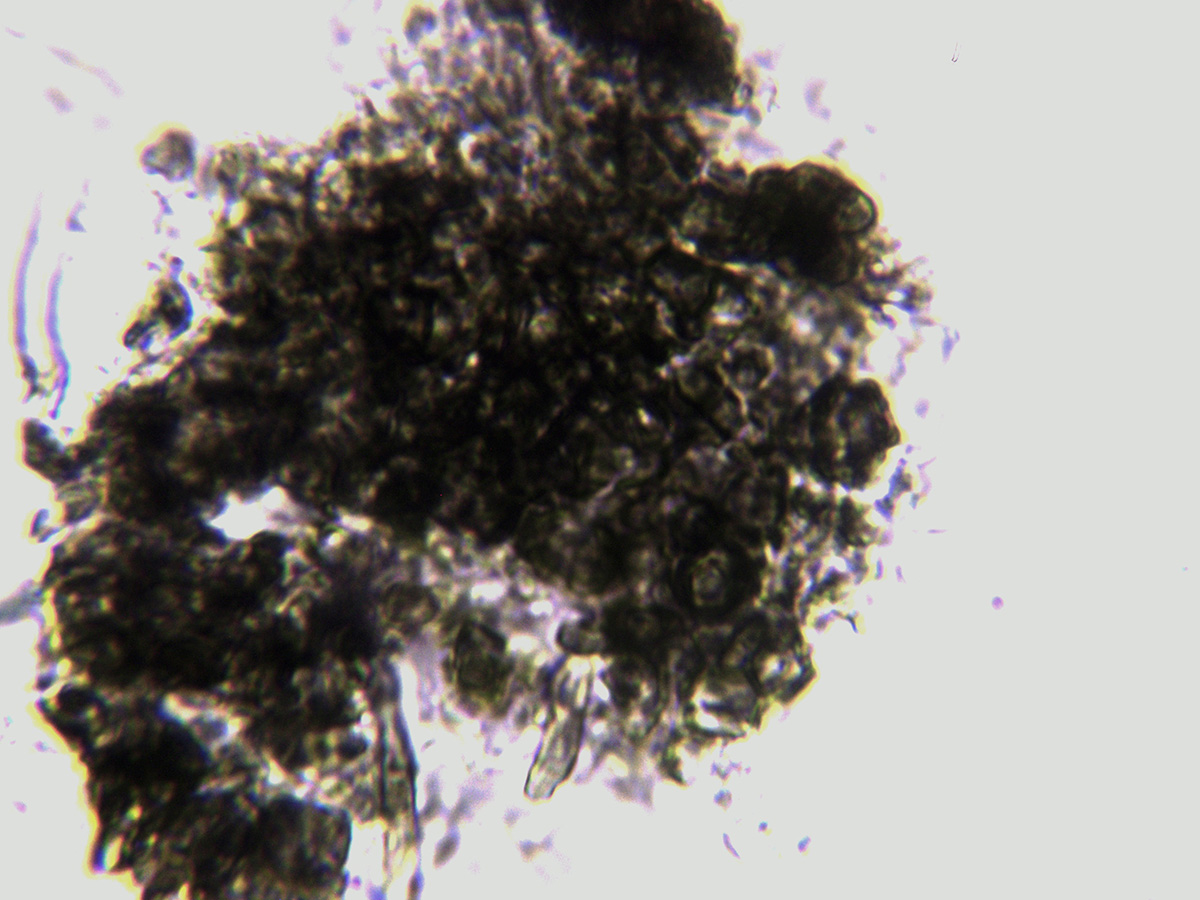 Junto con los pelos hay unos grumos que reaccionan al Melzer (amiloides) que nos indican la presencia de almidón.