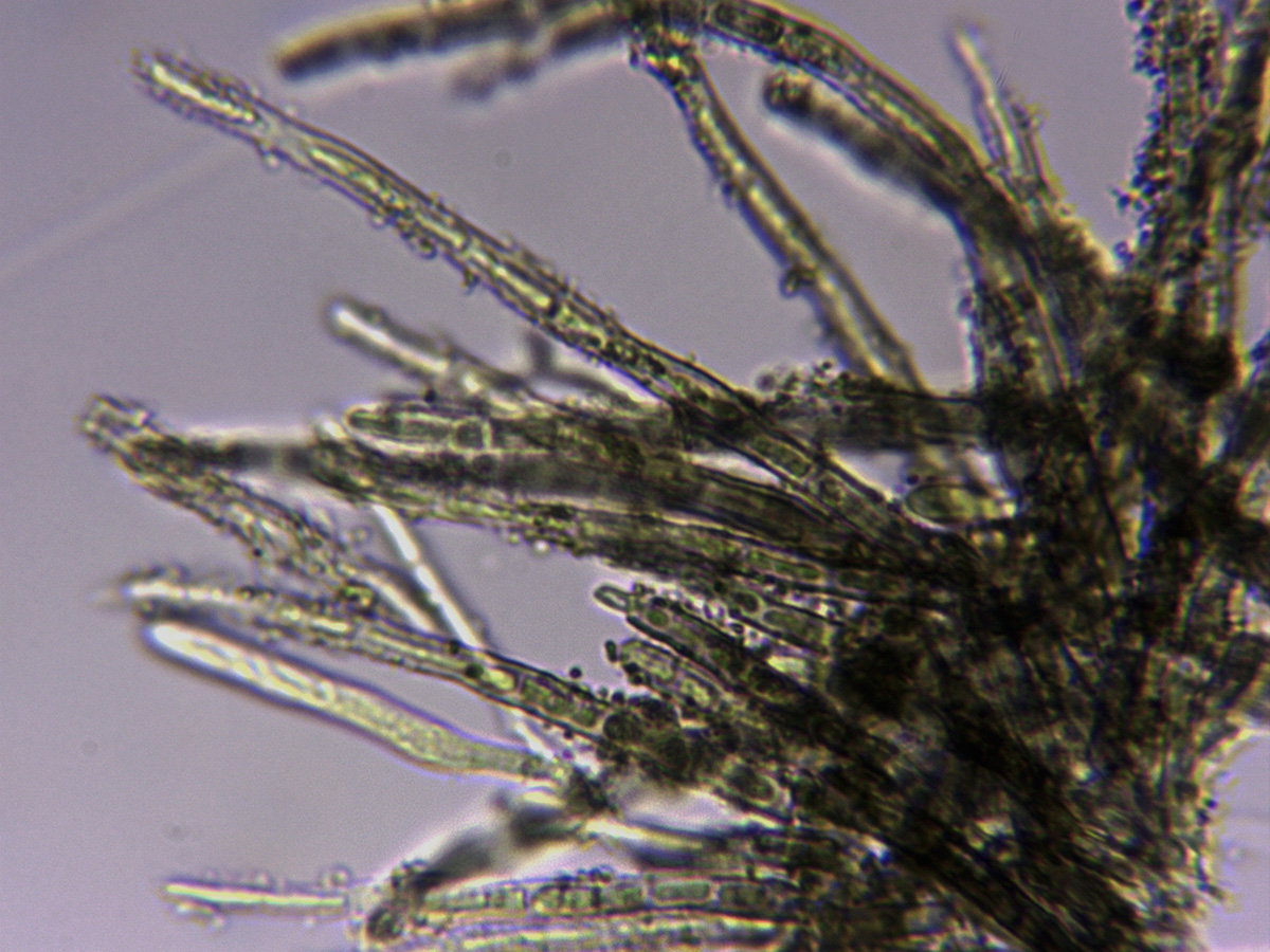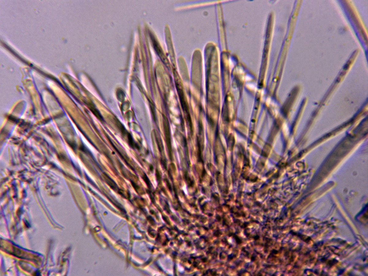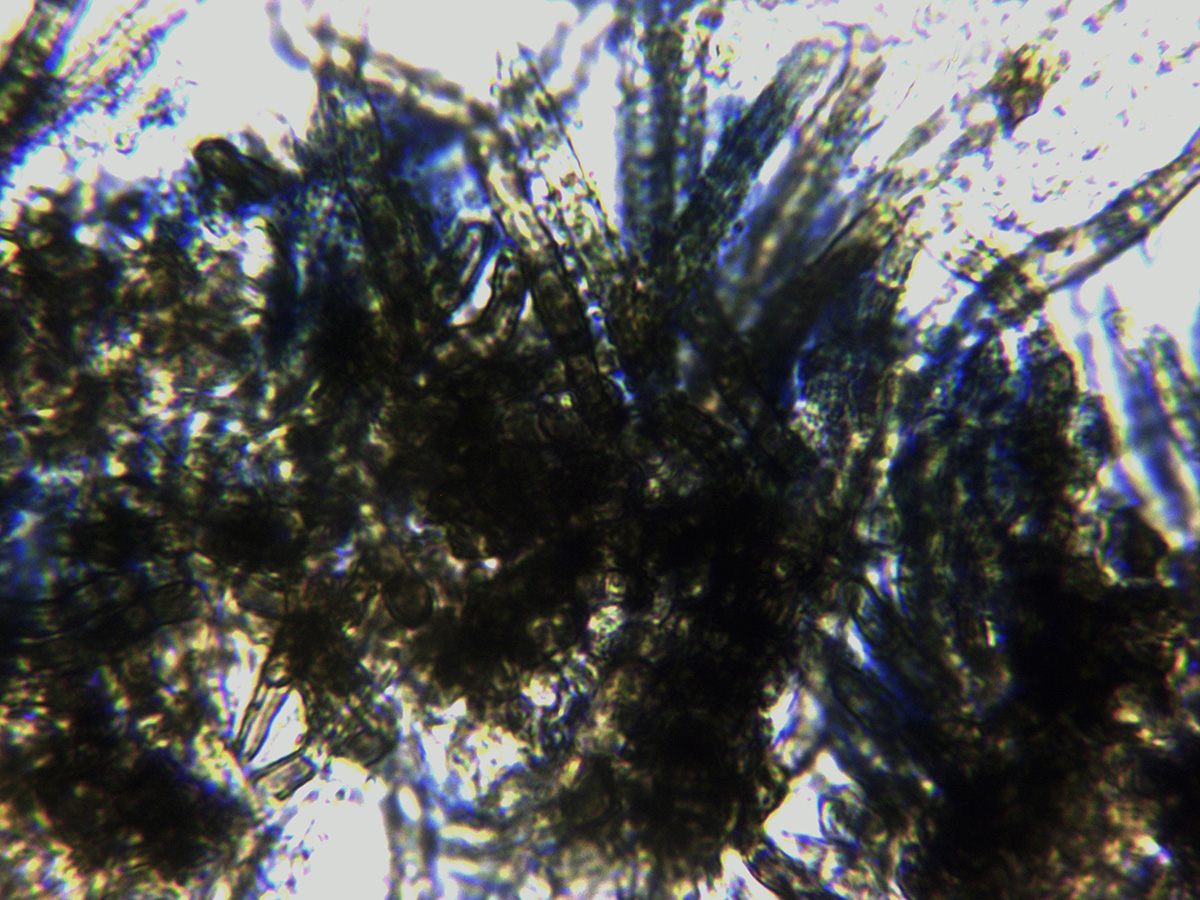 Excípulo a 1000 aumentos con hifas angulares.