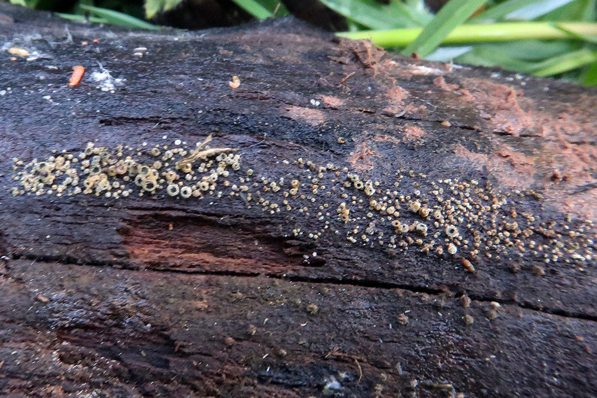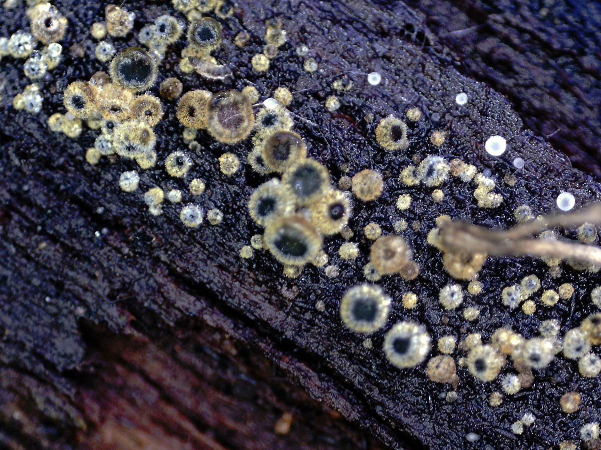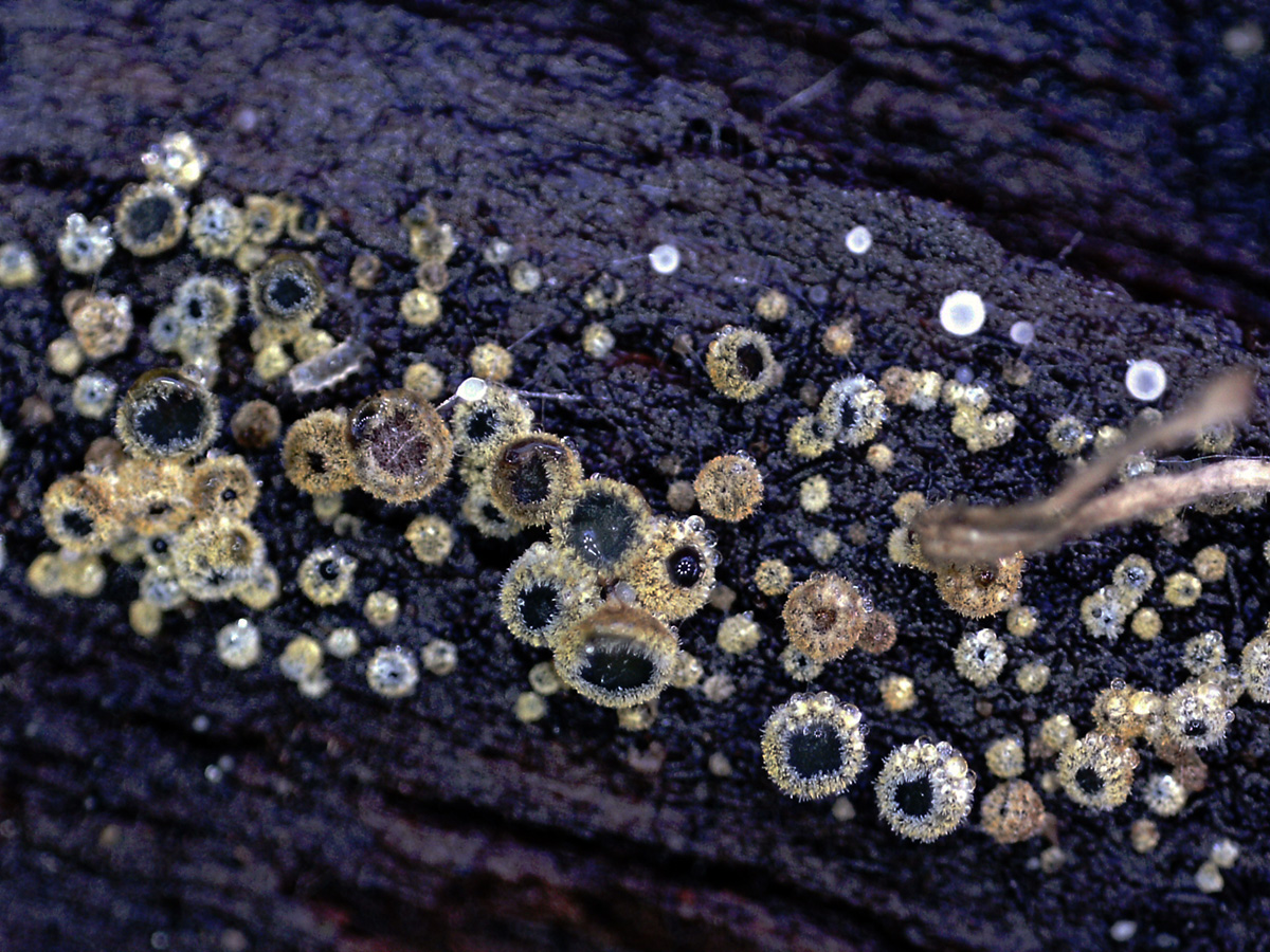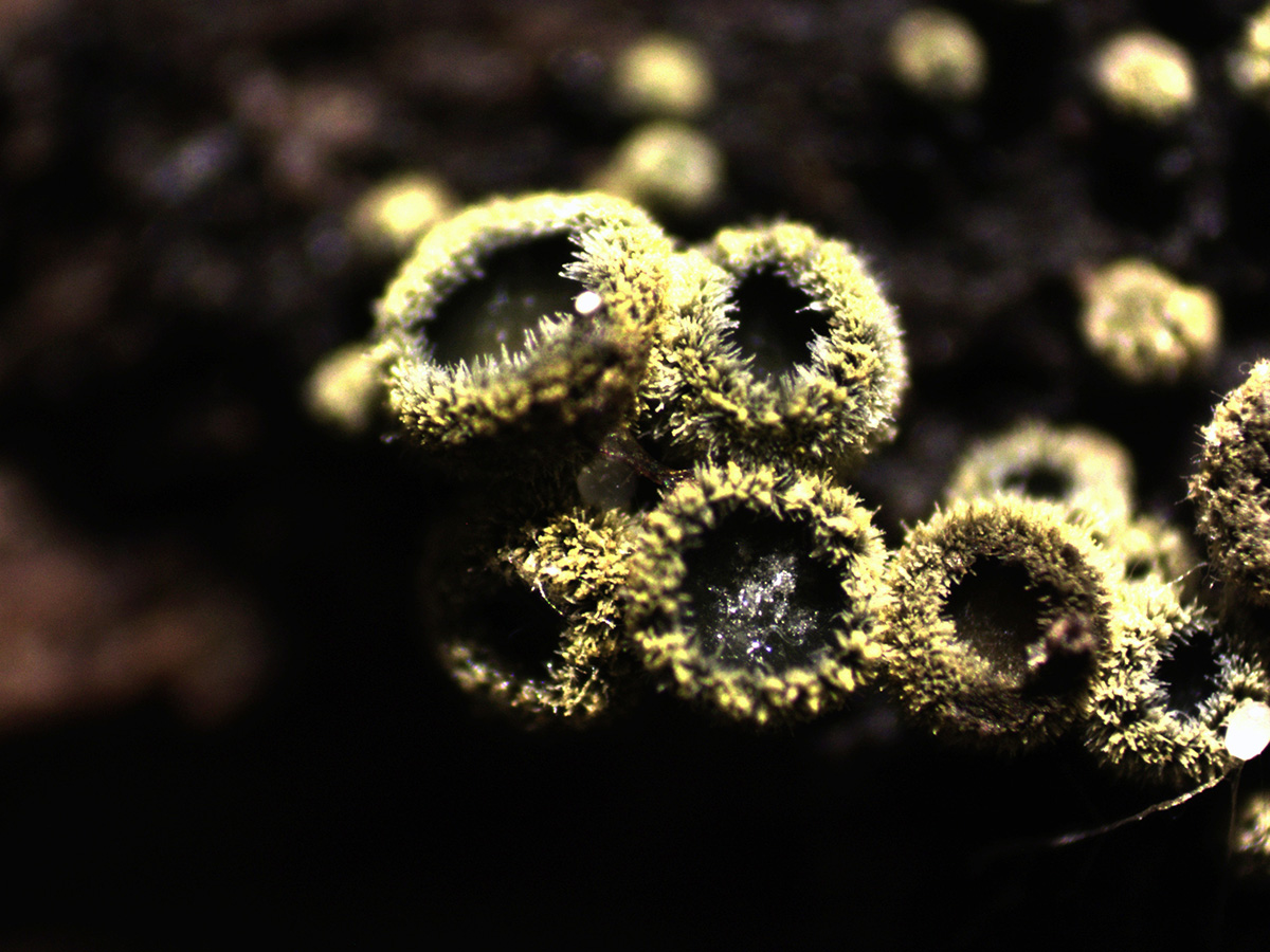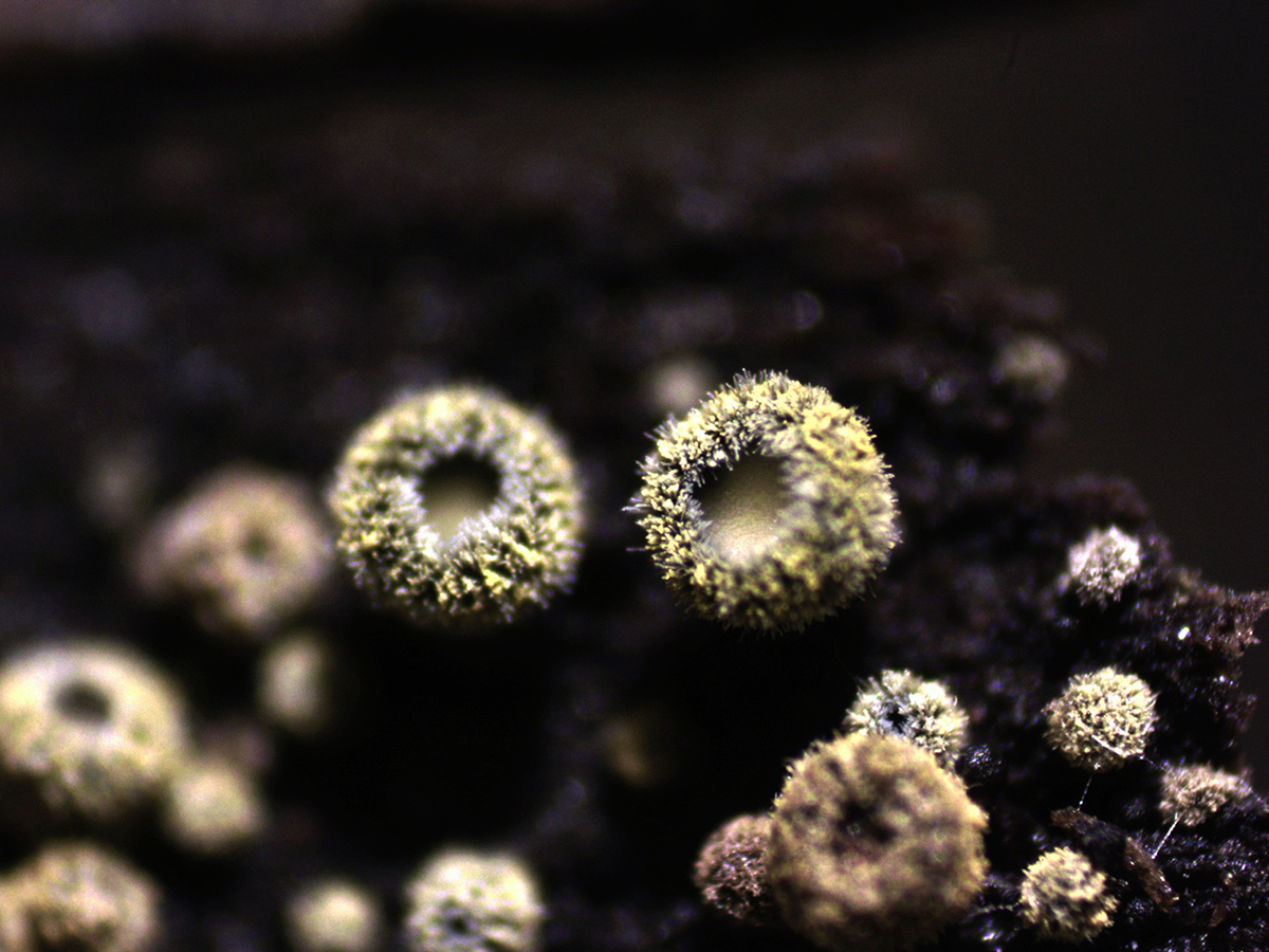 Muy diminutos apotecios de entre tan solo 0,3 a 0,7 mm.