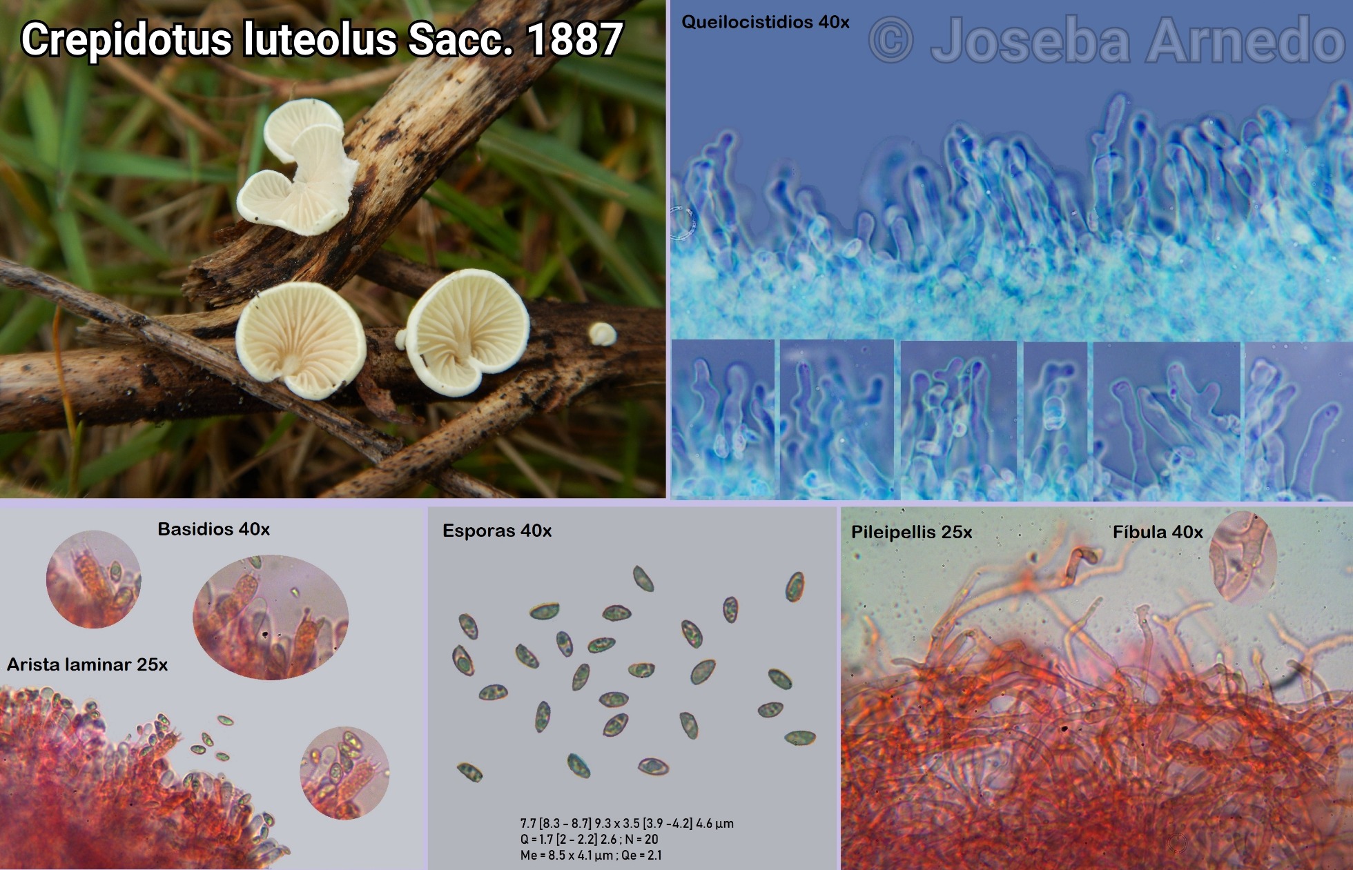 Os dejo con la ficha microscópica que he preparado de Crepidotus luteolus.