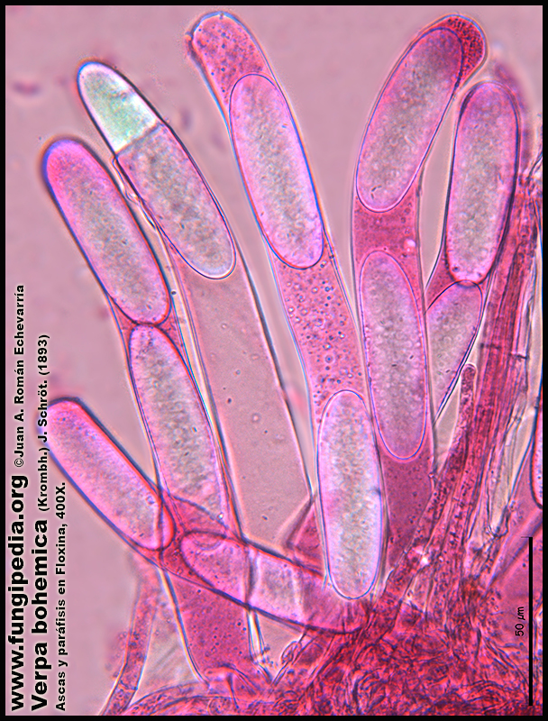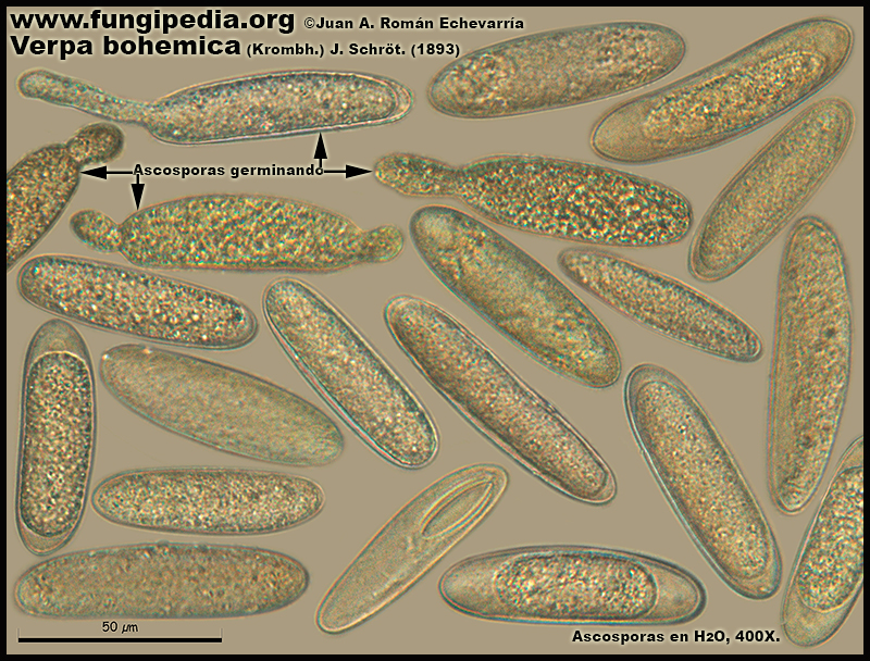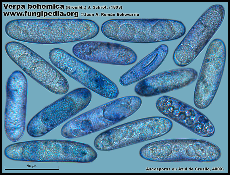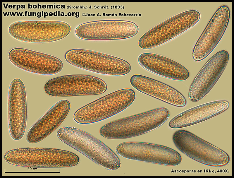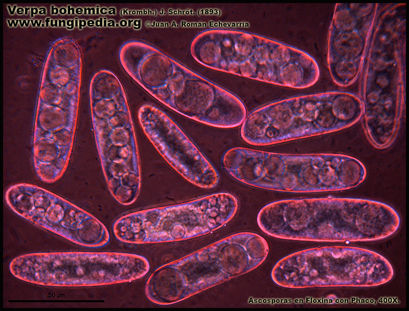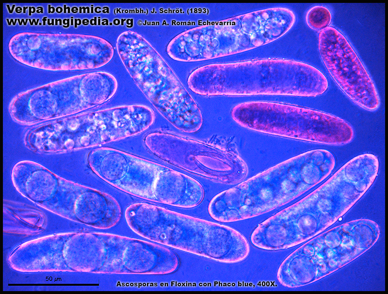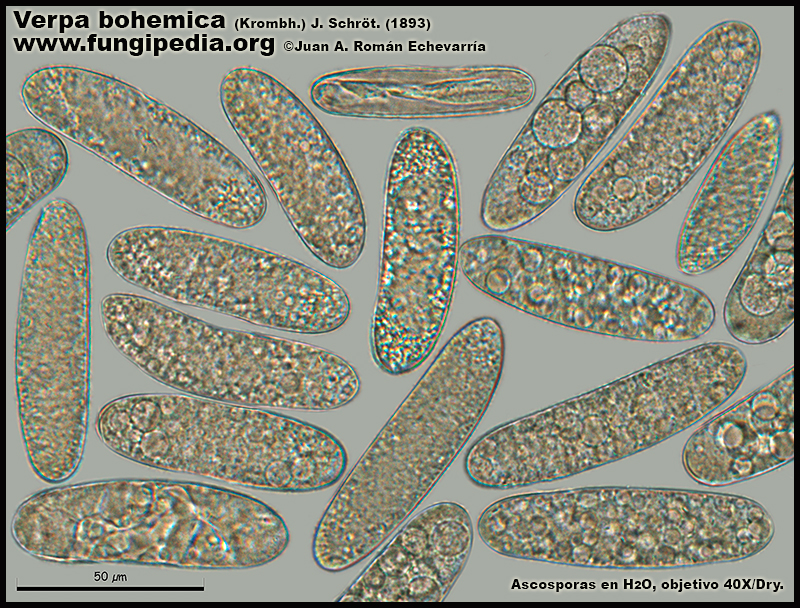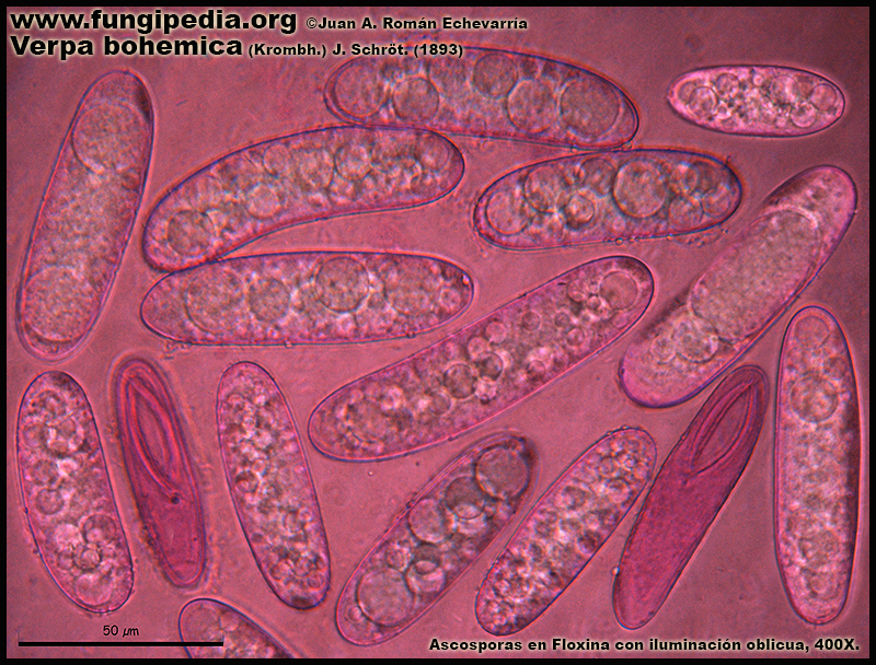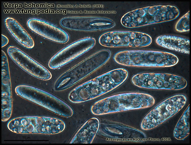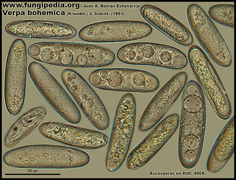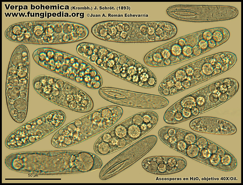 - Verpa bohemica (Krombh.) J. Schröt. (1893). Microscopy.