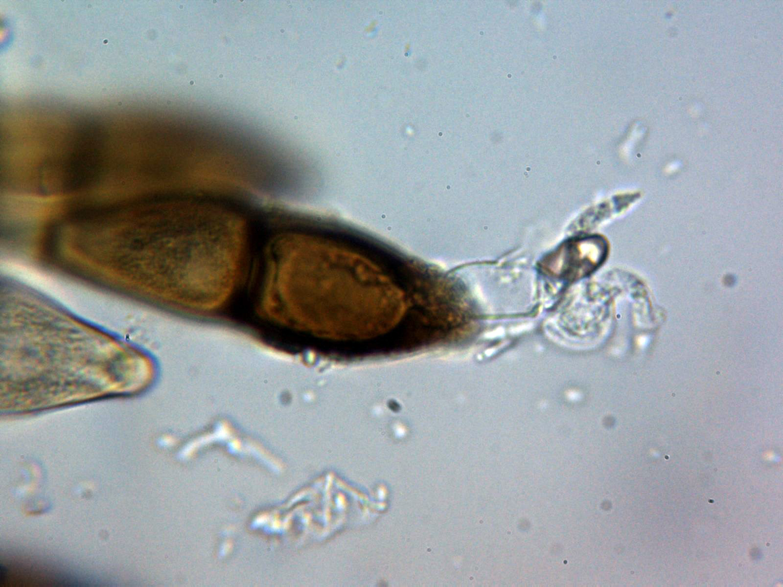 Aquí según la mayoría de los autores consultados parece terminar el ciclo, no nos olvidemos que se trata de un basidiomiceto, así que vamos con la formación de los basidios.