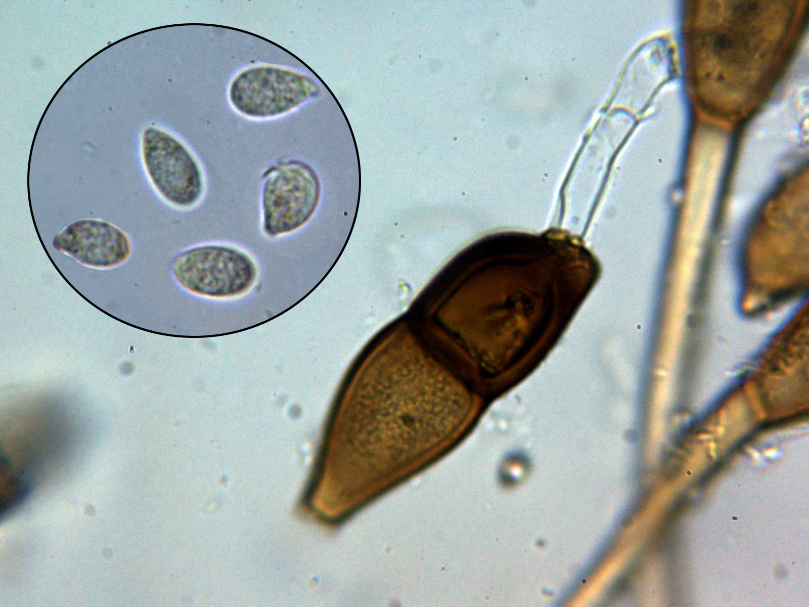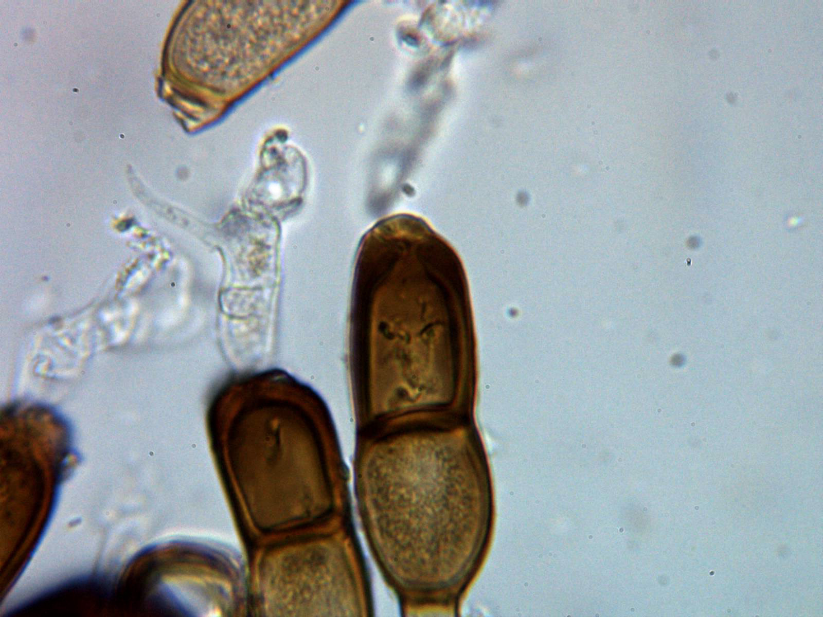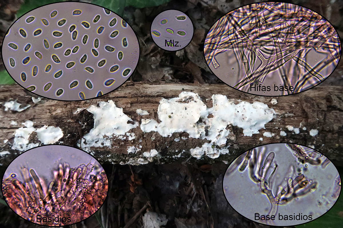 Las basidiosporas con unas medidas de 9.9 - 11.8 × 5.9 - 7.6 µm.