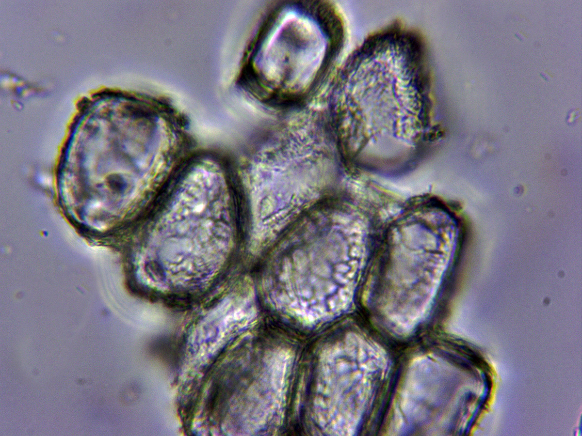 Una imágen de la sección a 100 aumentos donde ya se aprecian bien las teliosporas: